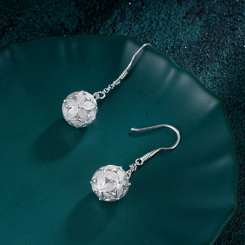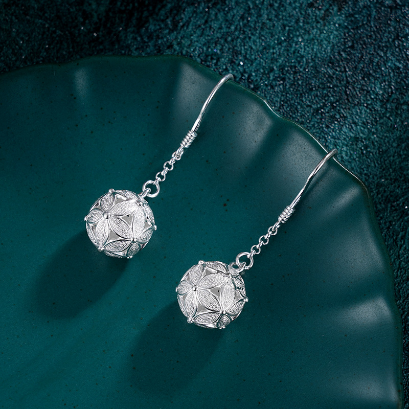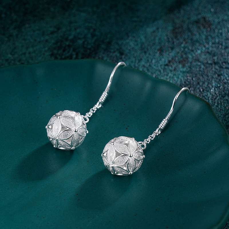 【寓意】:耳饰以银花丝工艺编织,花瓣层层堆累契合,构成一个完整的圆珠。整体设计清雅灵动,轻松搭配各种风格。