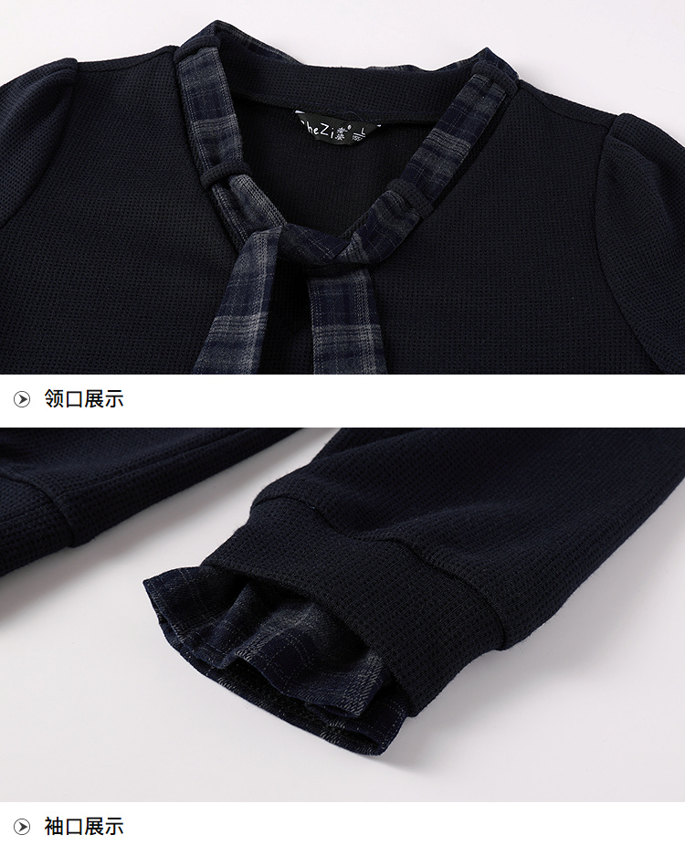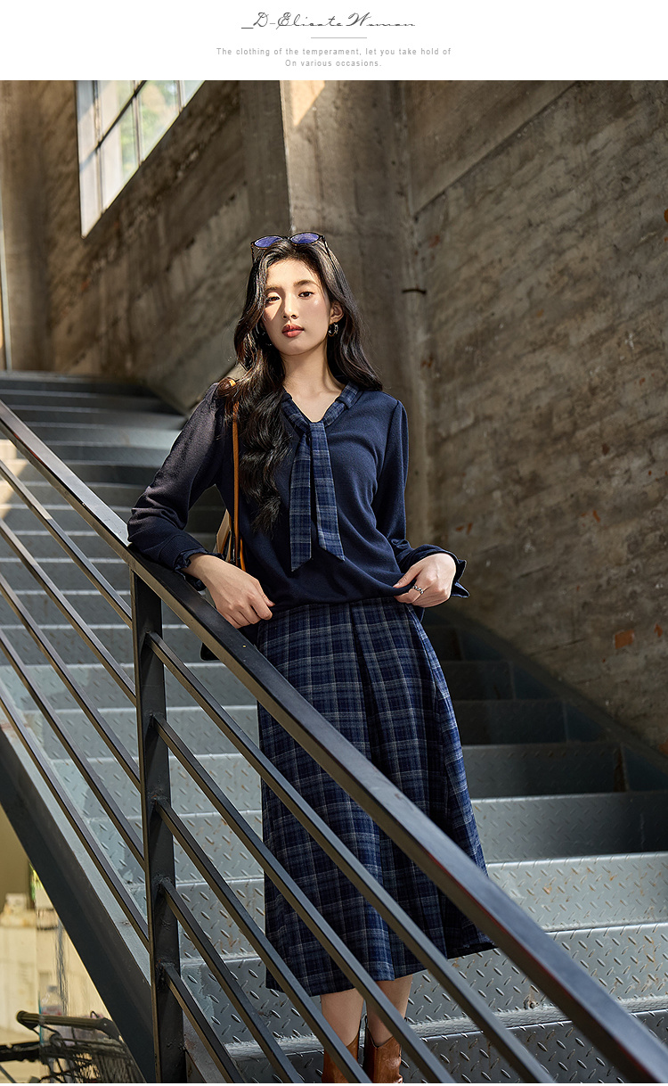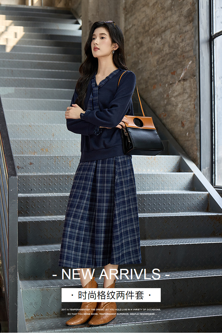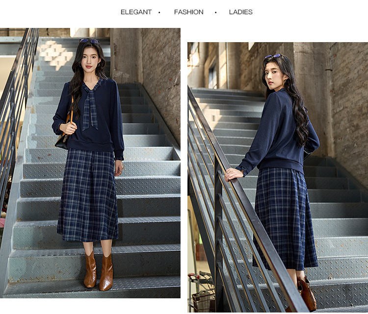 奢姿大码女装2025秋季减龄蝴蝶结格纹两件套胖妹妹V领时尚套装9953994372