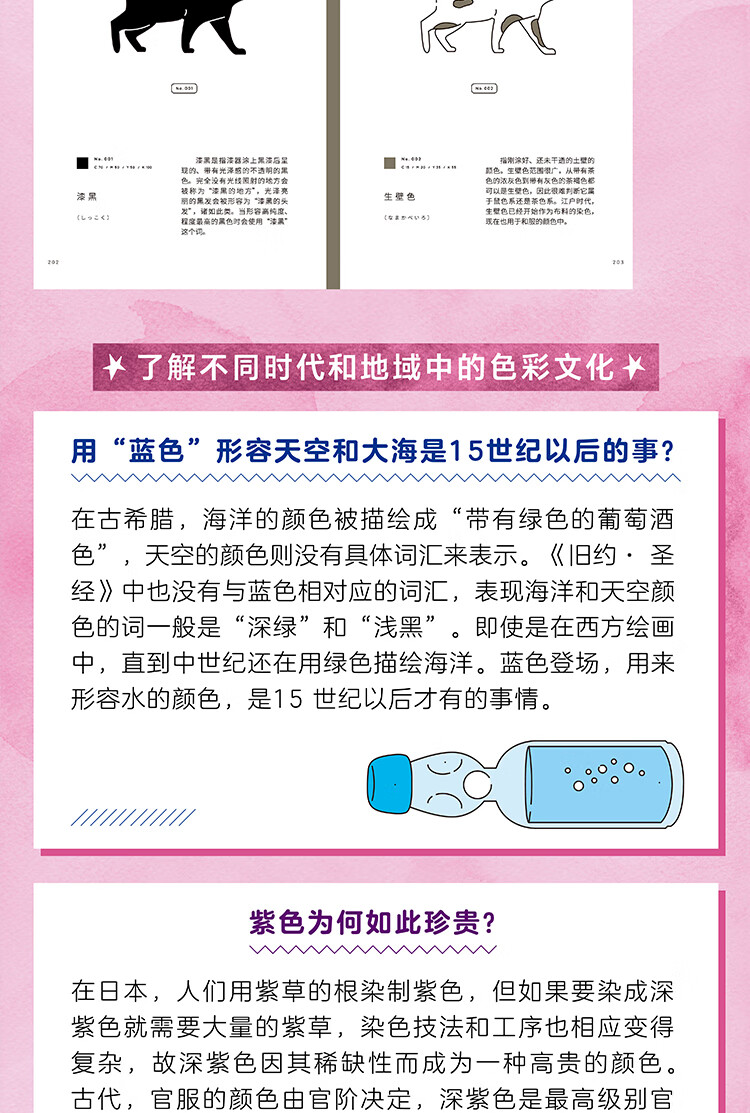★讲述每一种颜色背后的故事:一斤染、瓶窥、利休色说的是什么颜色?紫色为什么珍贵?古人也追偶像同款色?爱马仕橙从何而来?答案尽在其中。