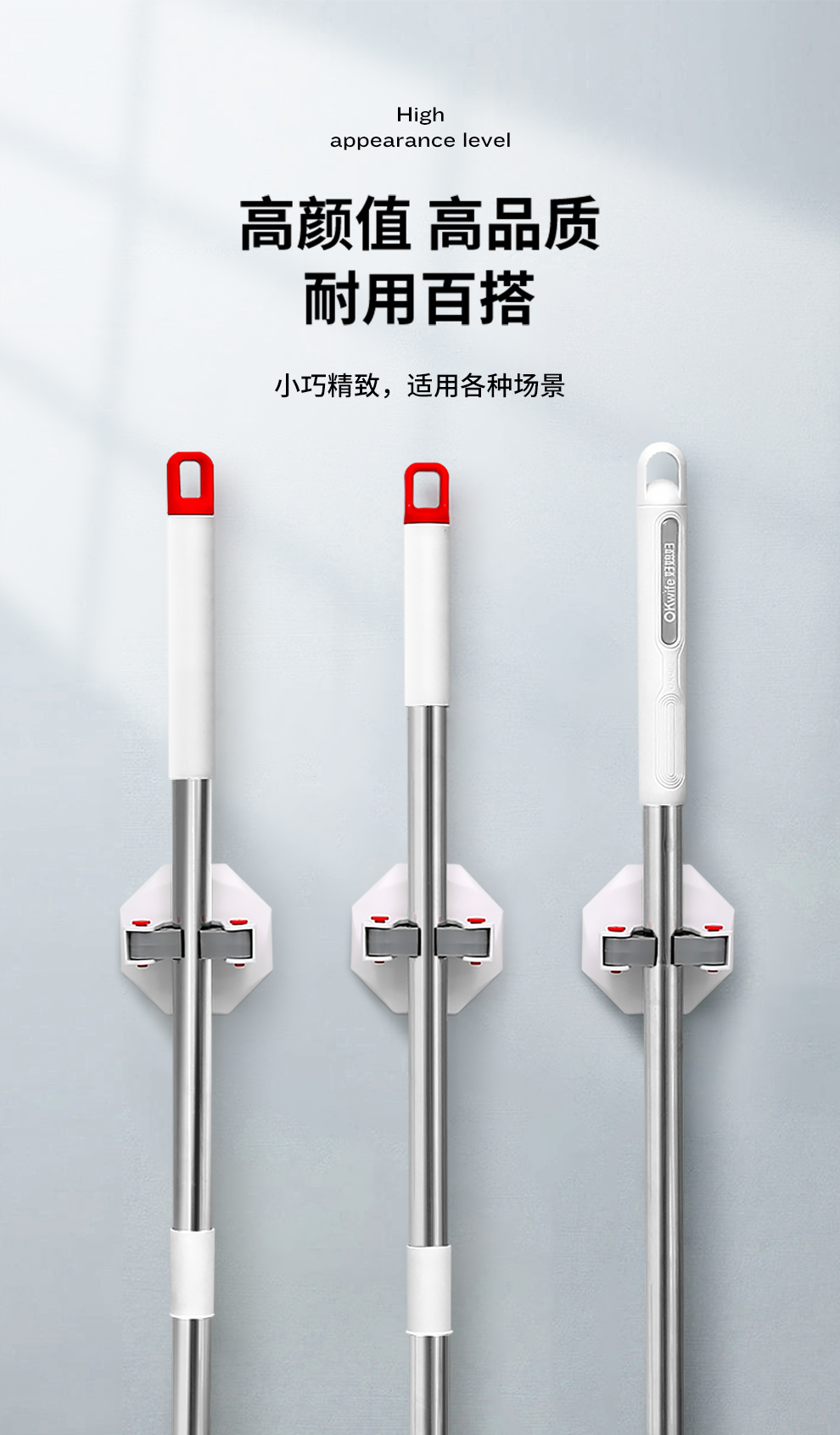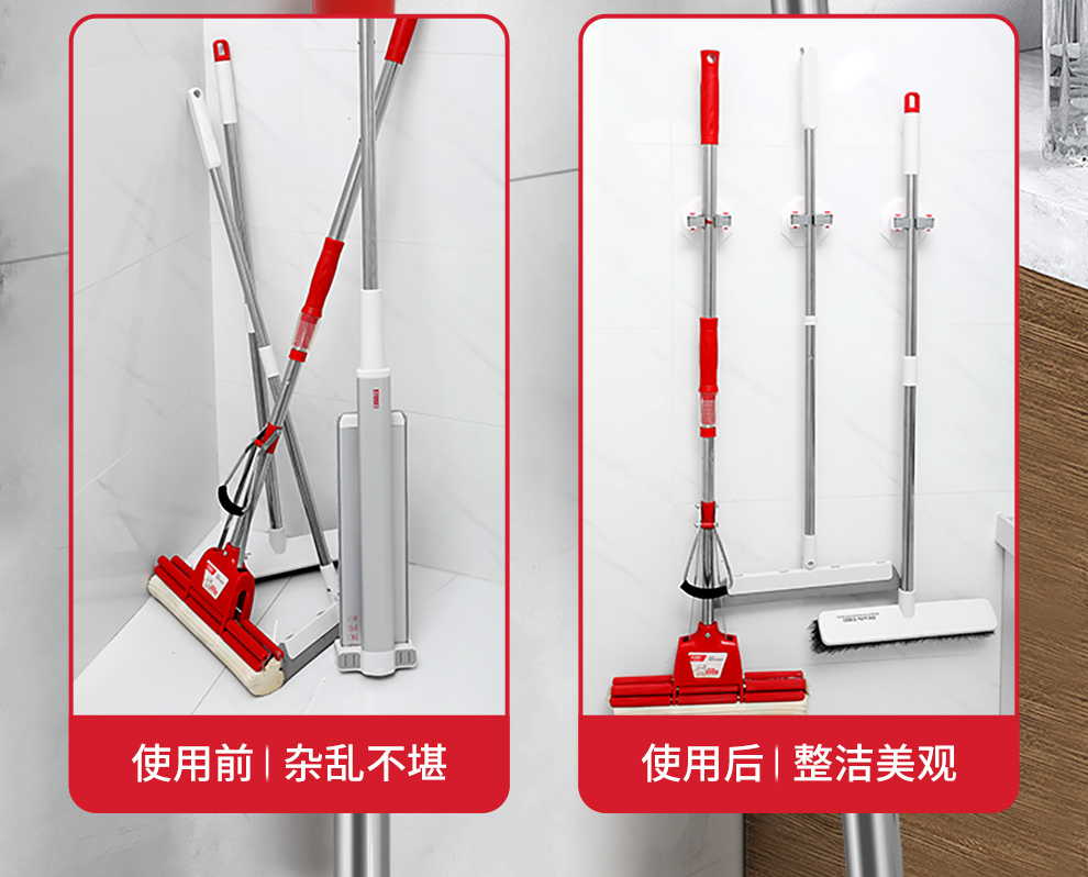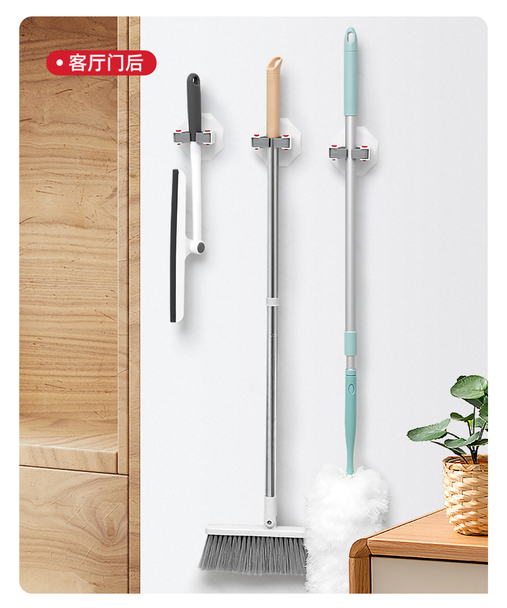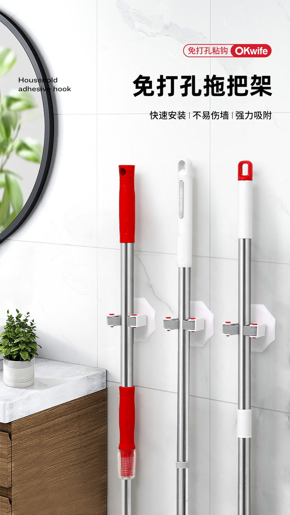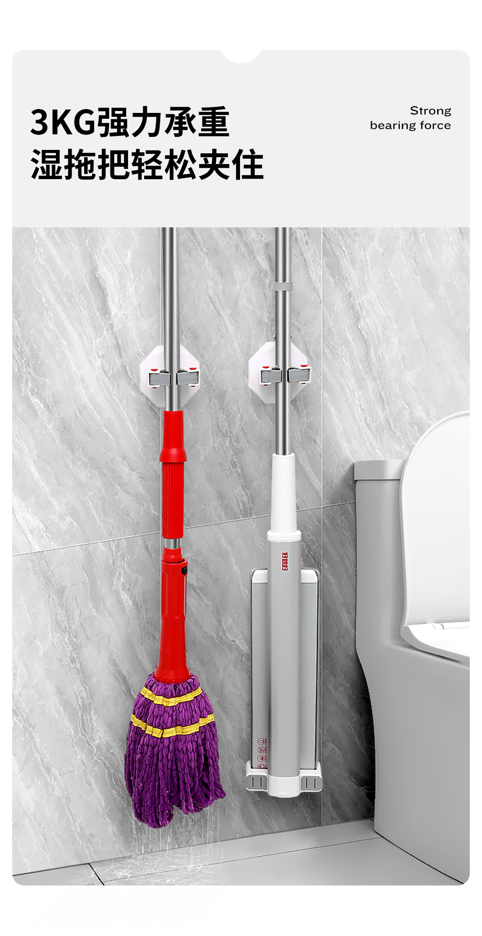 好媳妇拖把粘钩家用卫生间浴室厨房墙壁免打孔挂钩拖把夹1-3个装
