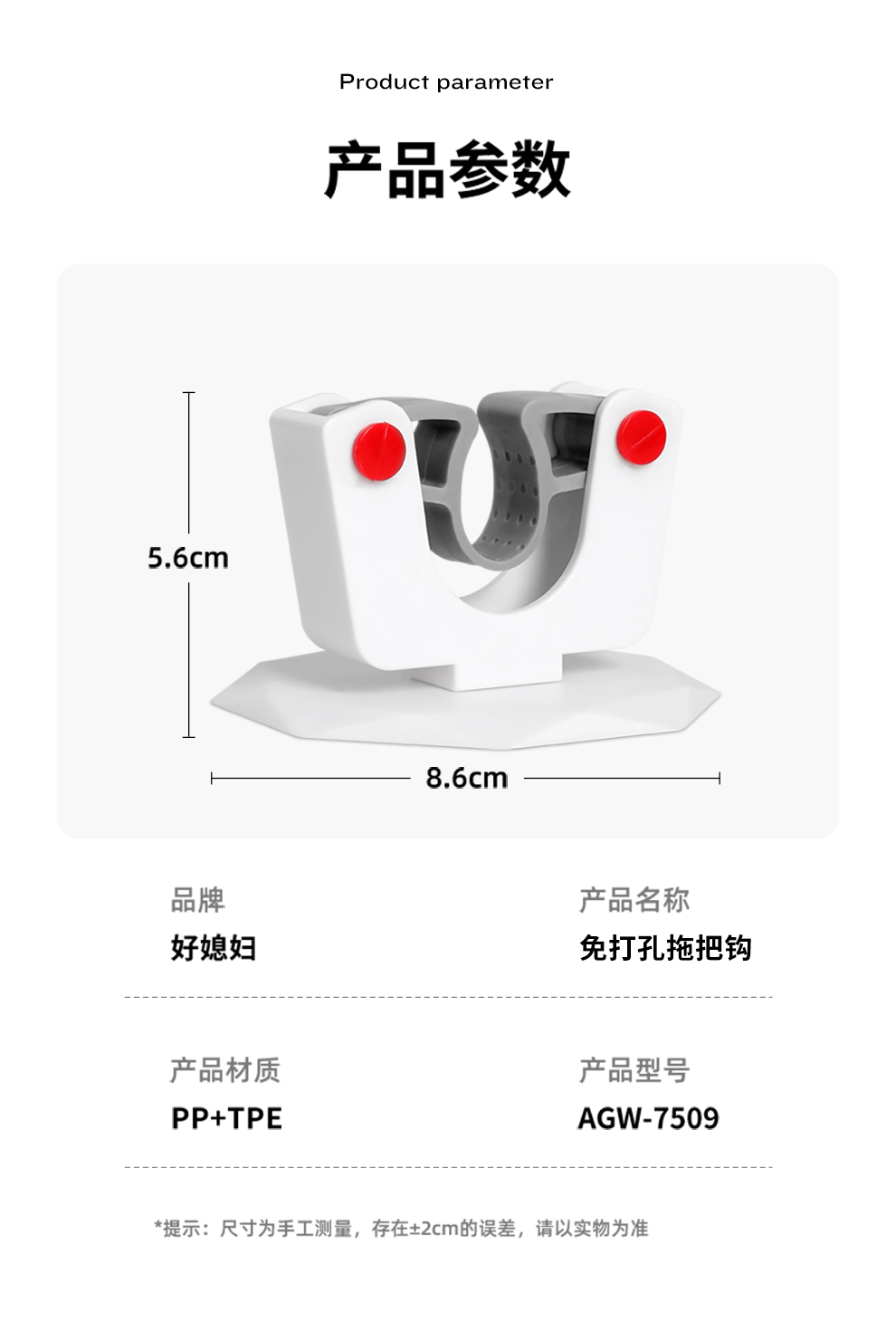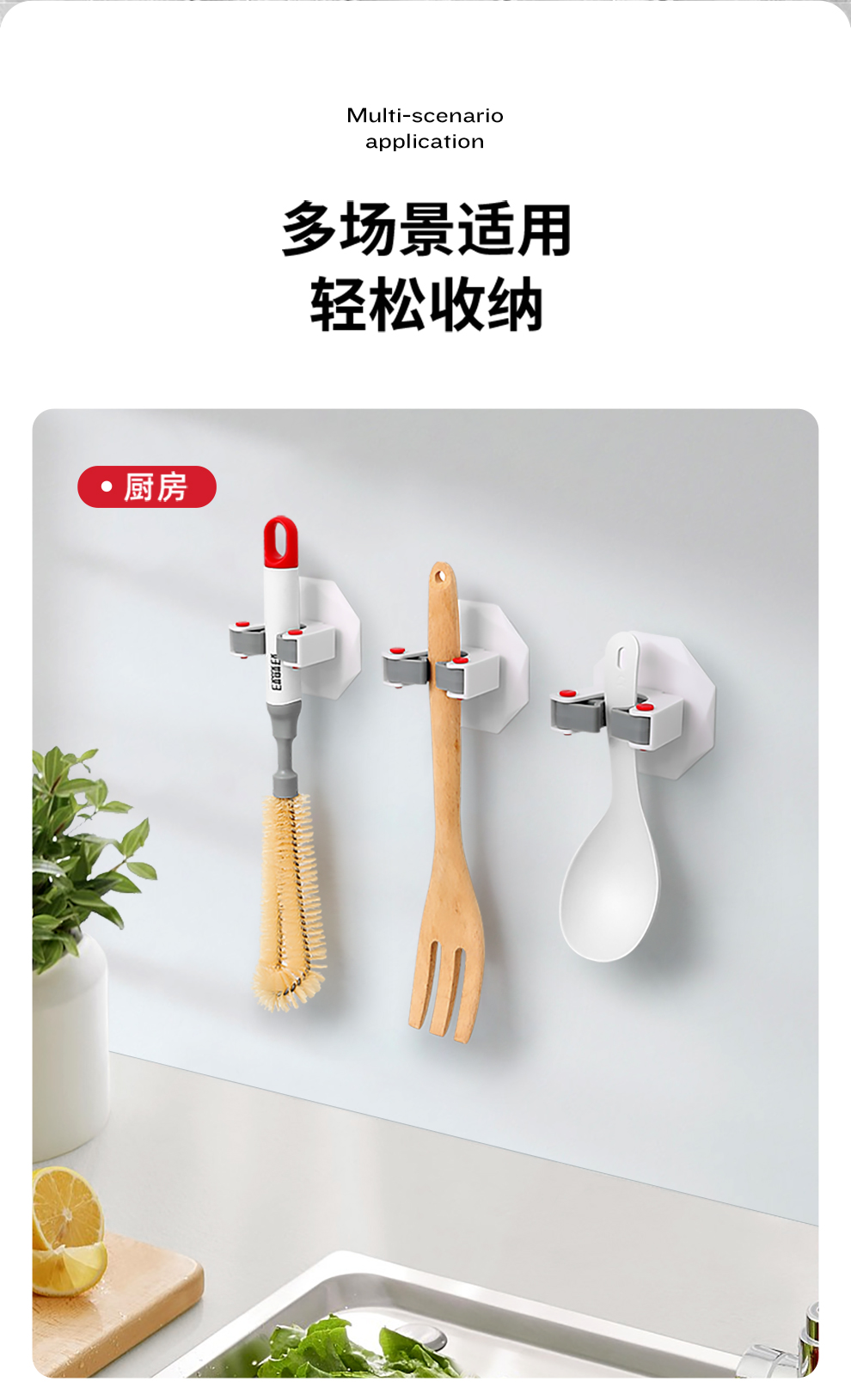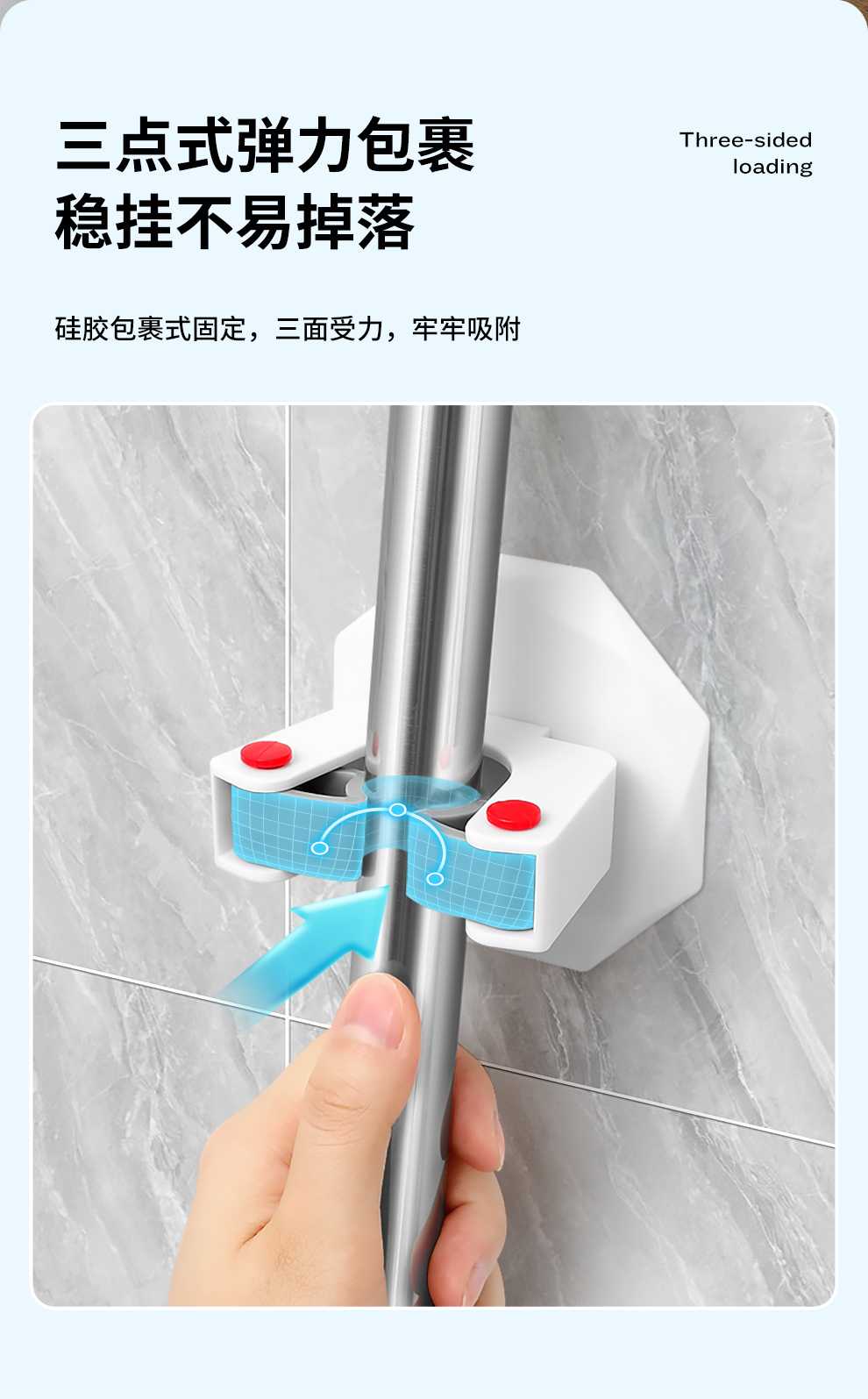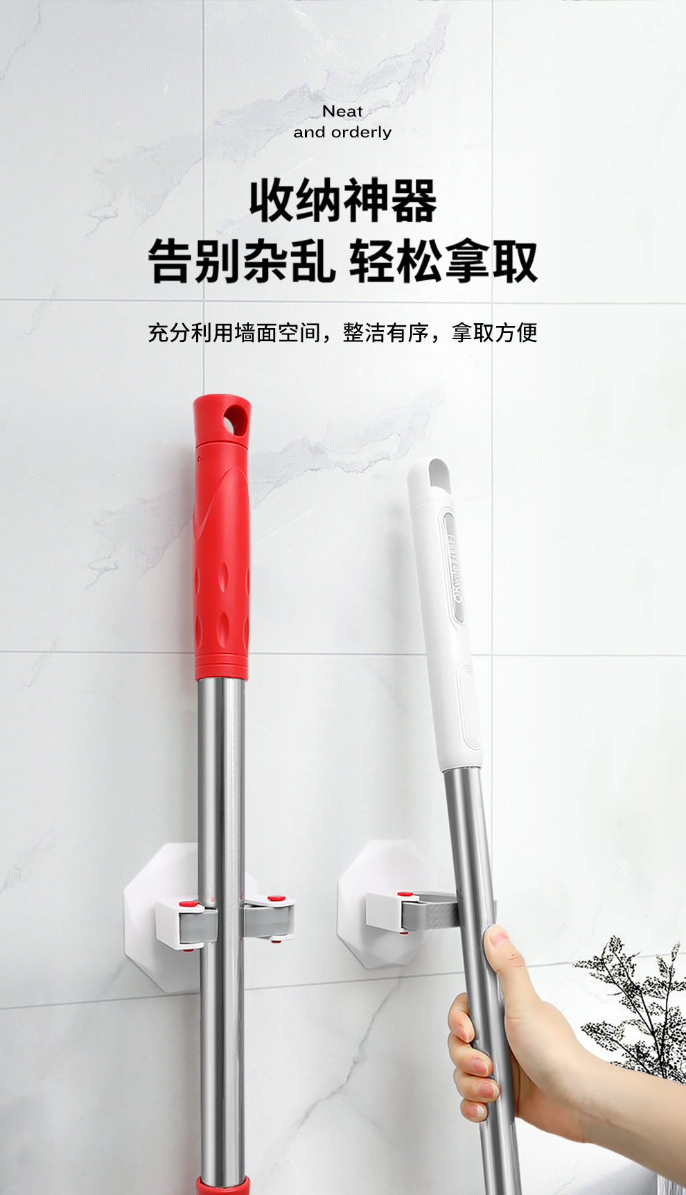 好媳妇拖把粘钩家用卫生间浴室厨房墙壁免打孔挂钩拖把夹1-3个装