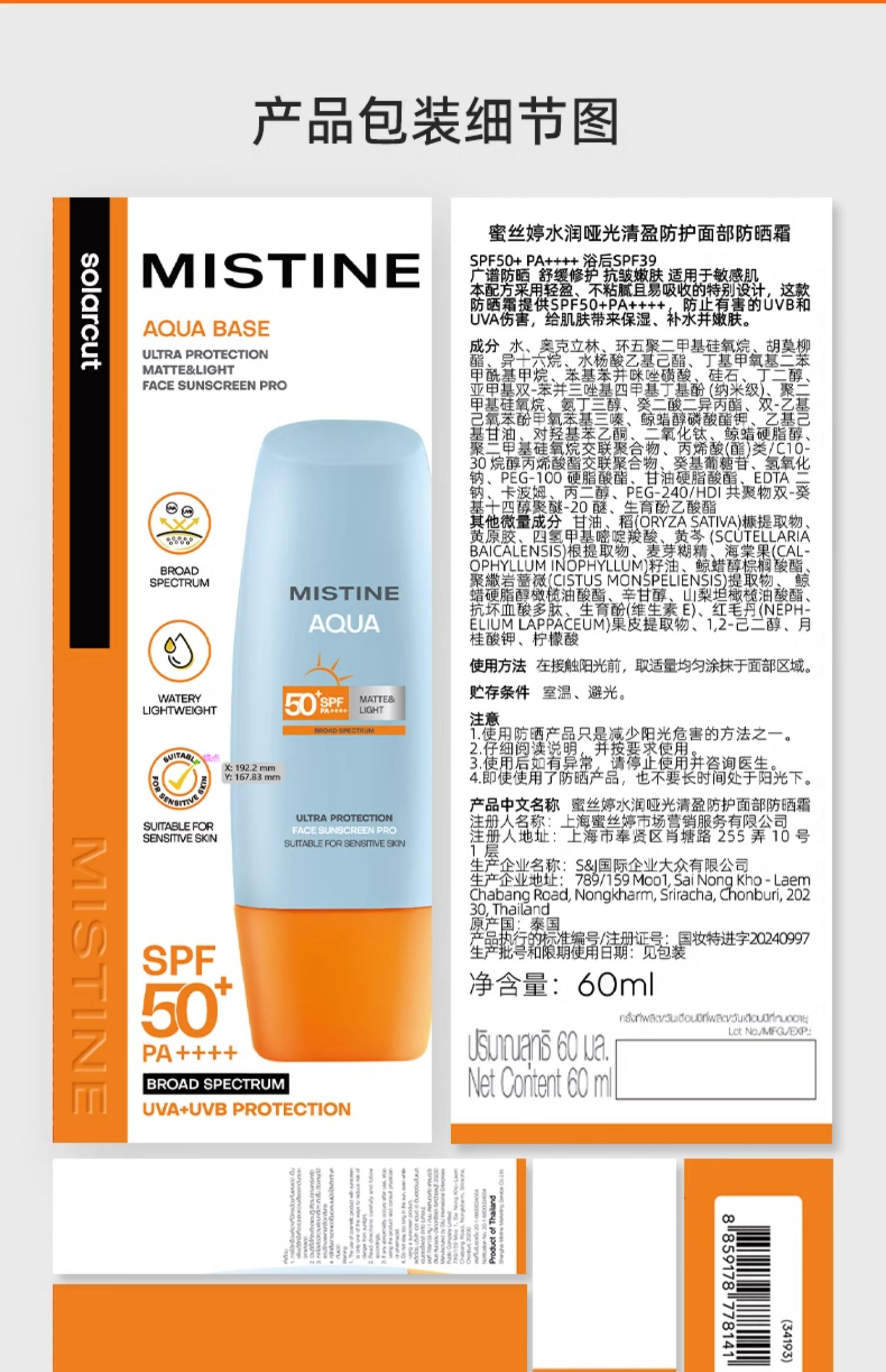 蜜丝婷 Mistine 水润哑光清盈防护面部防晒 40ml