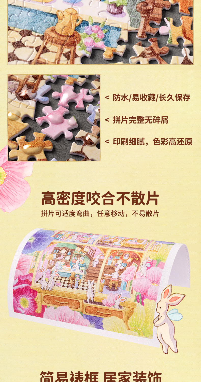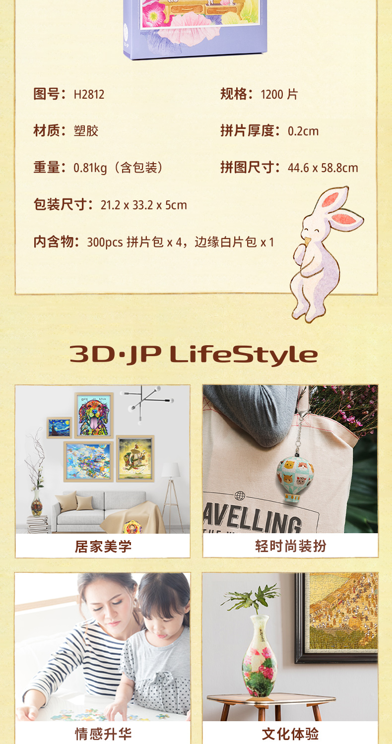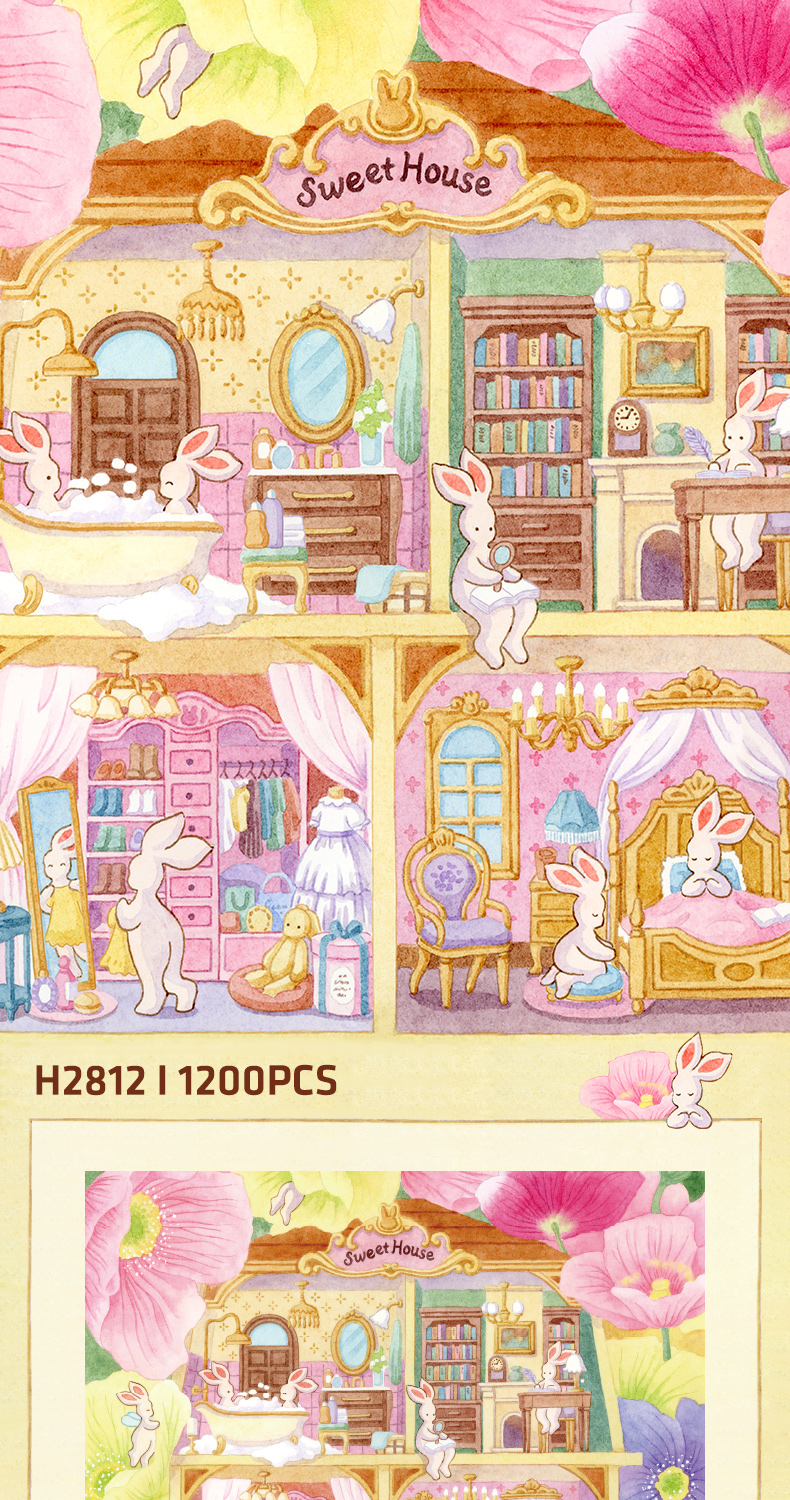 【折扣商品 不退不换】1200片 平面拼图 塑料拼图 H2812 添添Emily-兔崽崽系列-花谷小屋