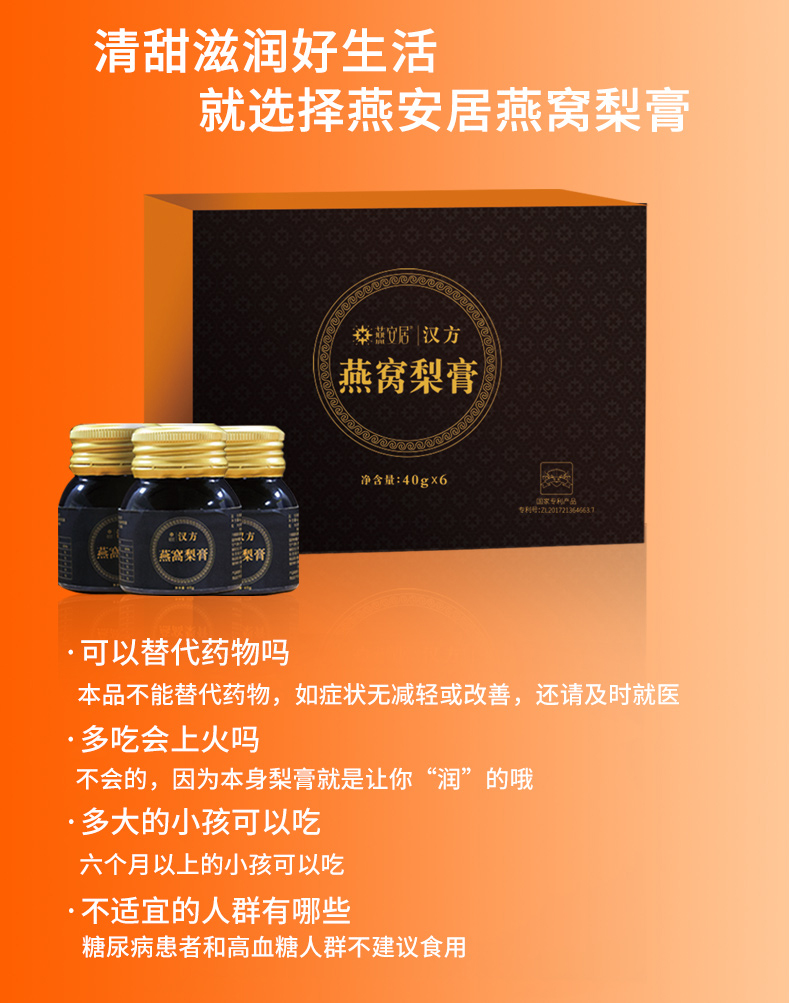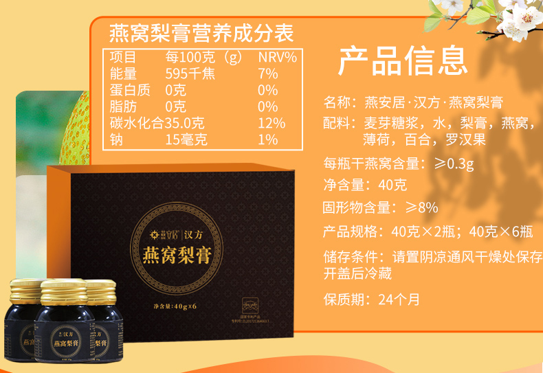 燕安居燕窝梨膏40g*6瓶礼盒装 汉方燕窝梨膏 老人儿童宝宝皆宜 古法熬制冲调润喉饮品