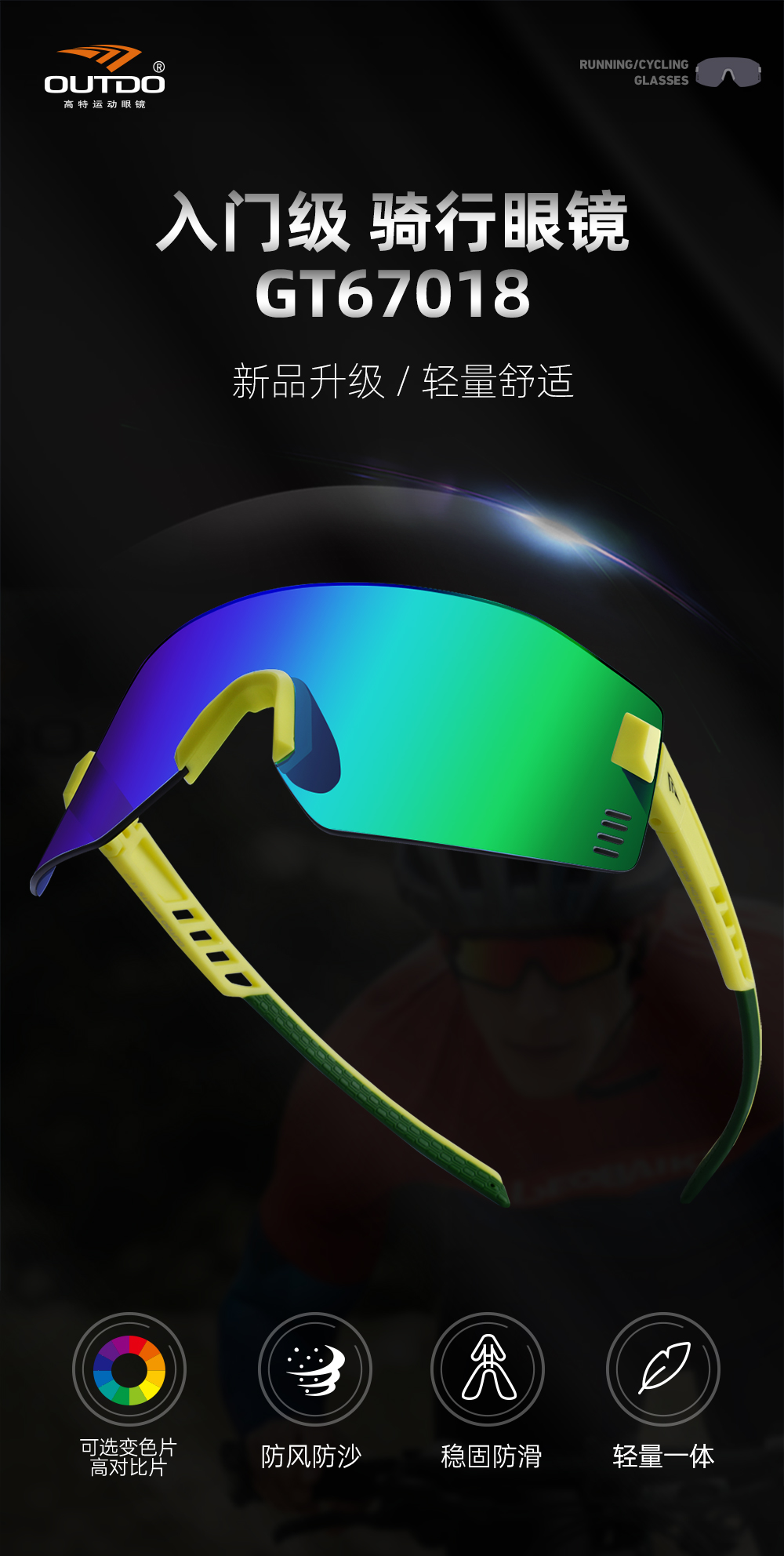 高特骑行眼镜变色男款女日夜两用自行车公路车防风护目镜GT67018
