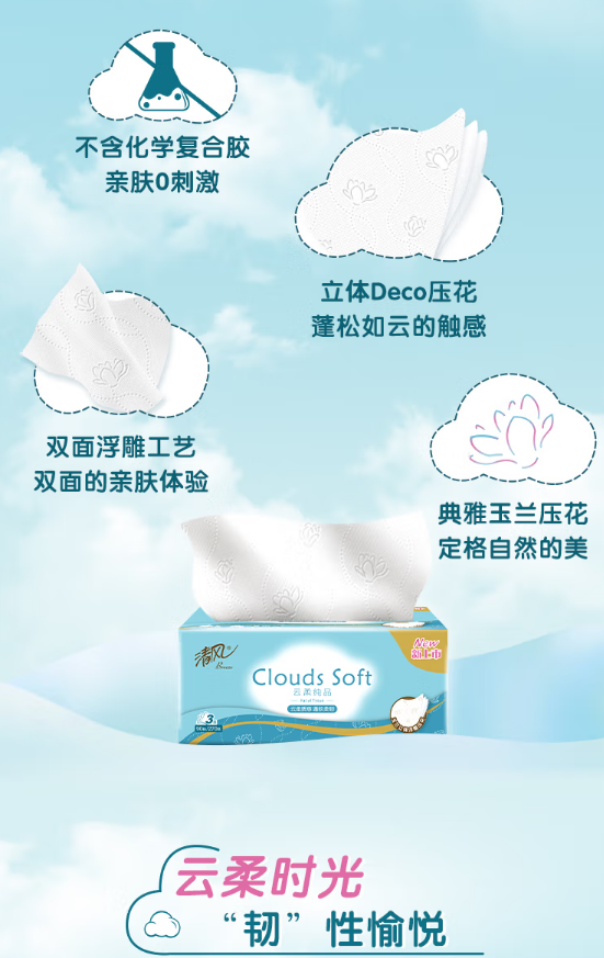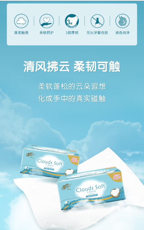 【RQ】清风抽纸 云柔系列 3层90抽 1件装24包