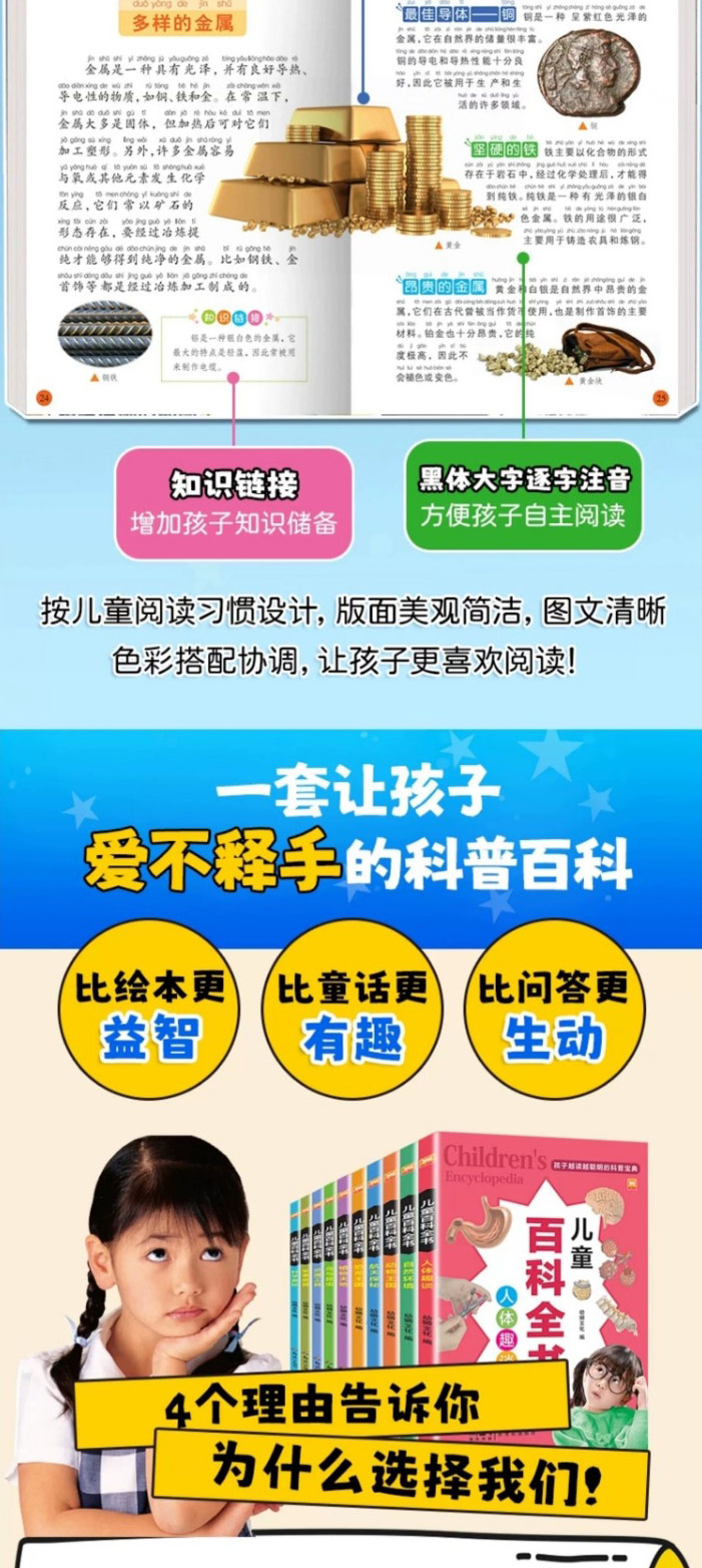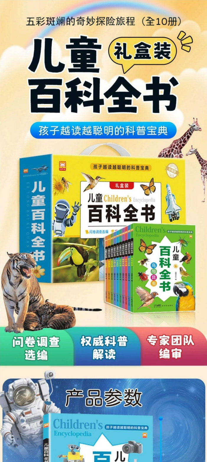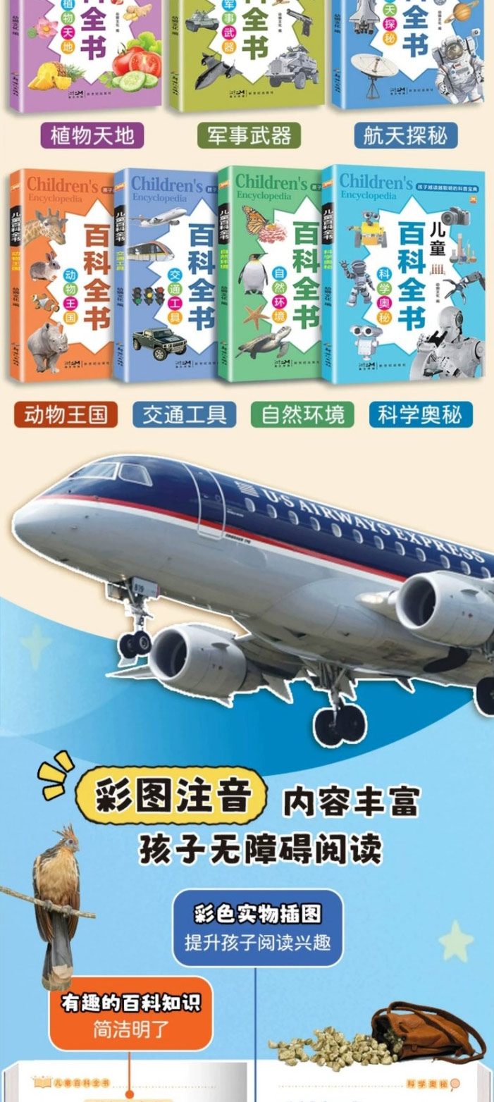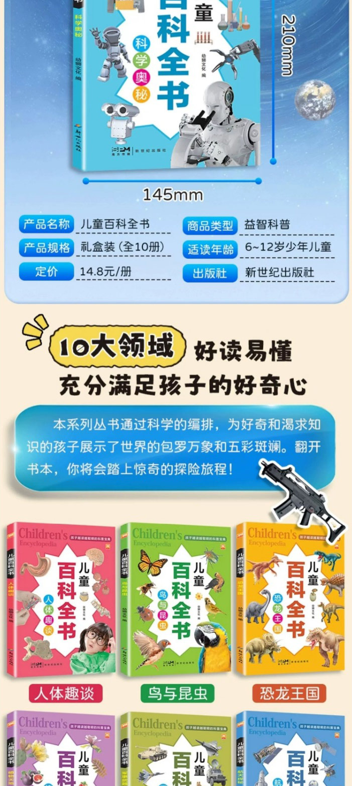 儿童的百科全书 全10册 动物王国航天探秘交通工具军事武器恐龙王国科学奥秘鸟与昆虫人体趣谈阅读课外书小学生二三四年级读物
