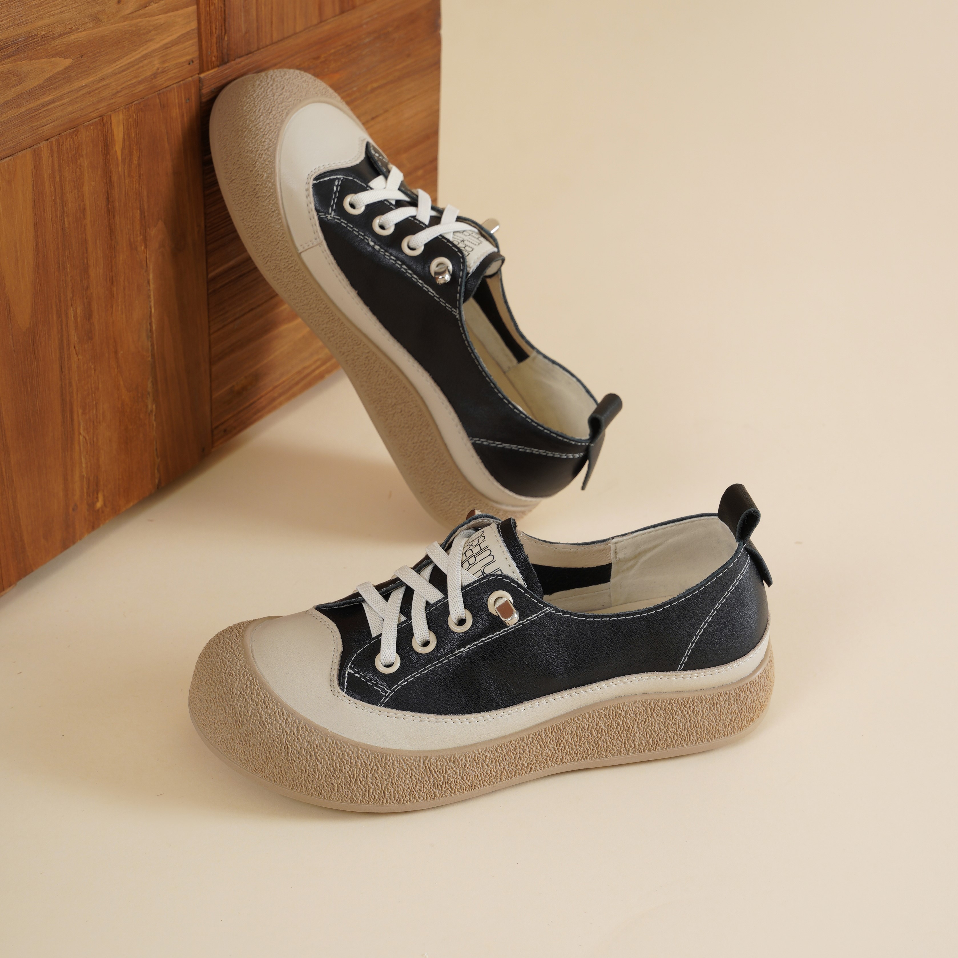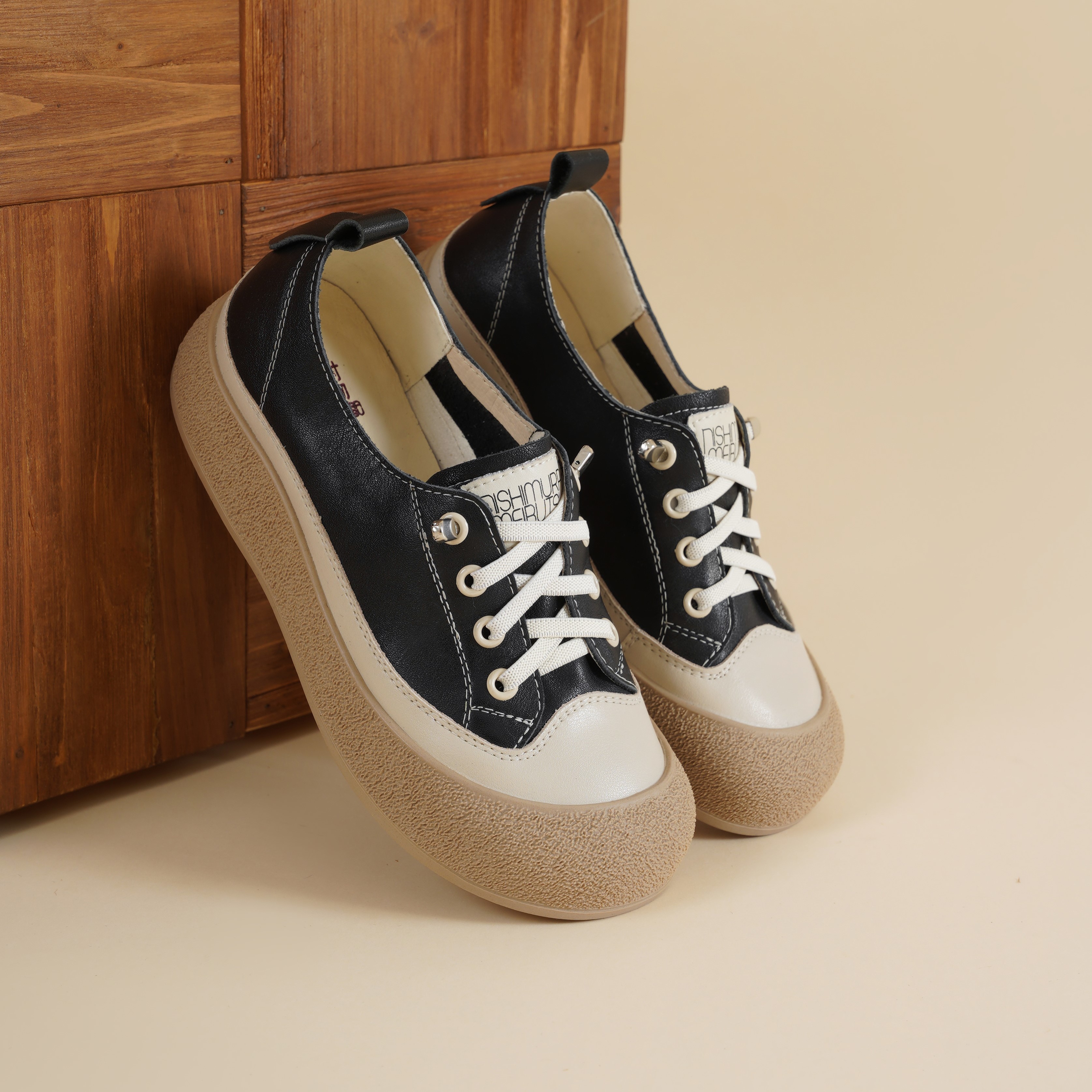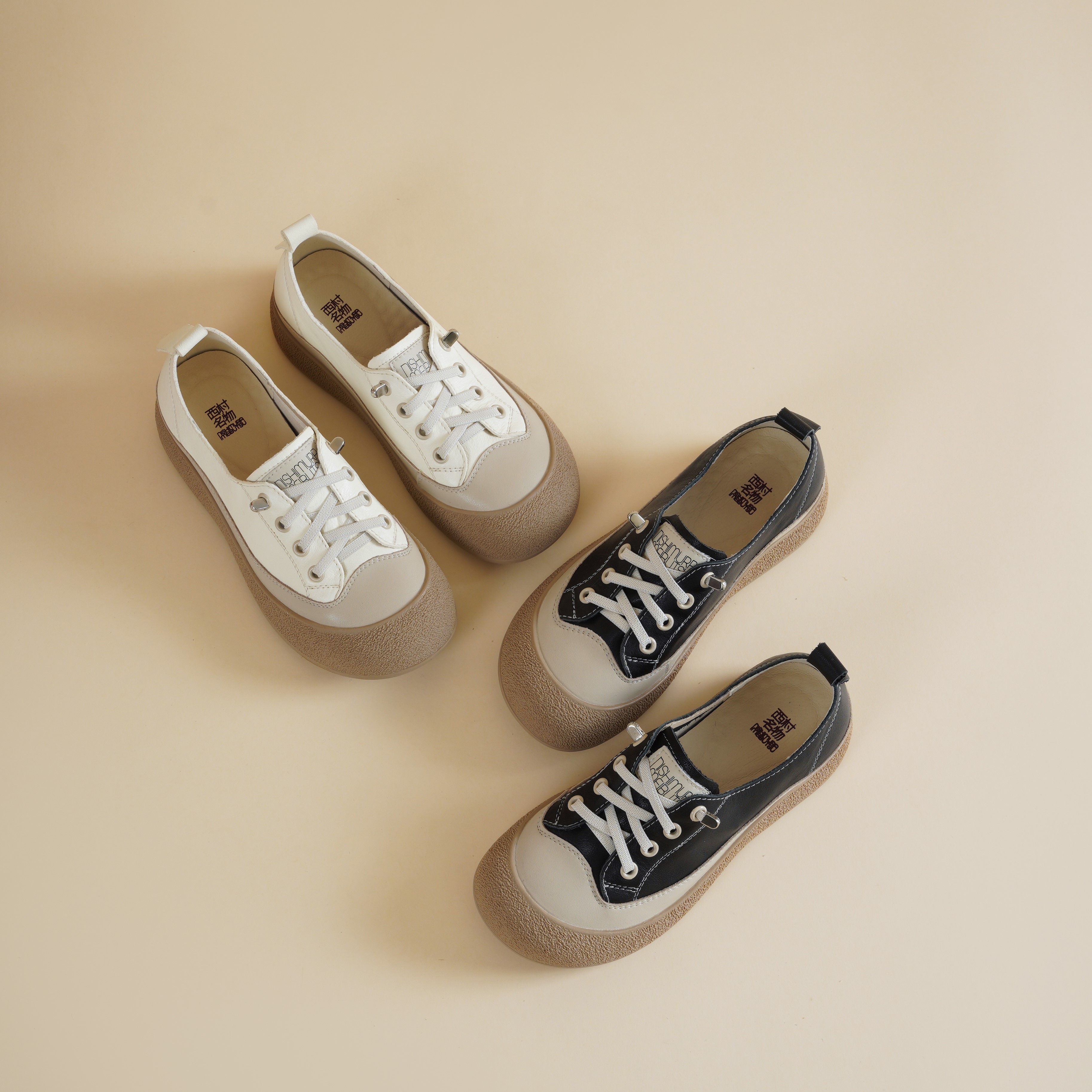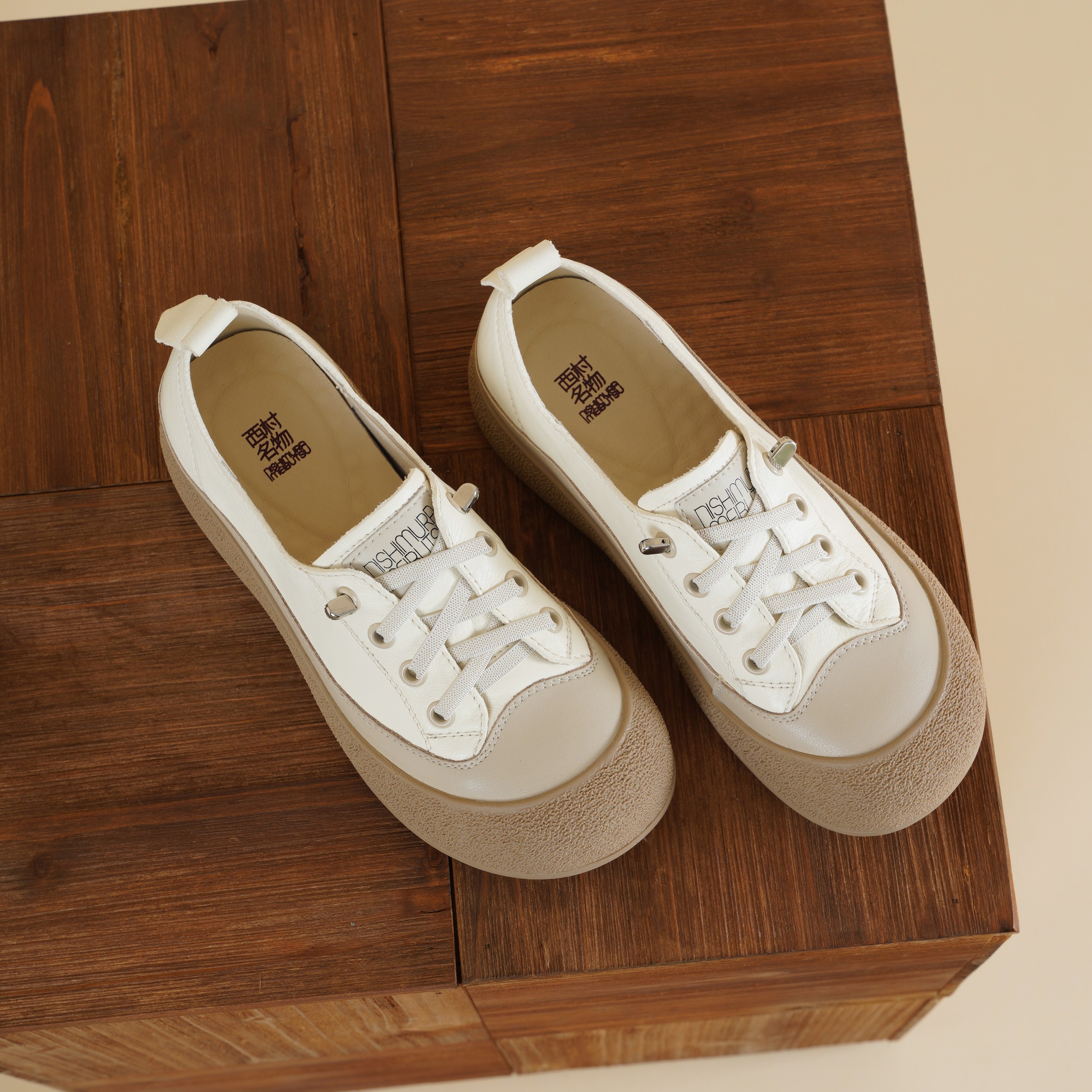 【牛皮革】西村名物2026年春季新款舒适透气厚底防滑系带休闲小板鞋小白鞋X26AM17261