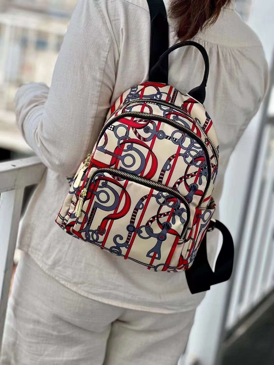 2308 # 杏底爱马仕 双肩包女牛津布轻便大容量 旅游时尚休闲百搭精致
