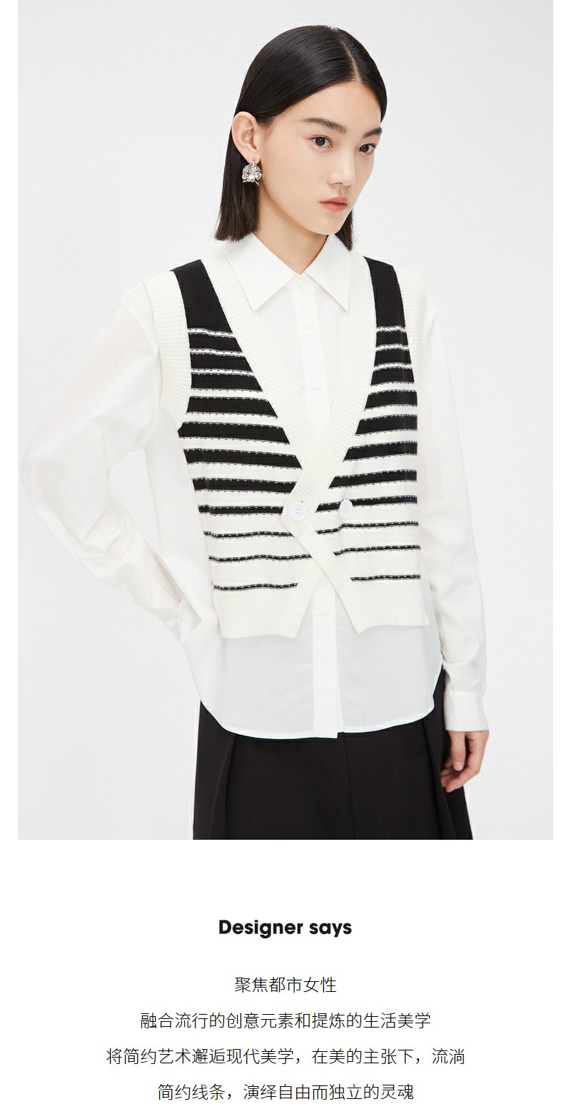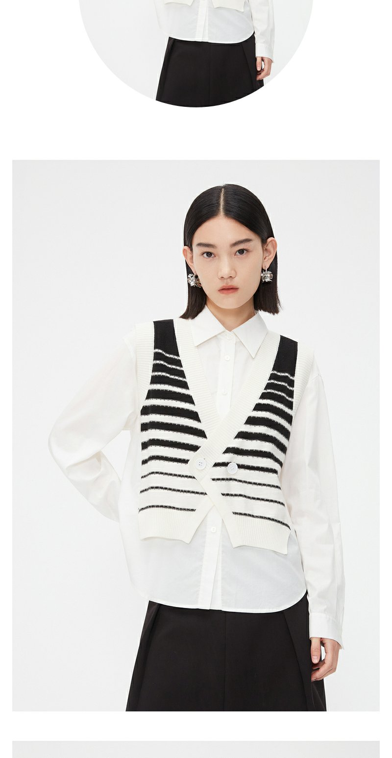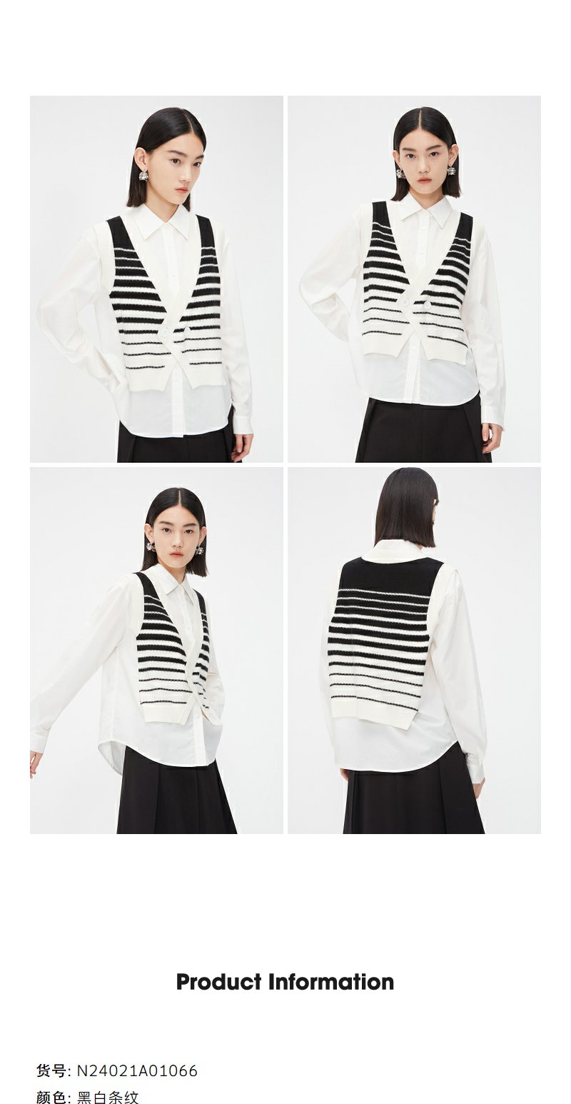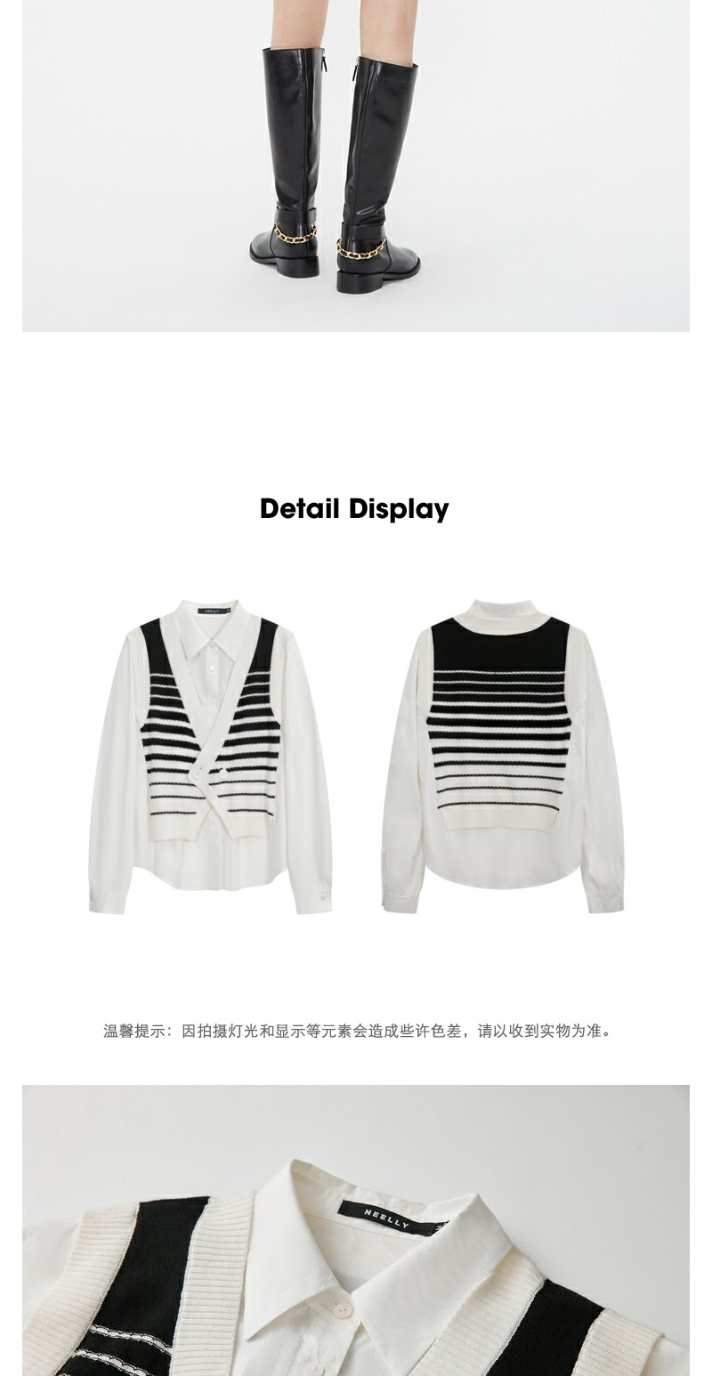 NEELLY纳俪商场同款假两件衬衫女春温柔别致马夹黑白条纹小众上衣N24021A01066