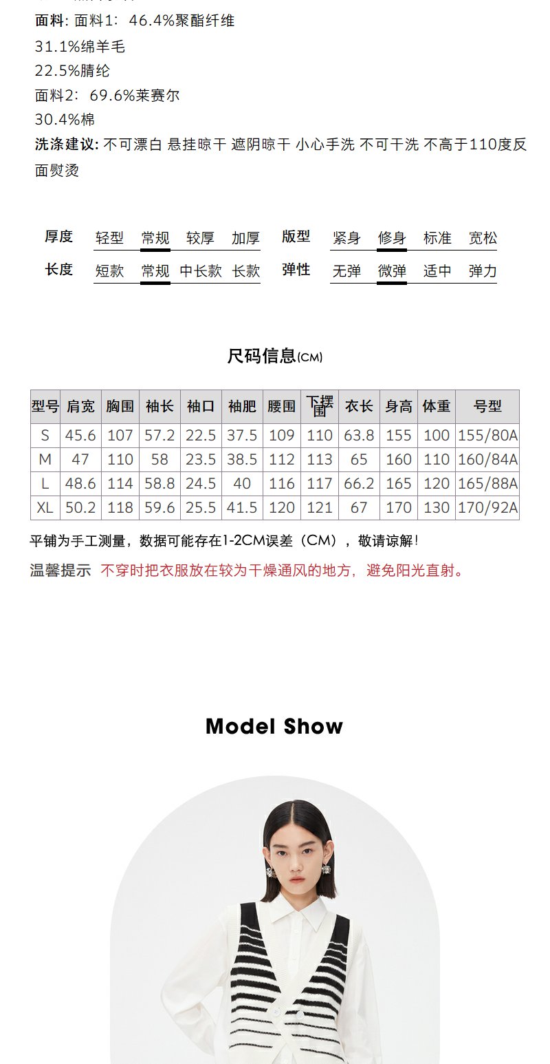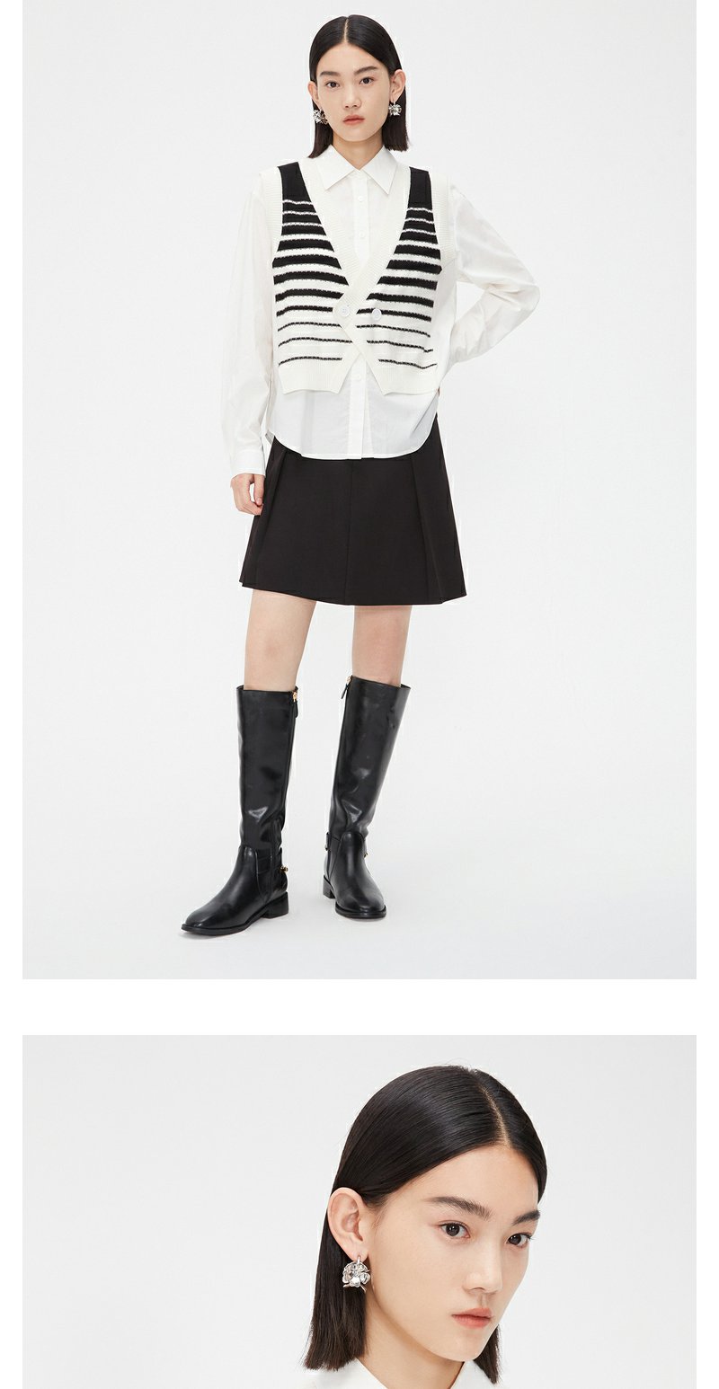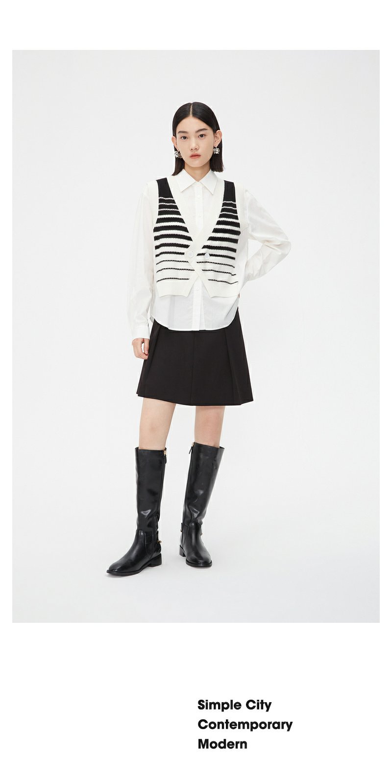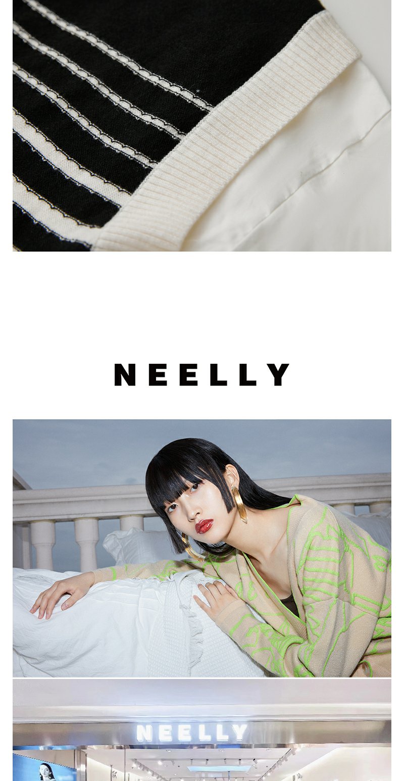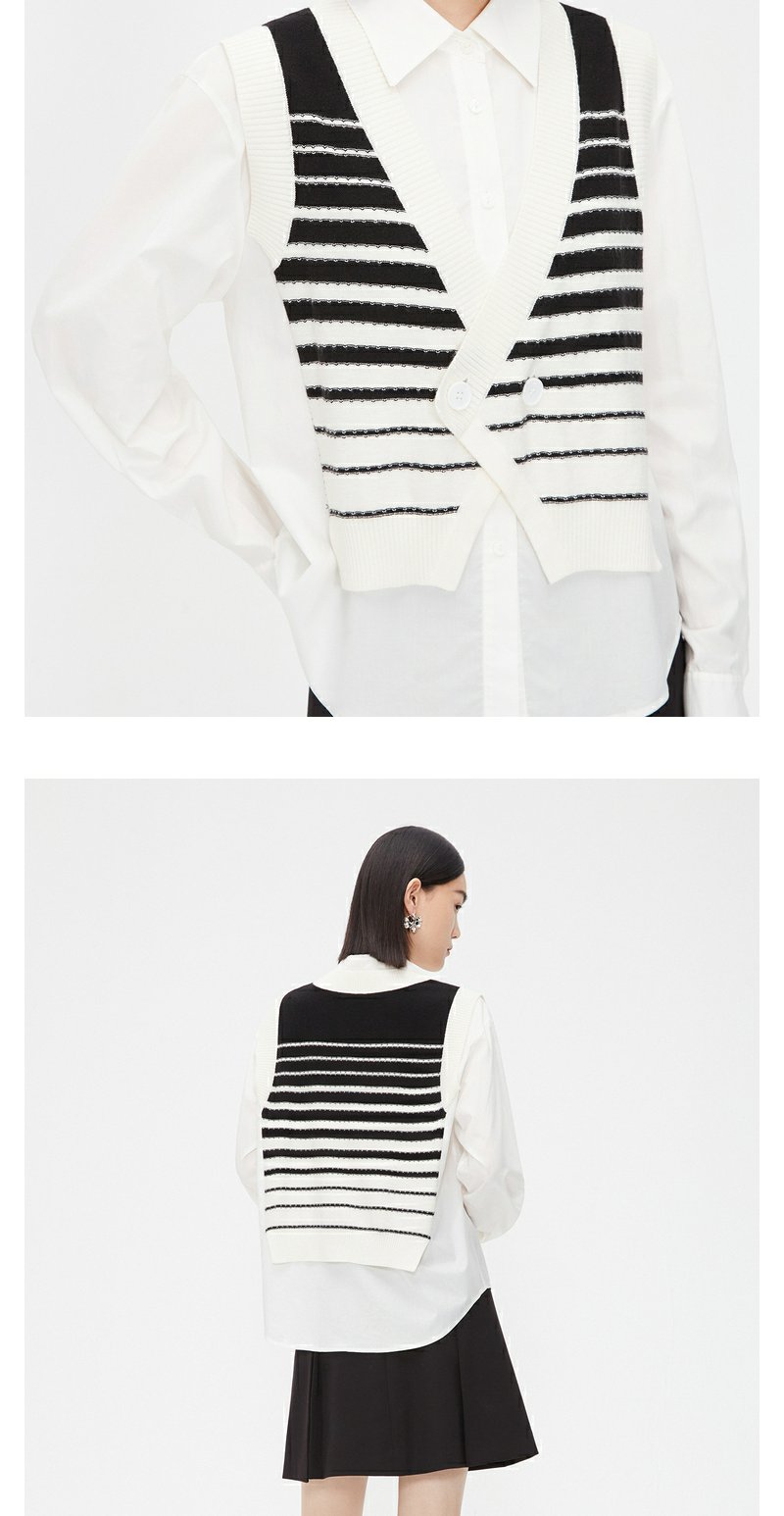 NEELLY纳俪商场同款假两件衬衫女春温柔别致马夹黑白条纹小众上衣N24021A01066