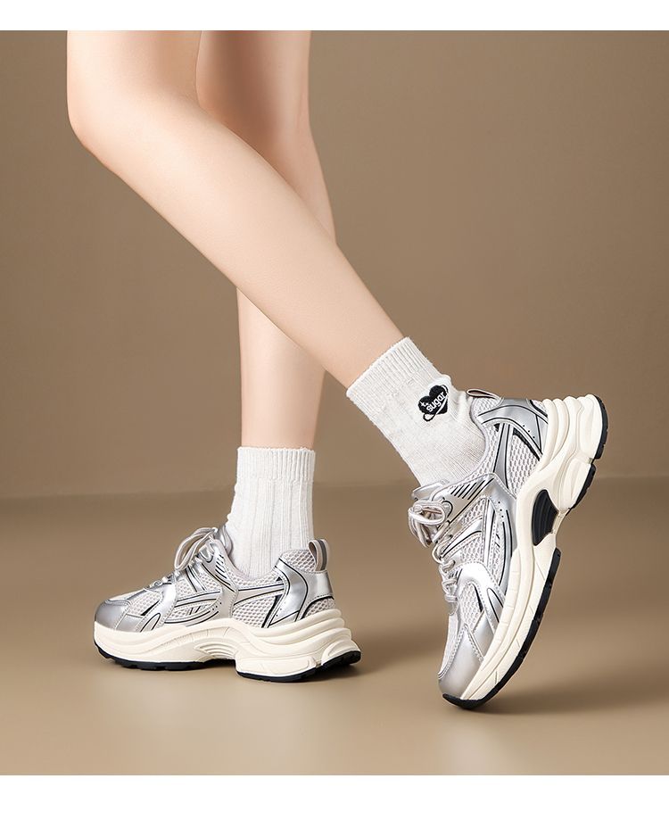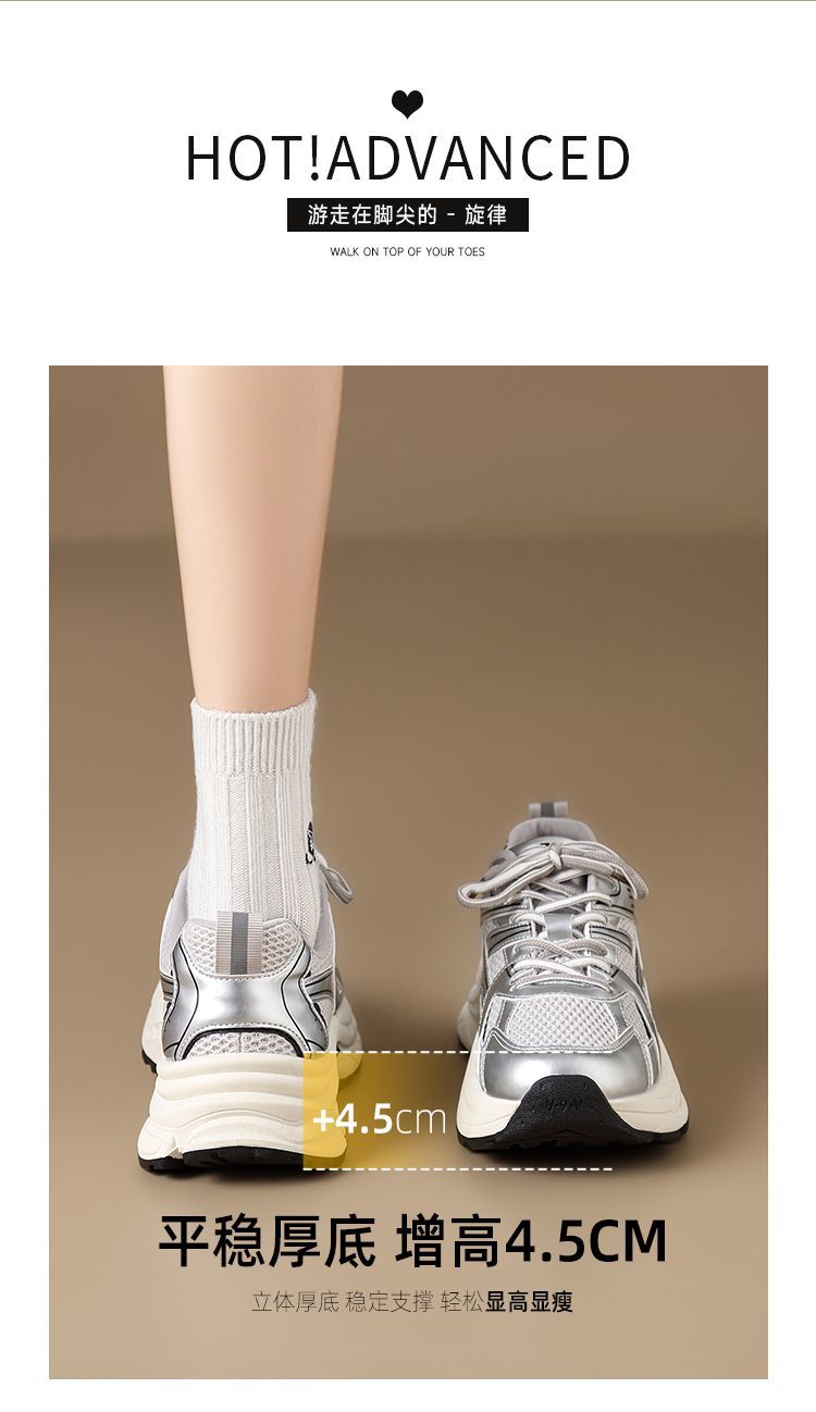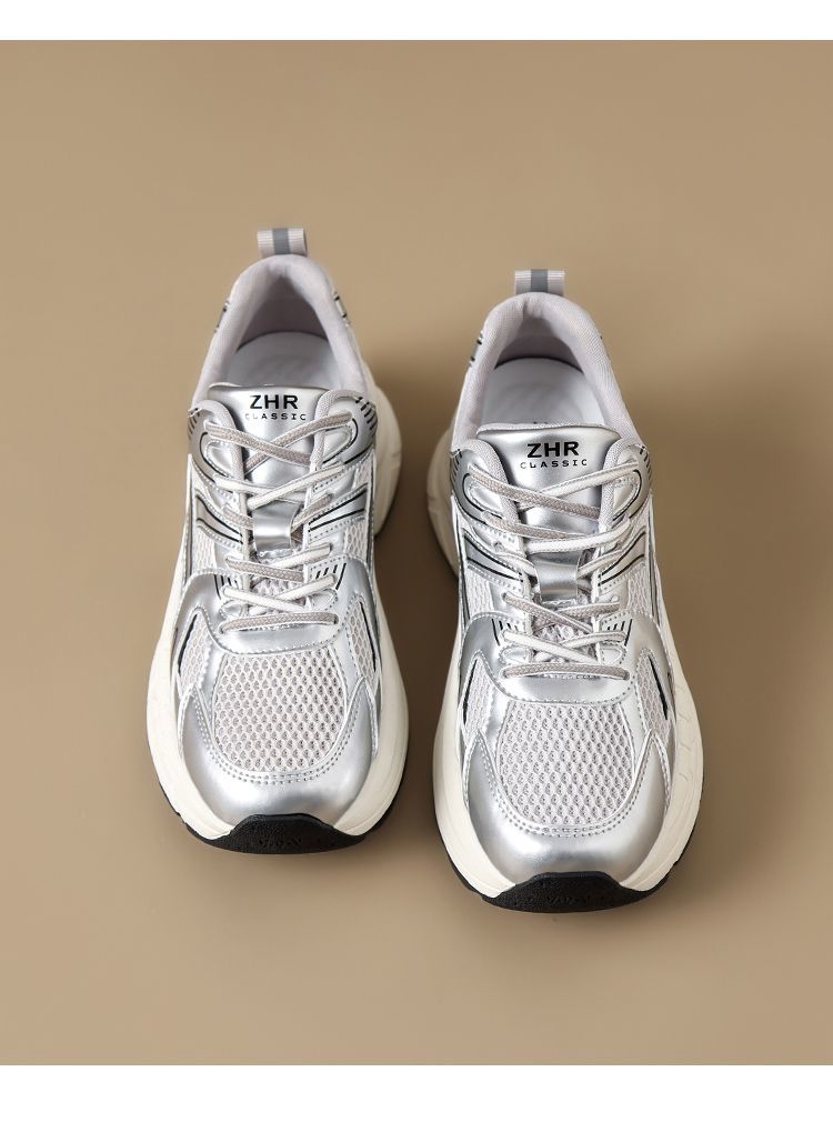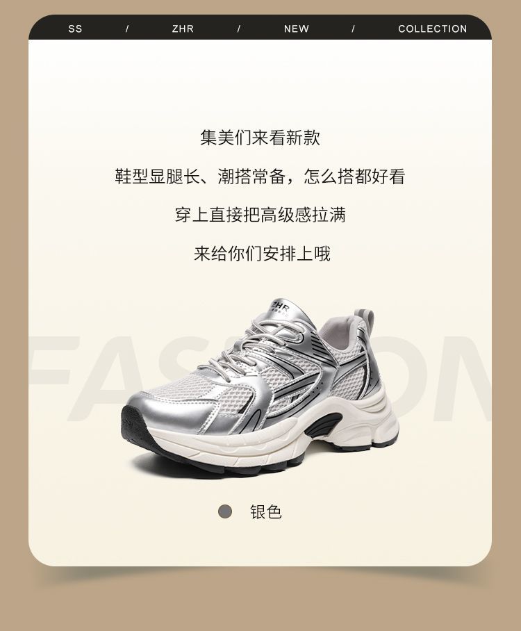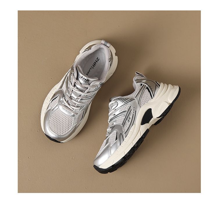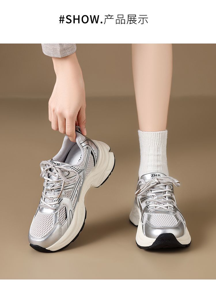 ZHR则则潮酷时尚春季新款银色老爹鞋女厚底透气休闲增高运动鞋女