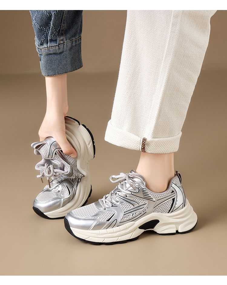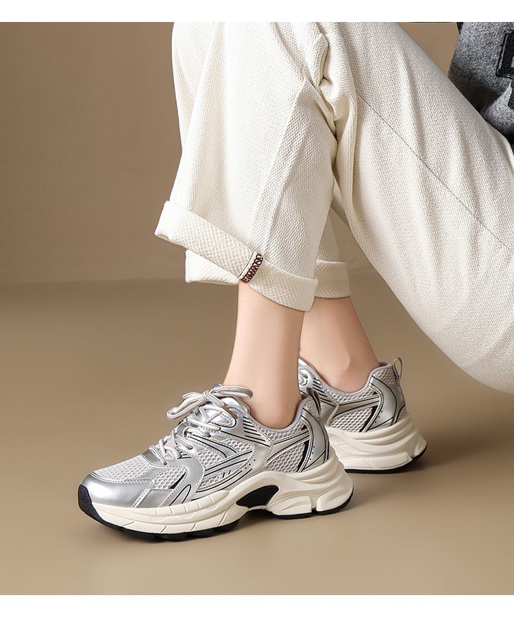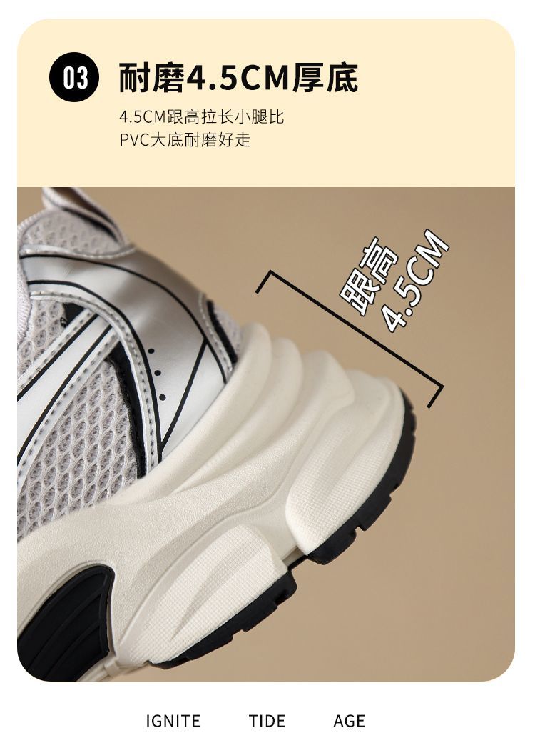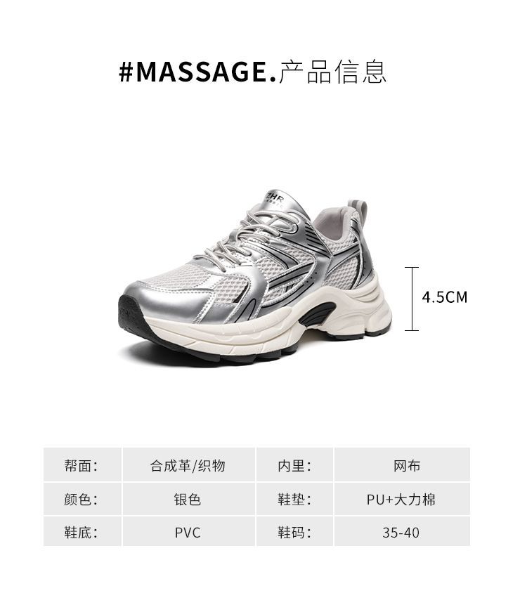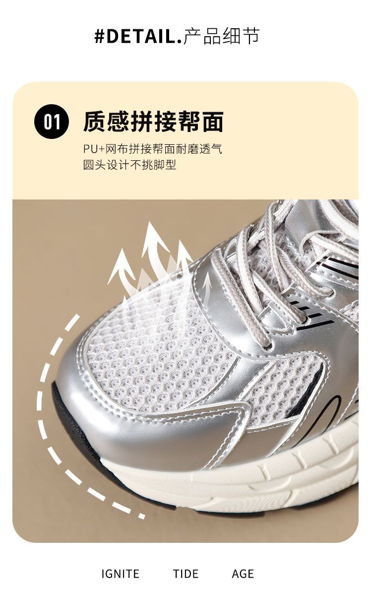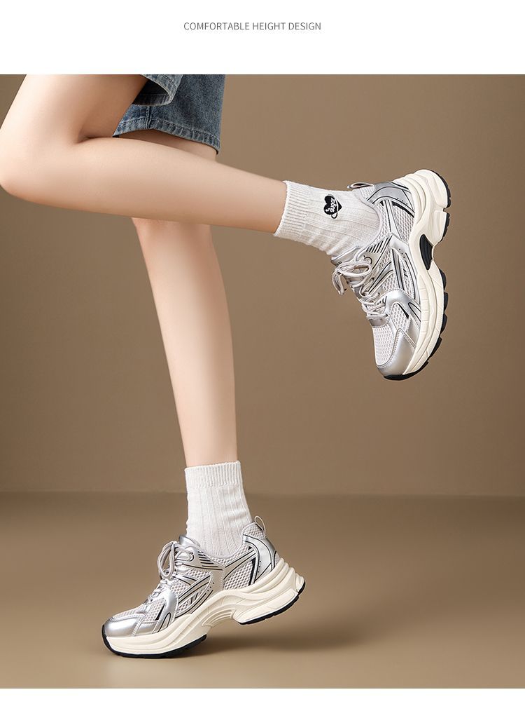 ZHR则则潮酷时尚春季新款银色老爹鞋女厚底透气休闲增高运动鞋女