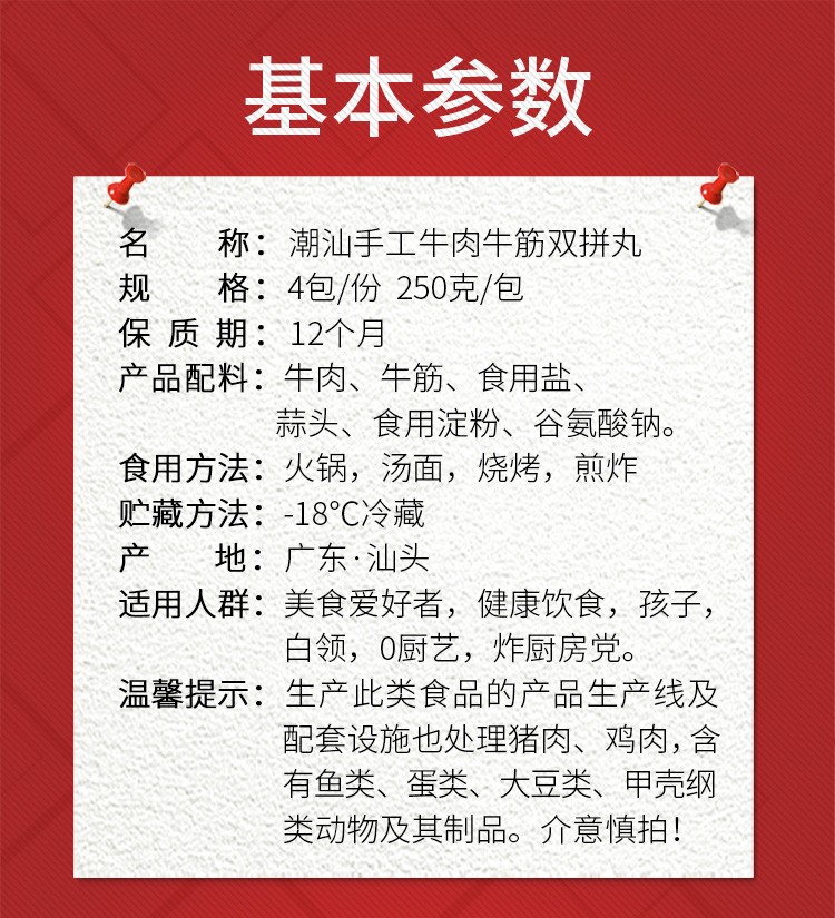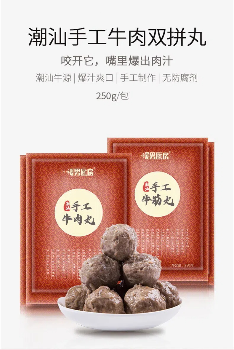 【爽口爆汁 手工制作】潮汕手工牛肉丸 250g/包*4包