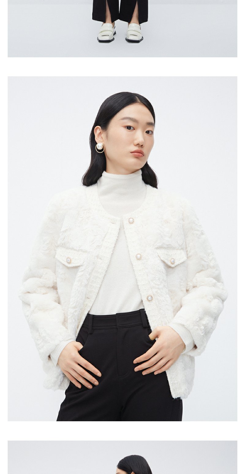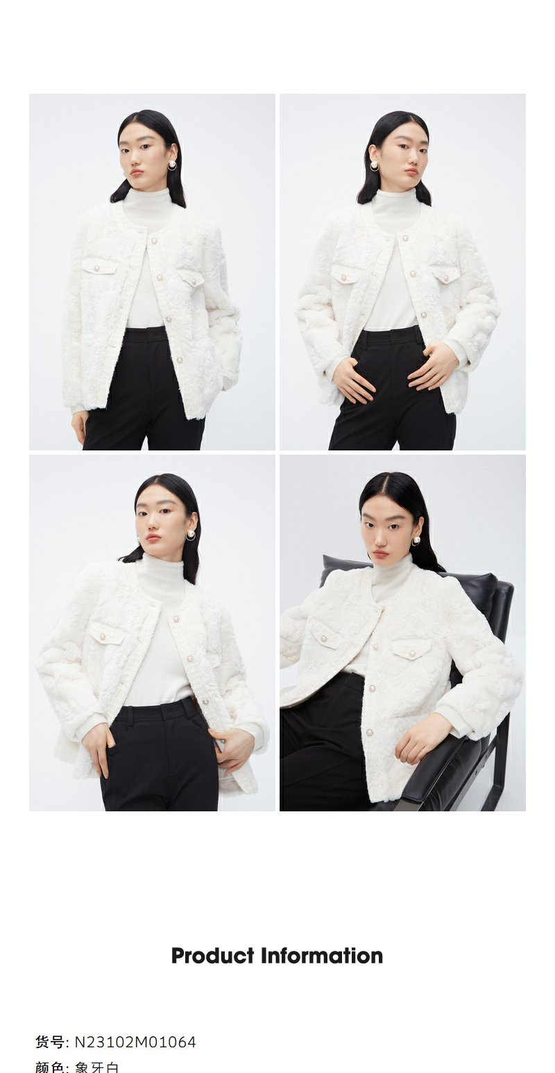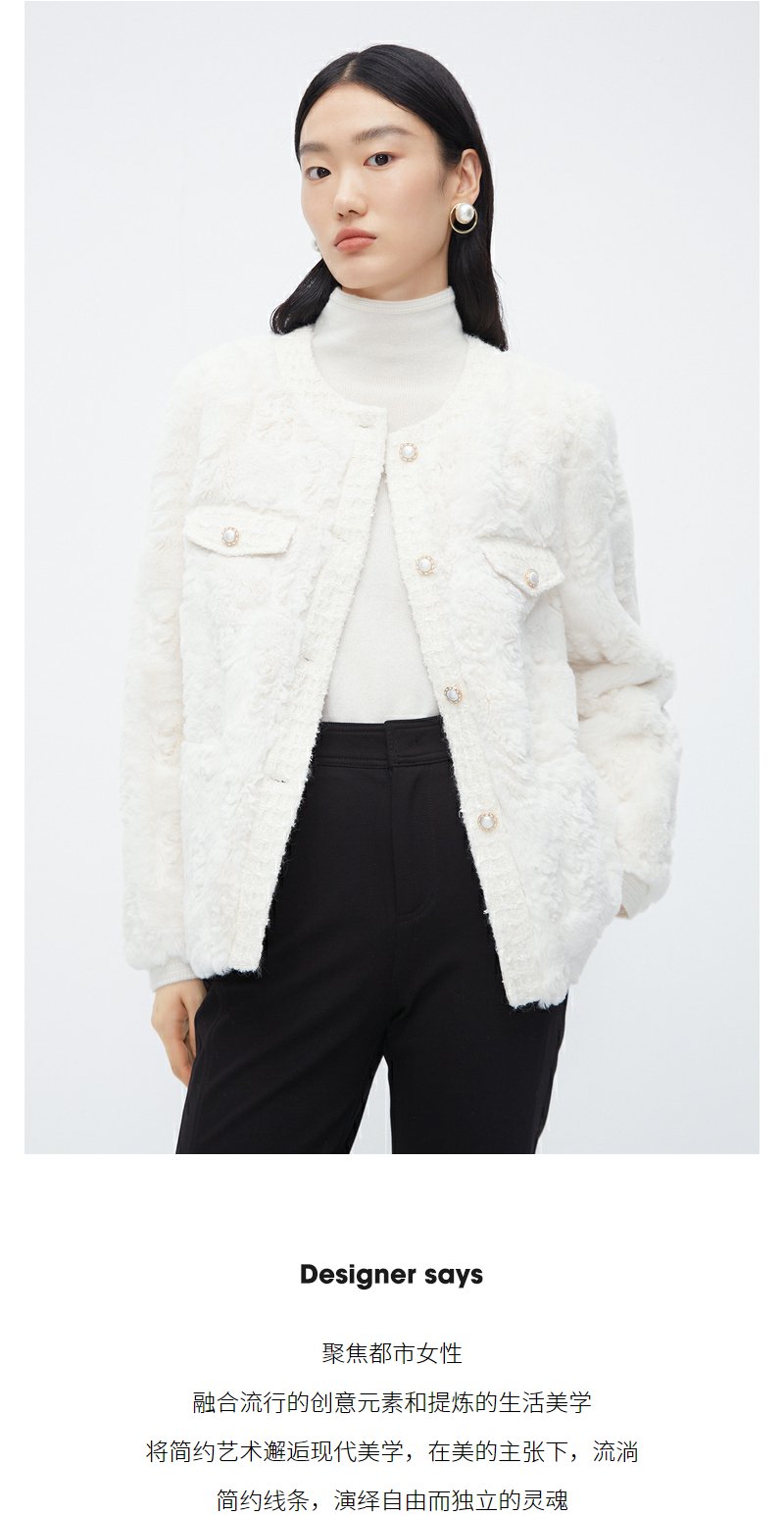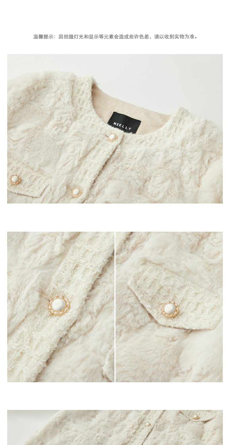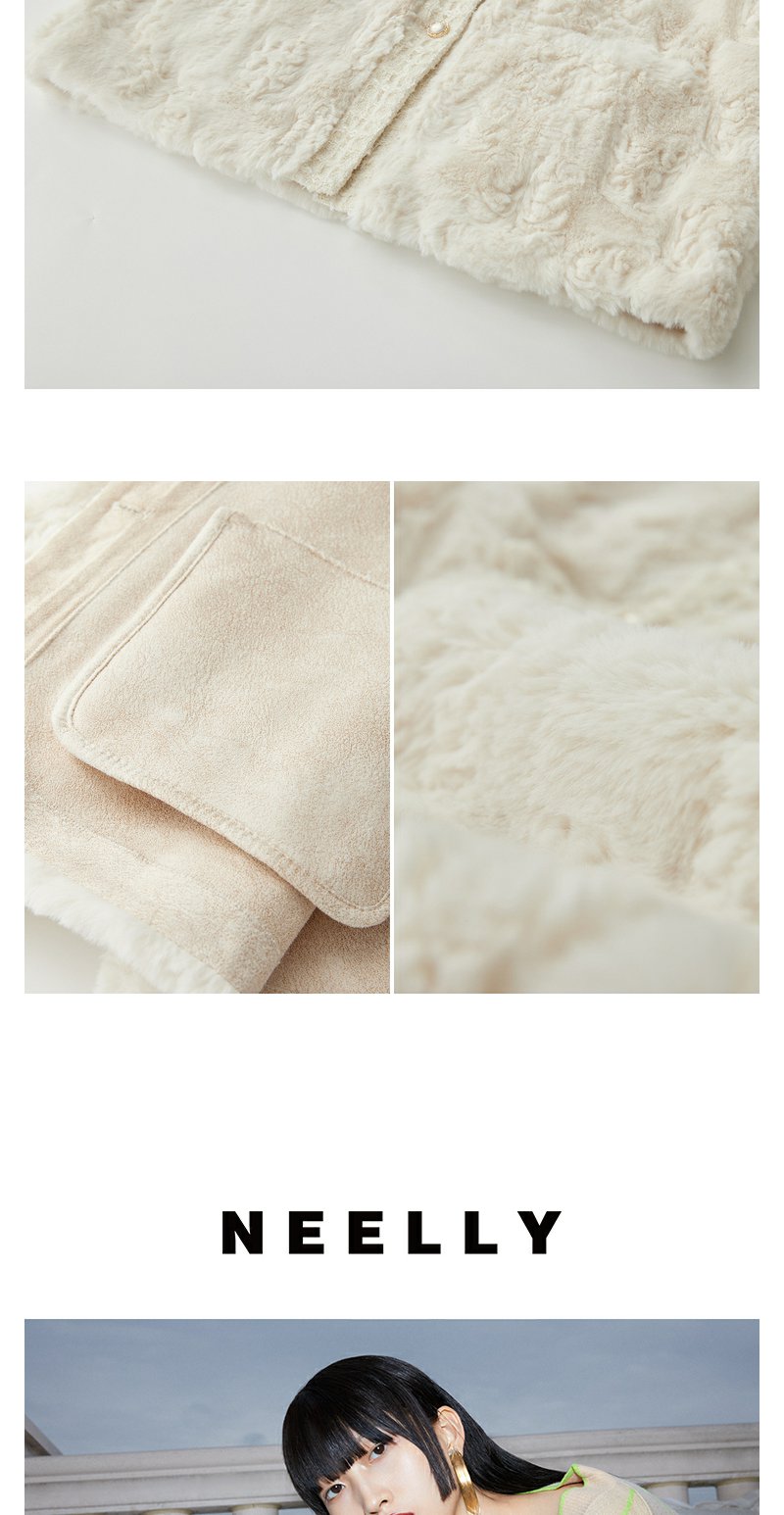 NEELLY纳俪商场同款香风毛绒短外套女冬新款精致名媛风仿麂皮上衣N23102M01064
