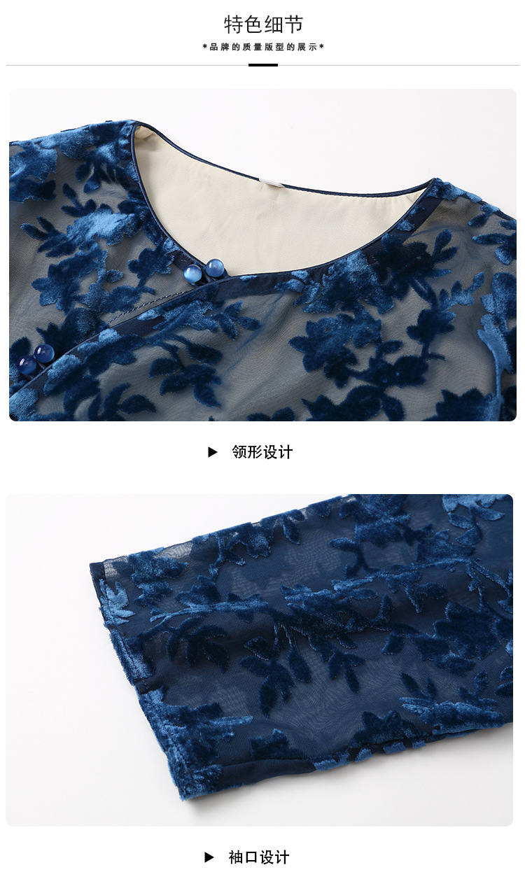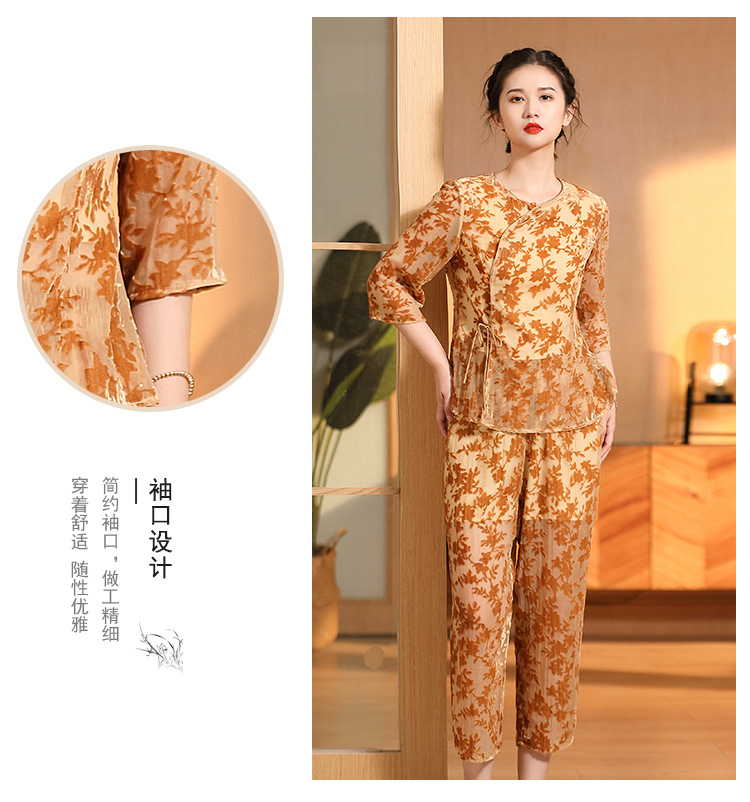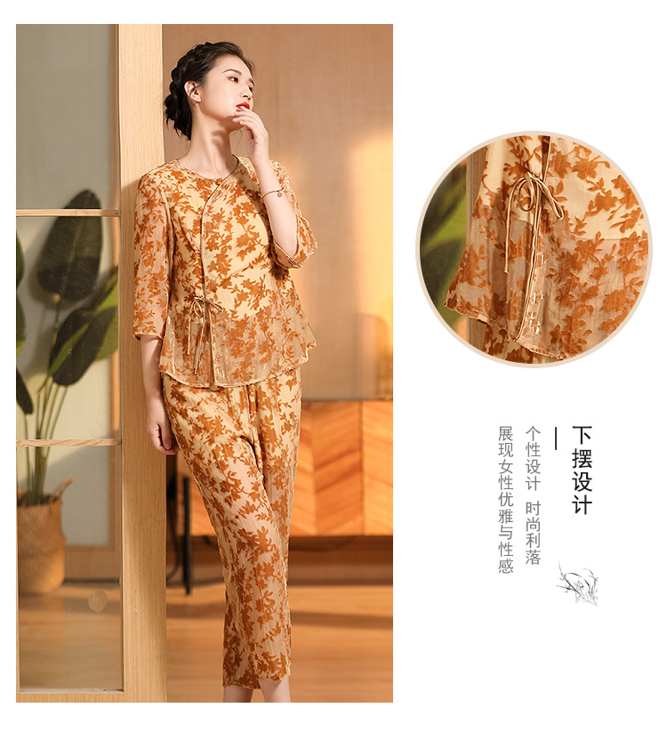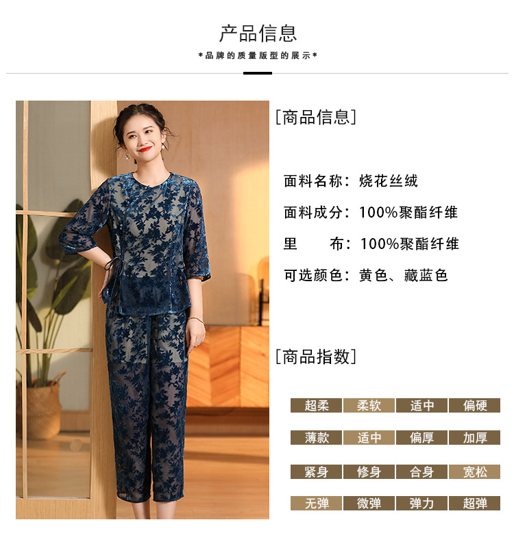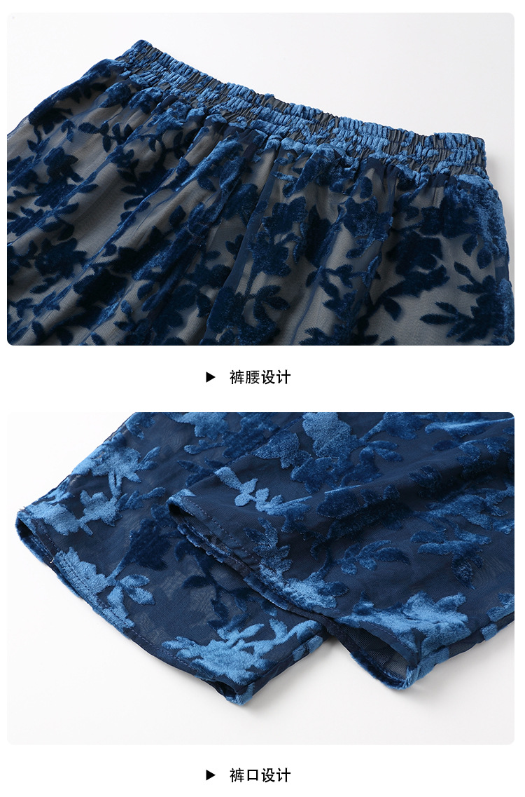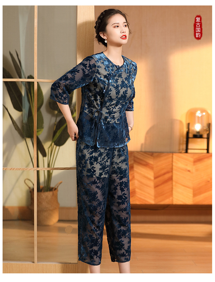 国风复古,圆领宽松上衣+九分裤精品烧花丝绒套装AYK-220512
