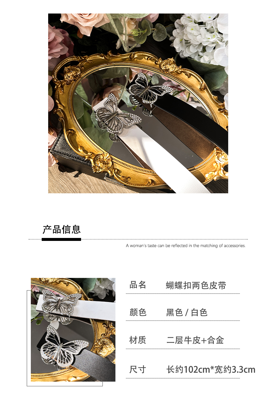 休闲时尚百搭复古气质中古轻奢重工女士平滑合金腰带 余潇潇配饰