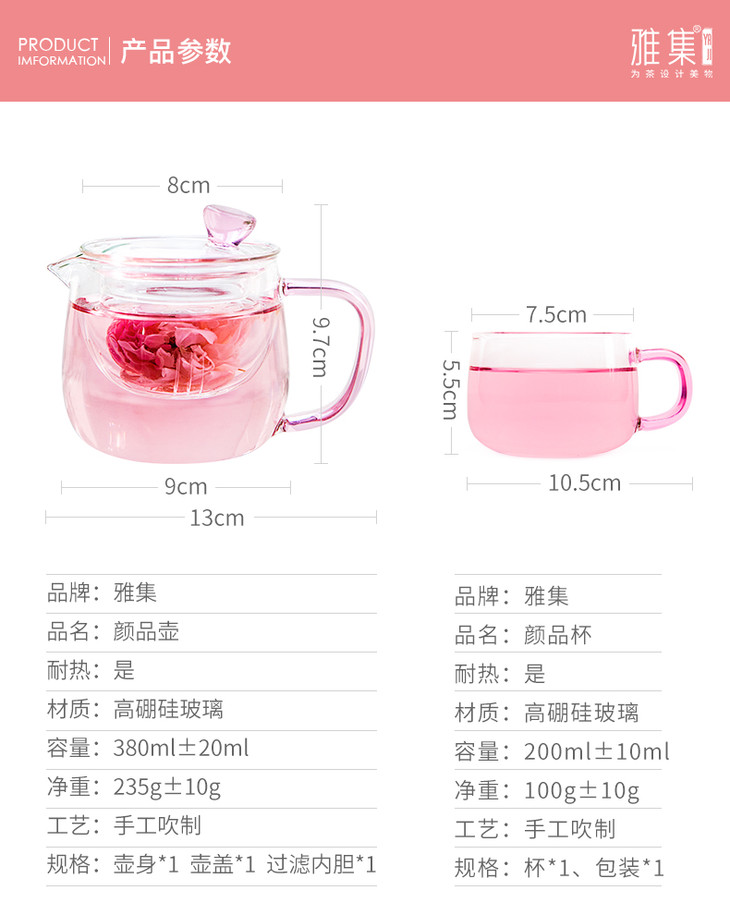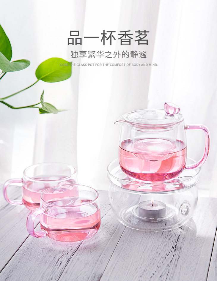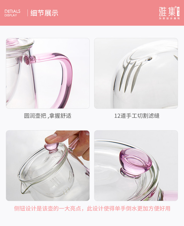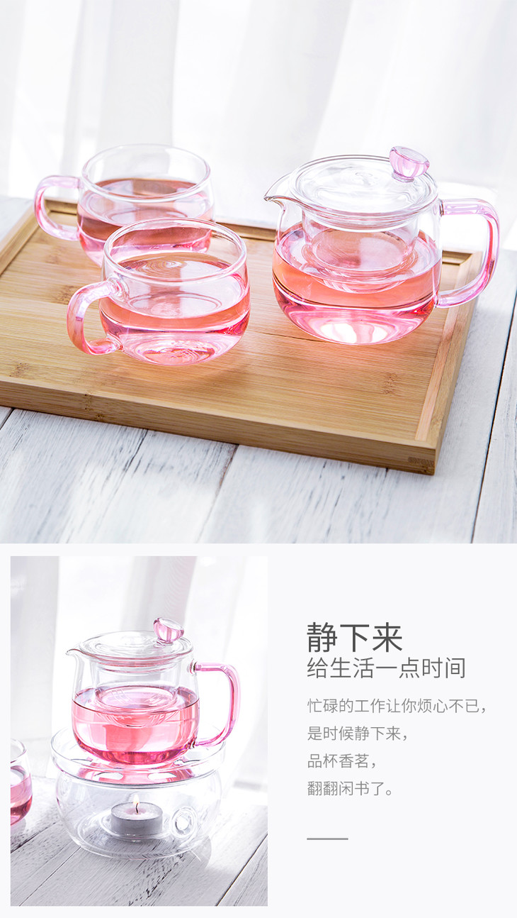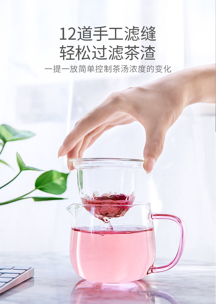 雅集泡茶壶玻璃过滤家用玻璃女茶壶花茶壶耐高温办公简易茶具颜品壶套装