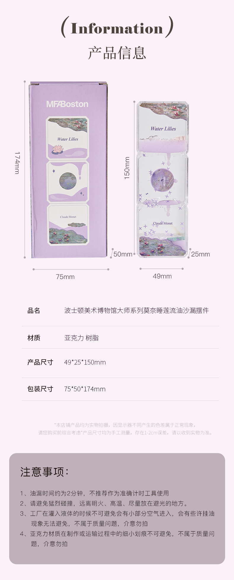 波士顿美术博物馆大师系列莫奈睡莲流油沙漏摆件