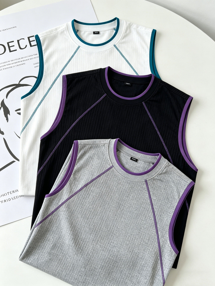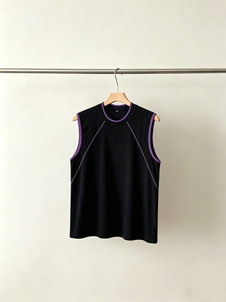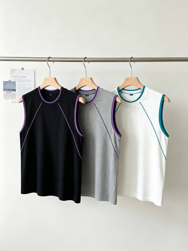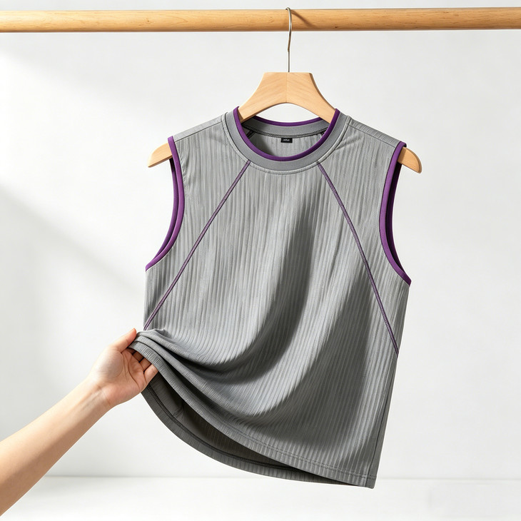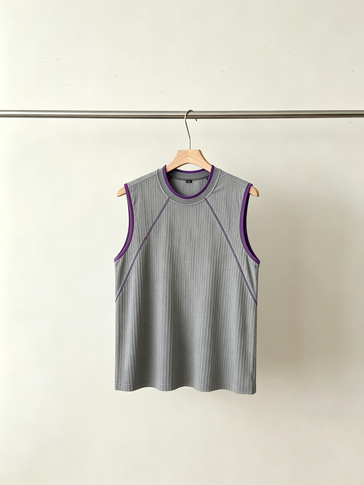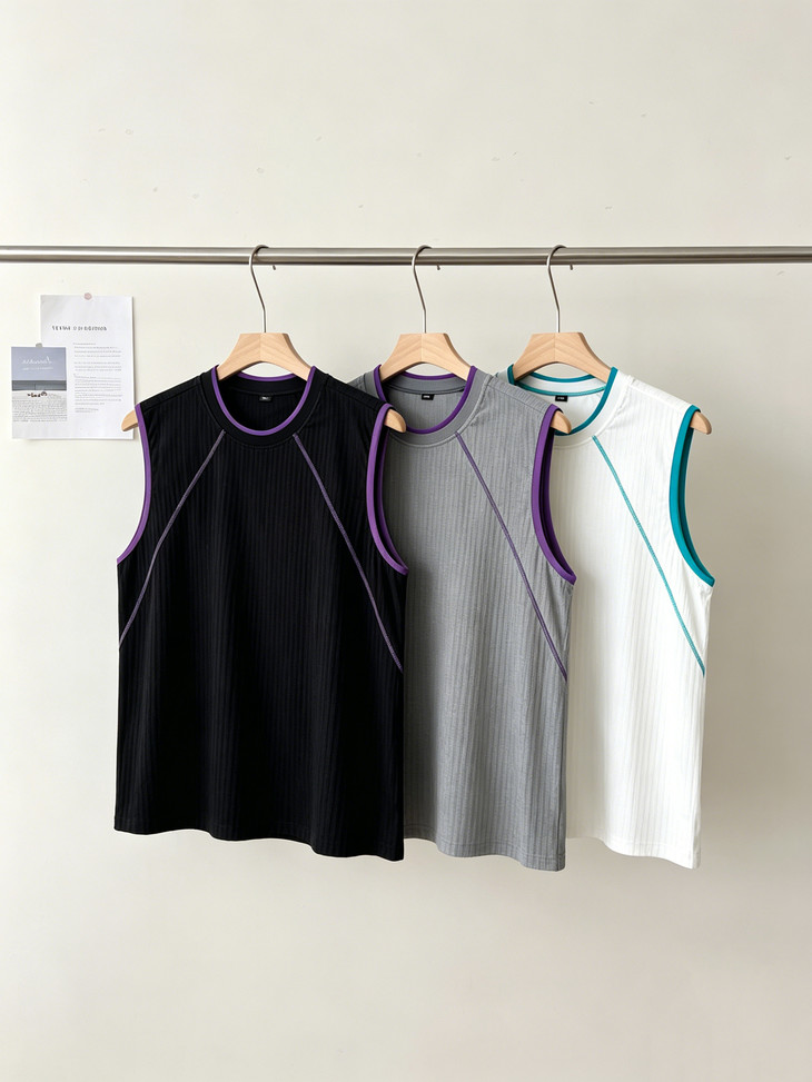 【Schenvega情侣 山系坑条肌理透气宽松背心A46-JS6118】|夏日穿搭的松弛感天花板✨ ✅ 坑条肌理,质感拉满 竖坑条面料自带垂坠感,不仅显瘦藏肉