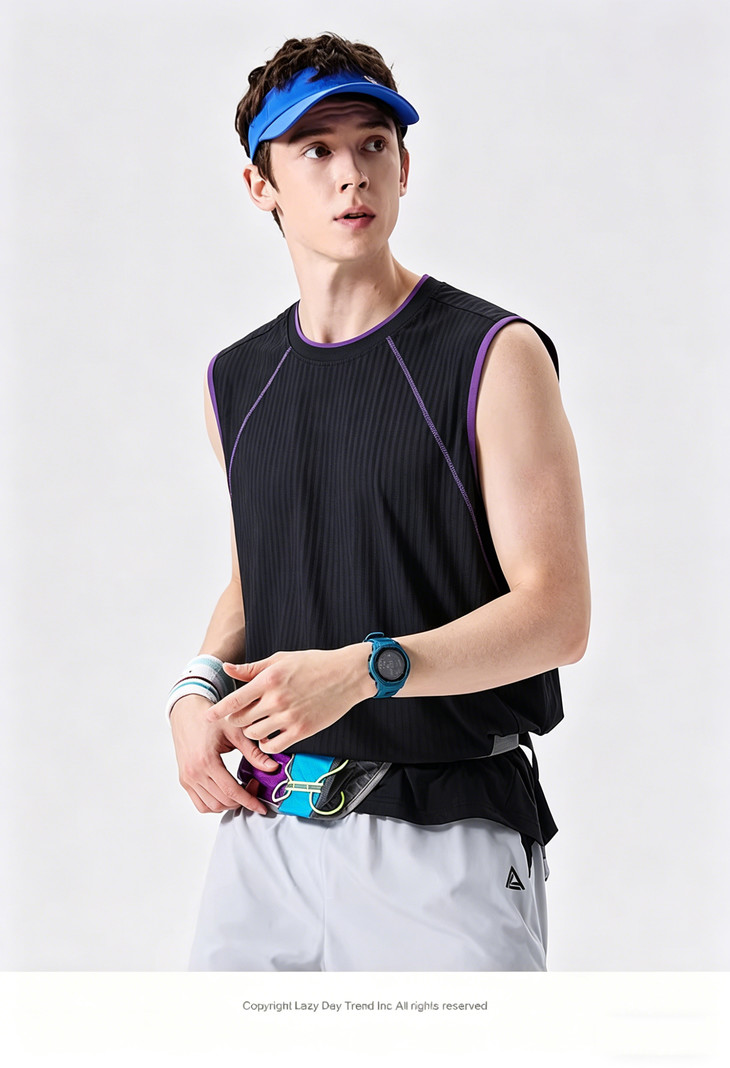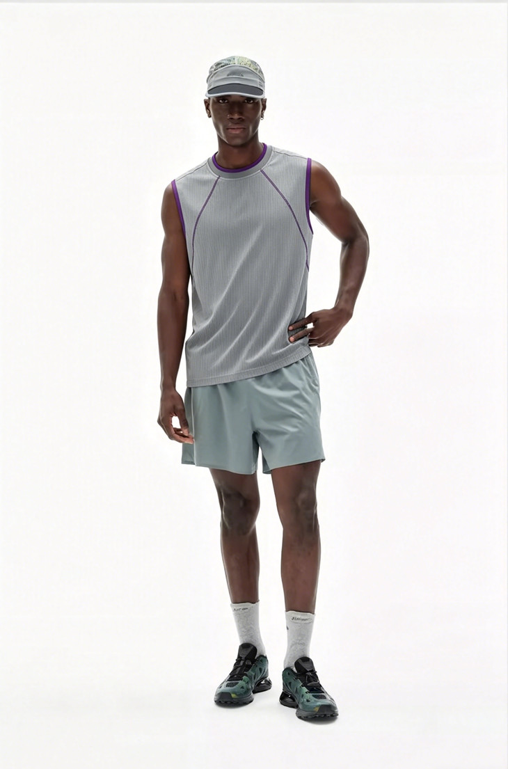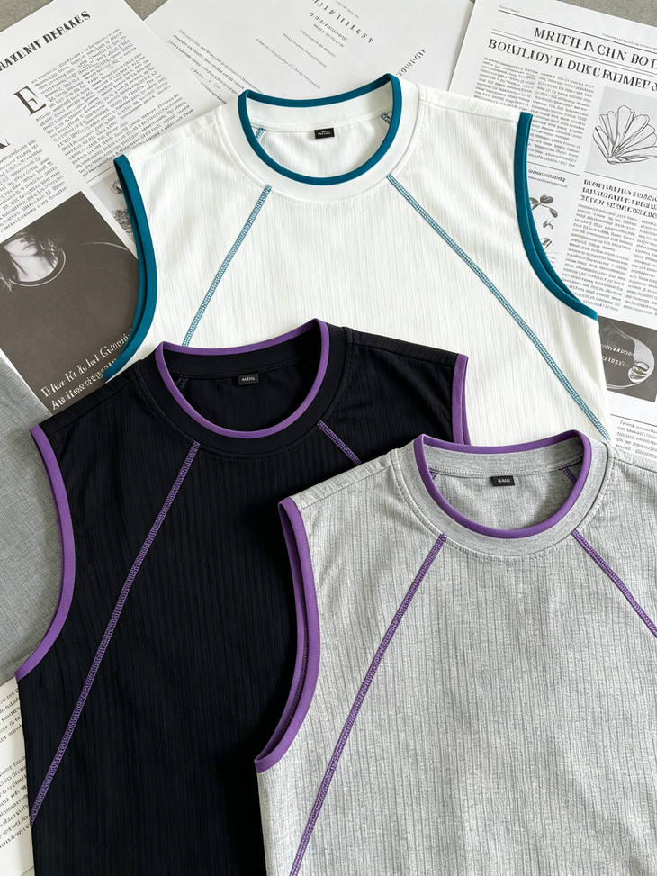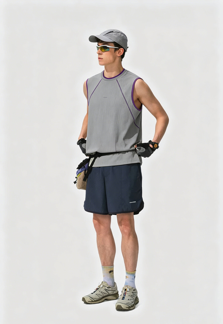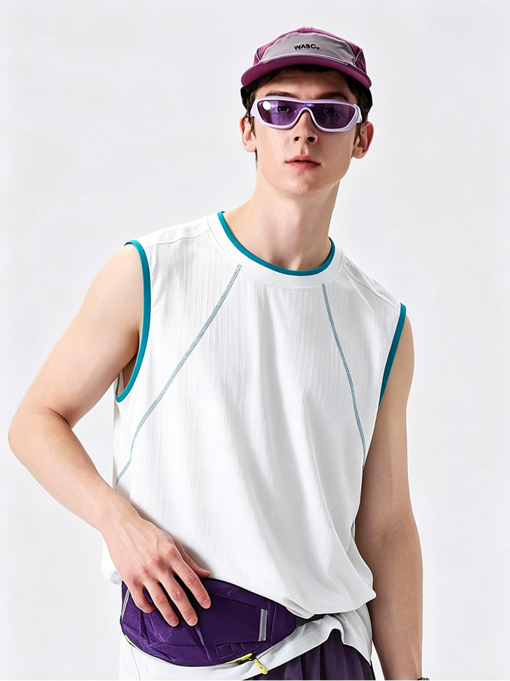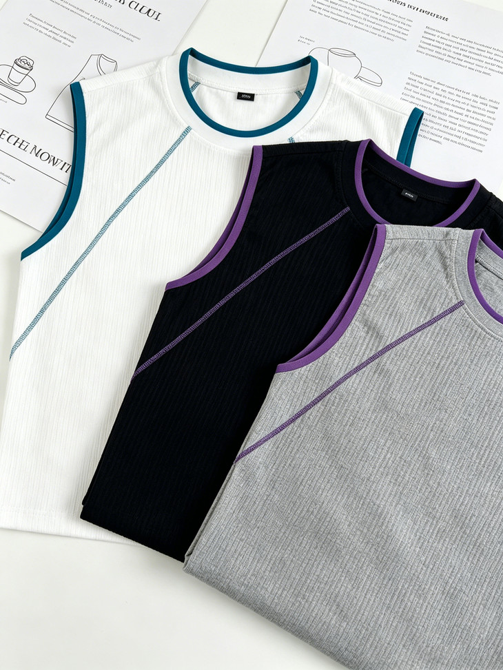 【Schenvega情侣 山系坑条肌理透气宽松背心A46-JS6118】|夏日穿搭的松弛感天花板✨ ✅ 坑条肌理,质感拉满 竖坑条面料自带垂坠感,不仅显瘦藏肉