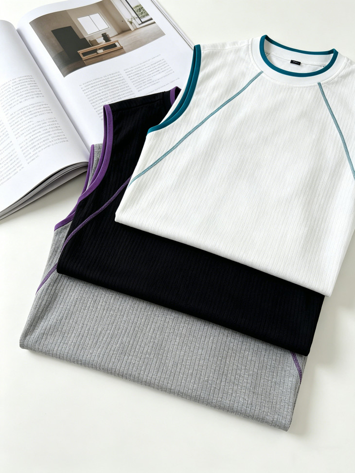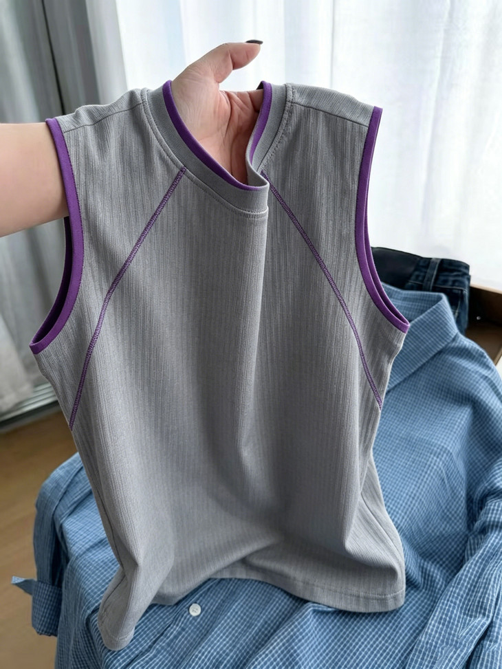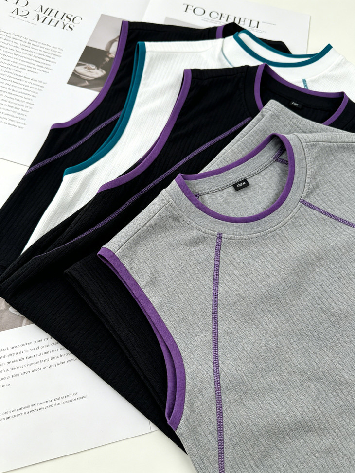 ✅ 撞色设计 秒变穿搭亮点领口 + 袖笼撞色包边,紫灰 / 紫黑 / 白蓝三色可选,基础款秒变吸睛款,不挑肤色不挑风格,山系、citywalk、日常通勤都能搭