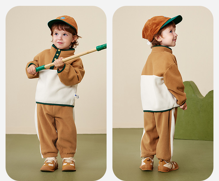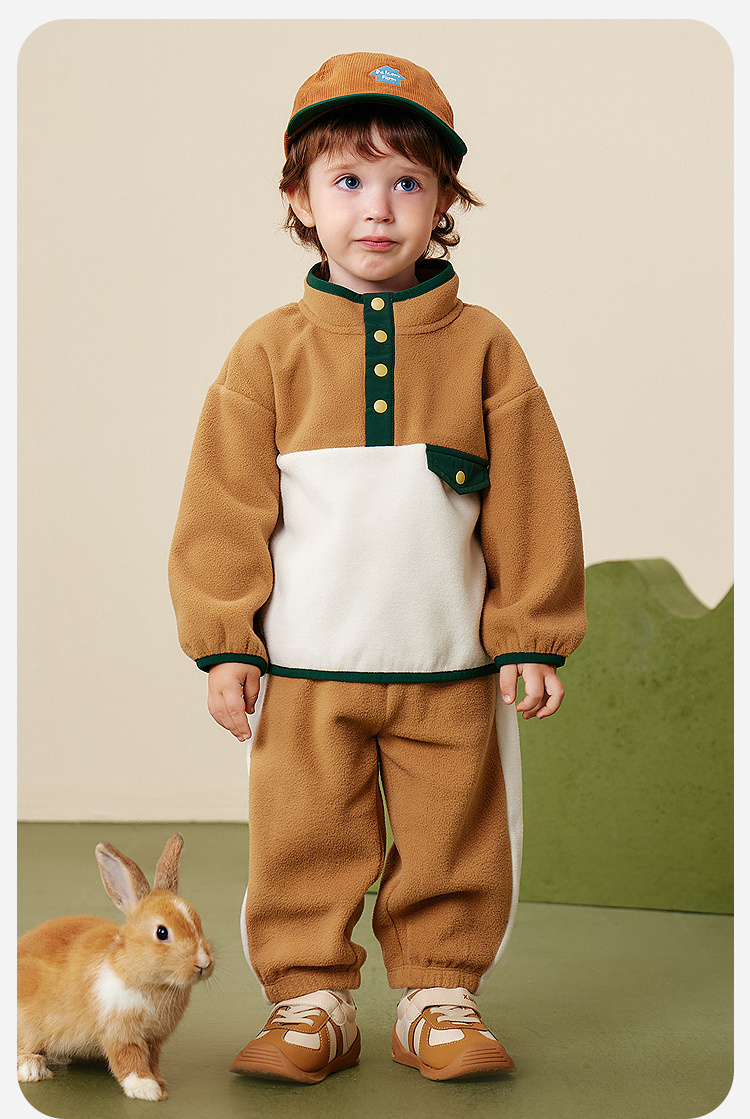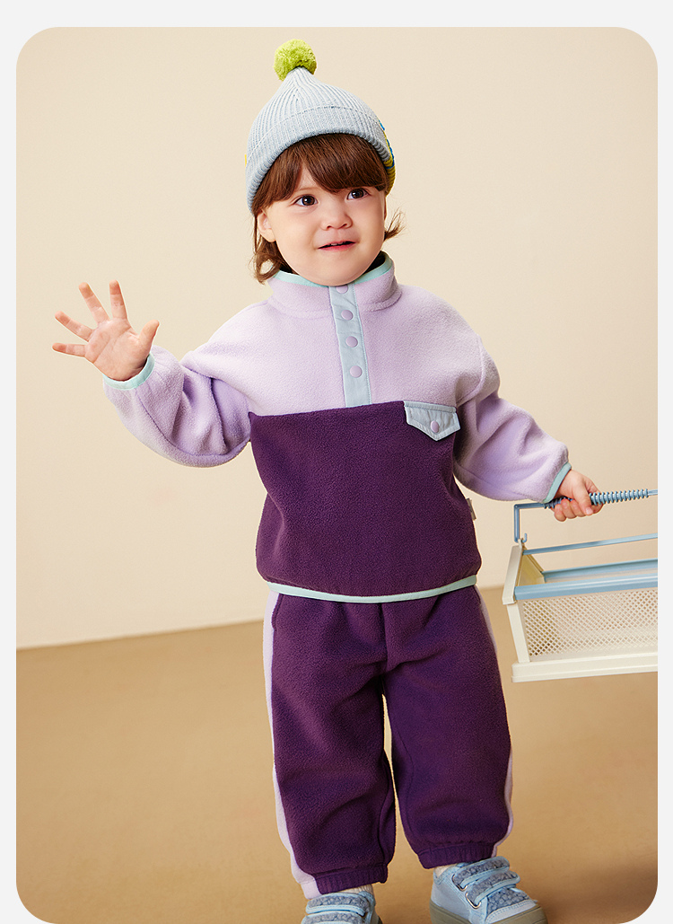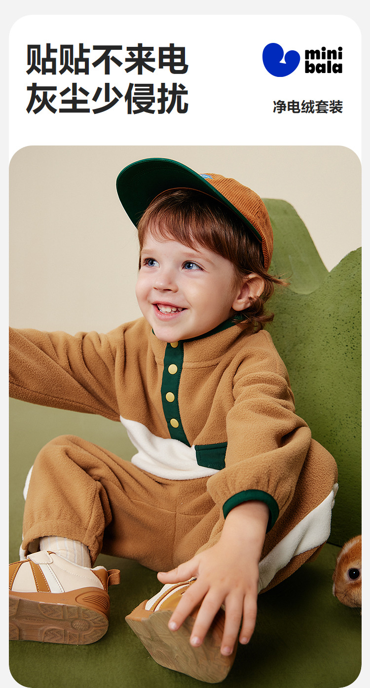 [净电绒]迷你巴拉男女童宝宝套装抗静电毛绒上衣长裤两件套冬