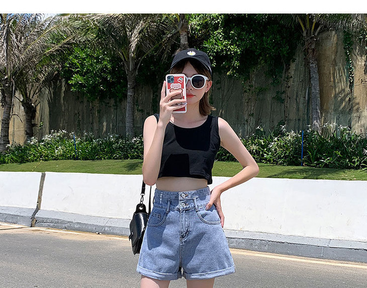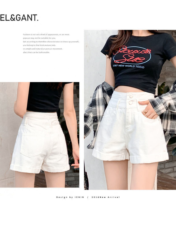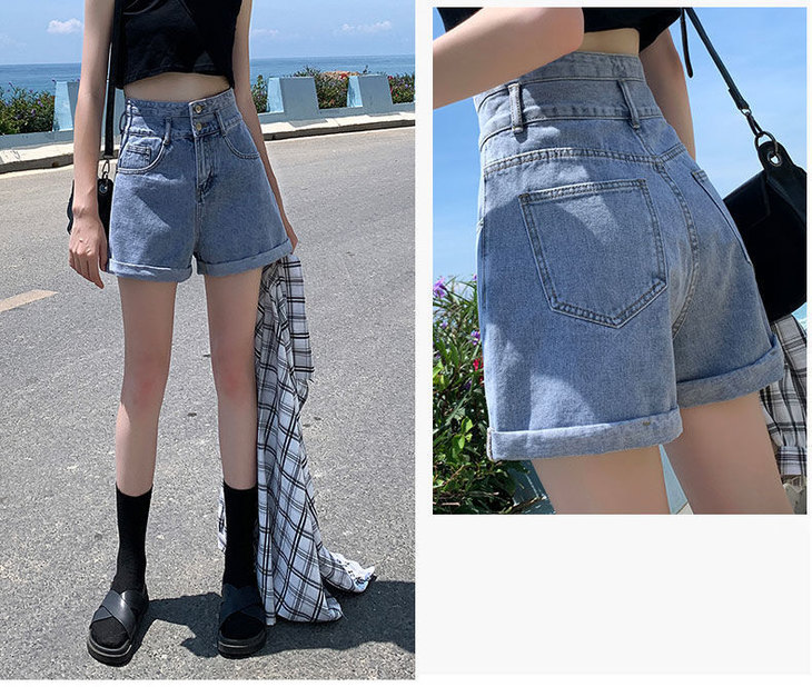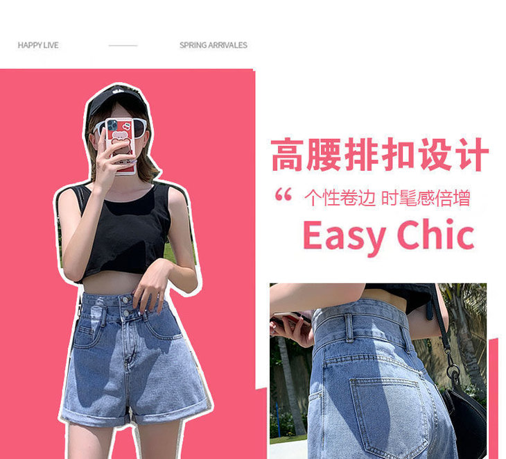 【穿出大长腿】高腰牛仔短裤女新款夏装洗水复古卷边牛仔短裤女