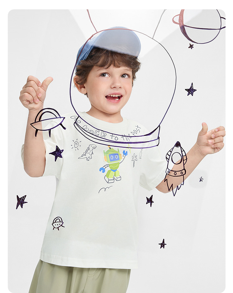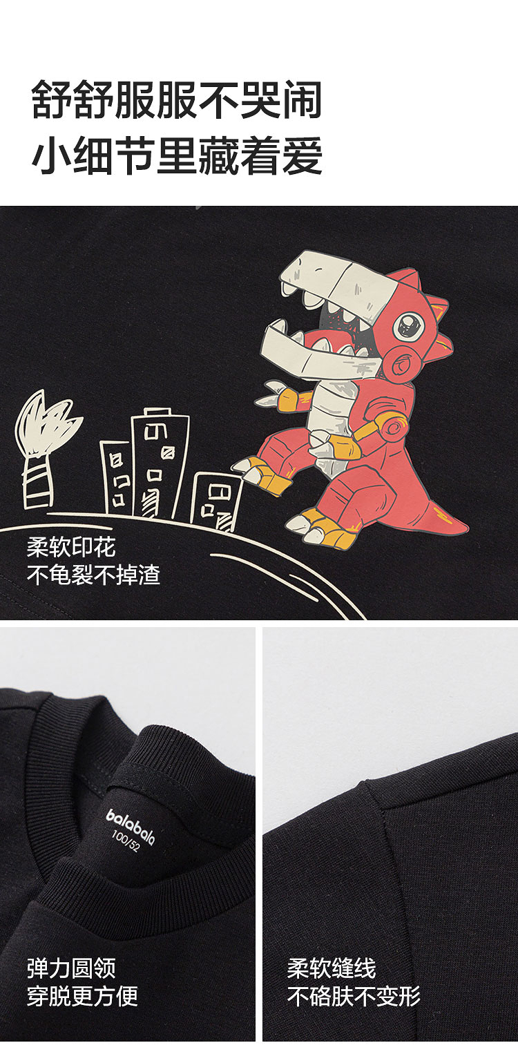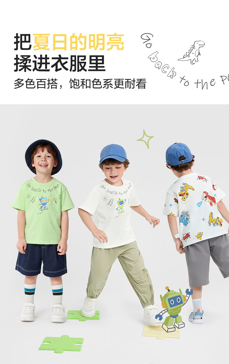 【balaOne】巴拉巴拉宝宝短袖t恤男童2026新夏装手绘插画印花上衣