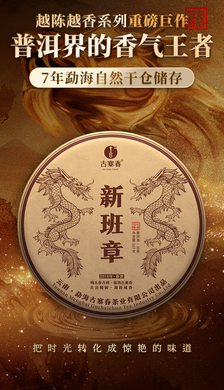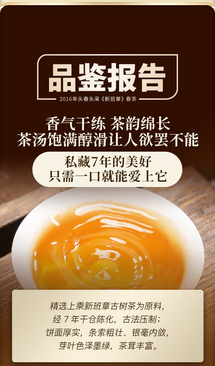 【越陈越香 新班章】精选2016年头春古树茶; 8年干仓陈化,茶中的上上品,性价比巅峰!云南勐海茶区普洱茶生茶,每饼357克 , 拍5发6 拍10发12