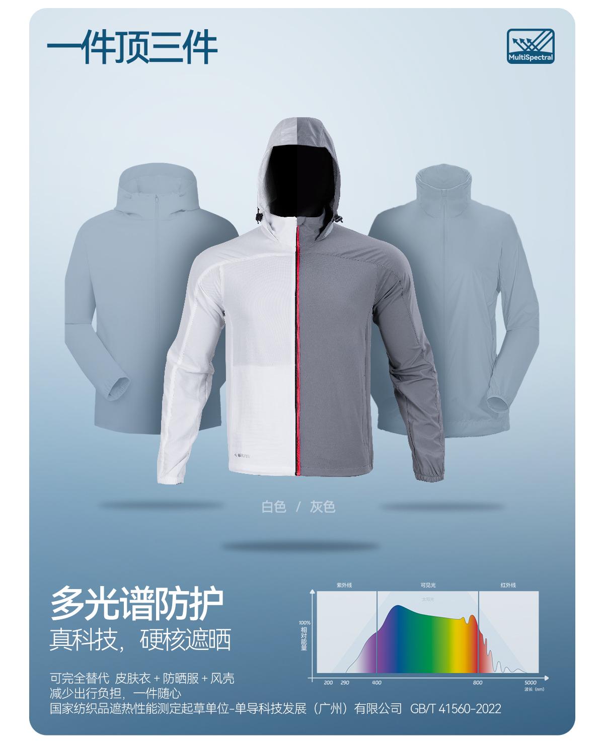 单导多光谱防晒三合一遮热服单向排汗连帽立领外套透气速干防泼溅