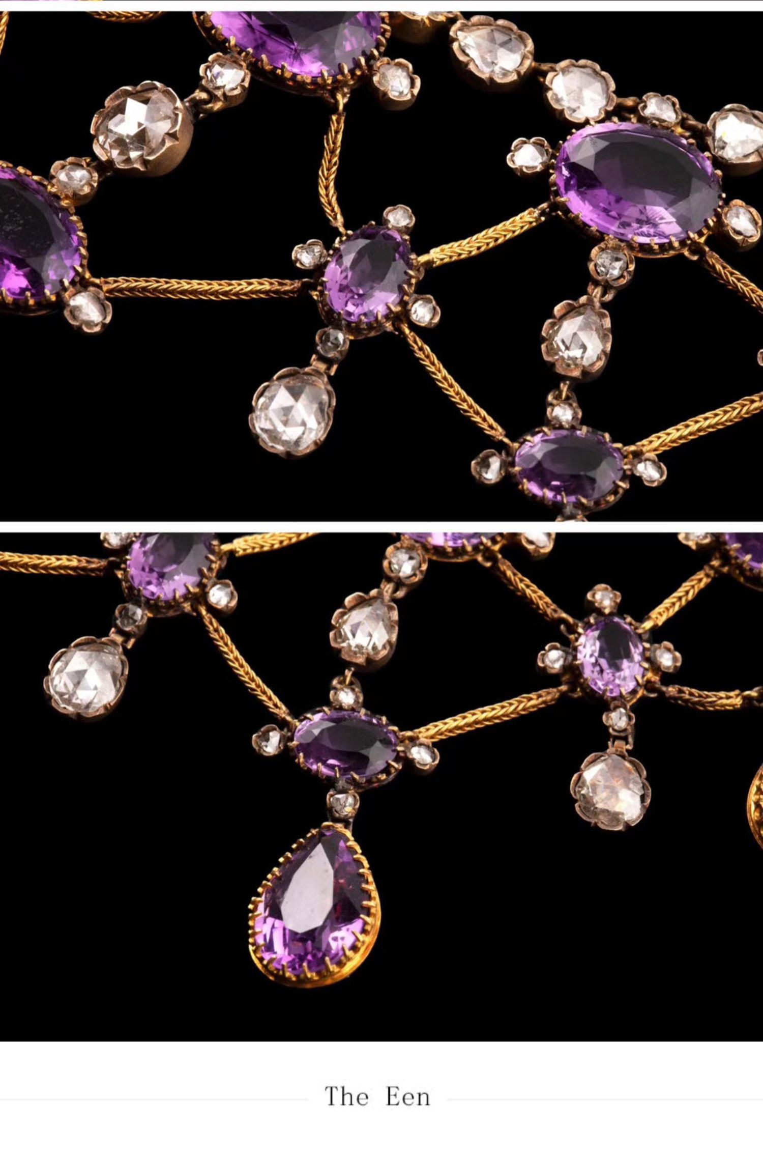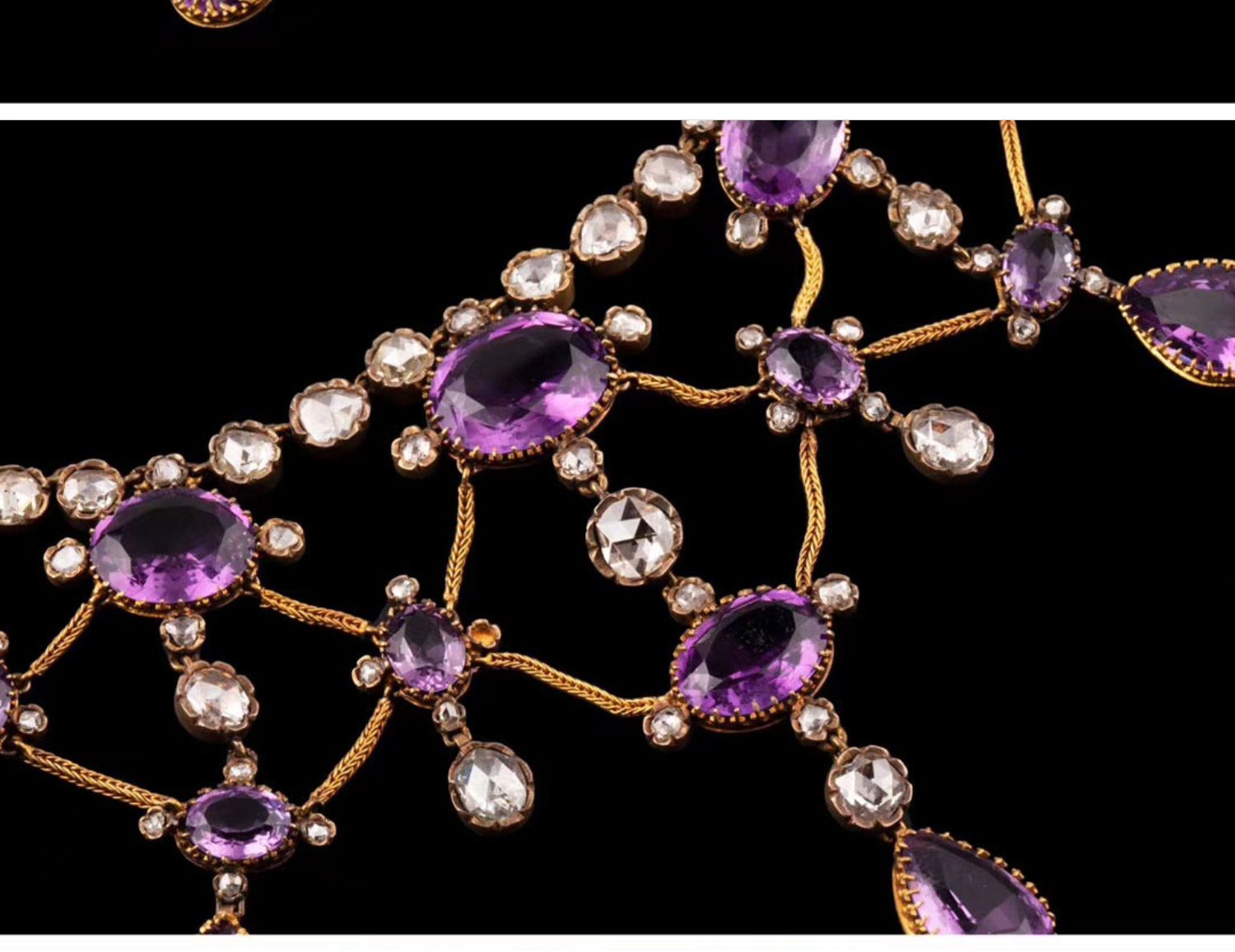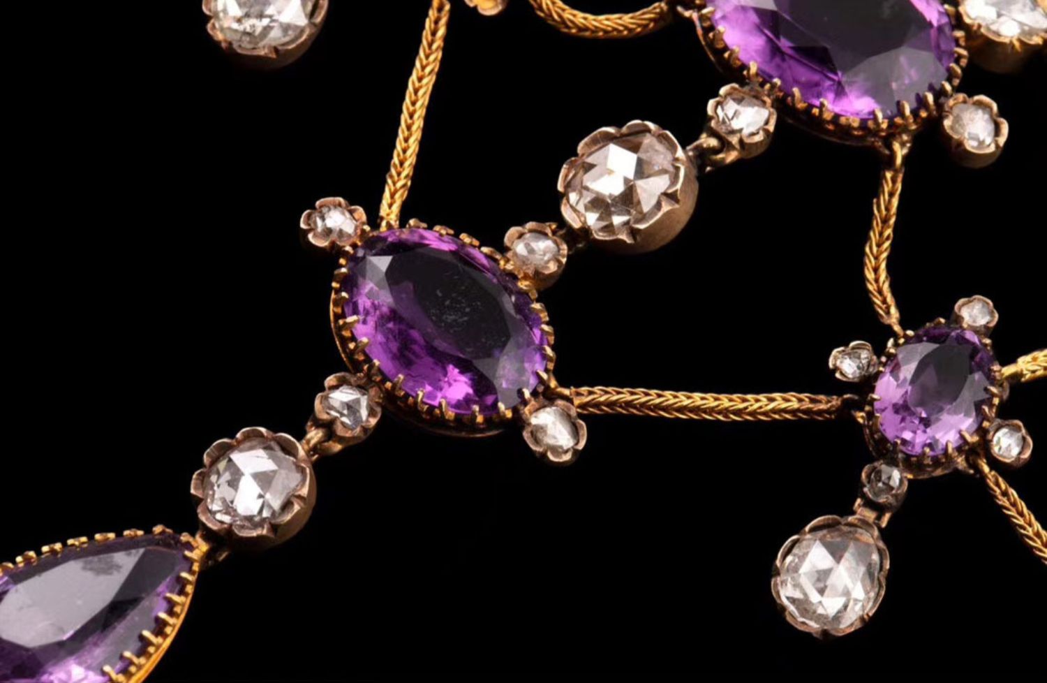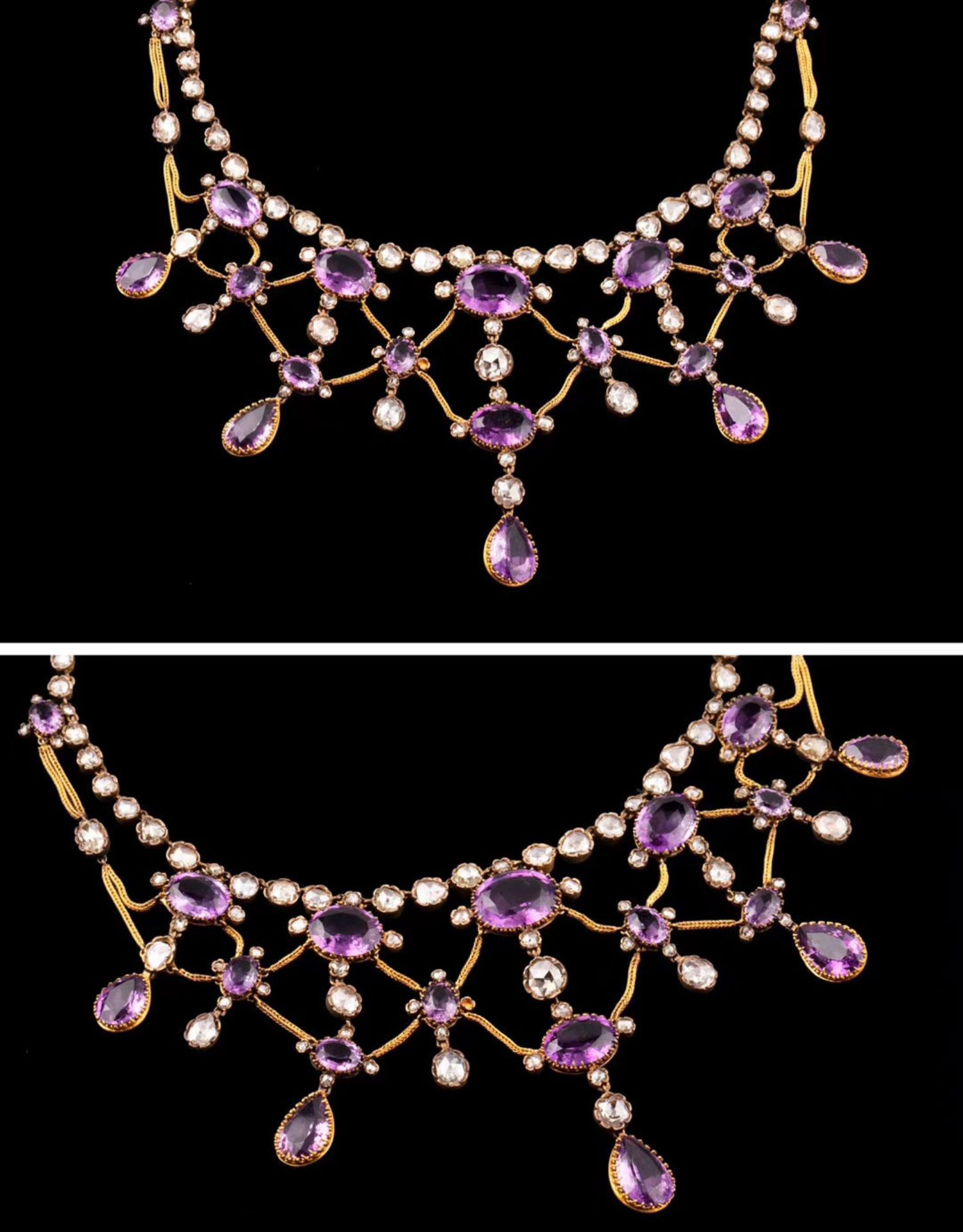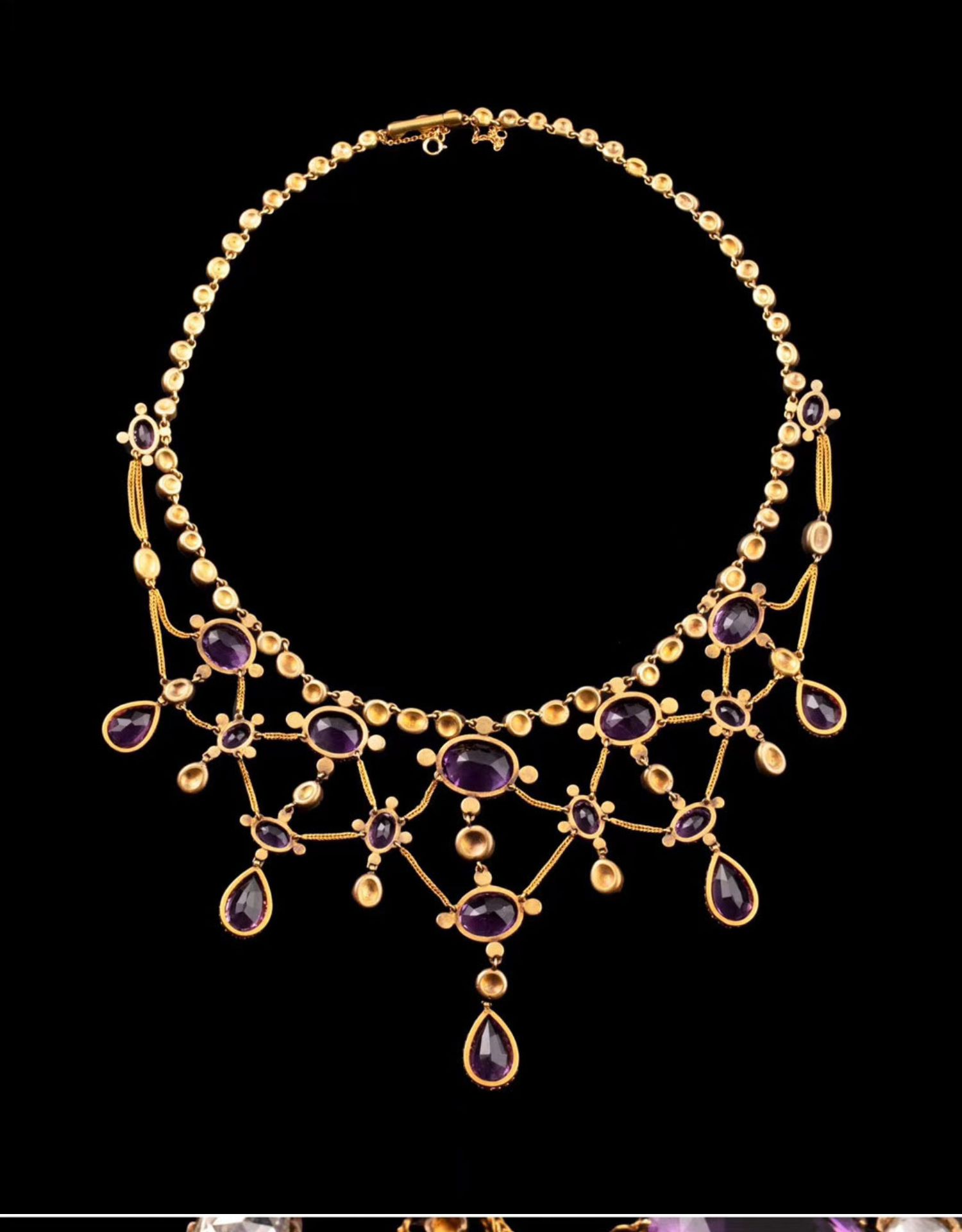 独角鹿西洋古董首饰法国出品18k金镶嵌紫水晶钻石垂花帷幔项链