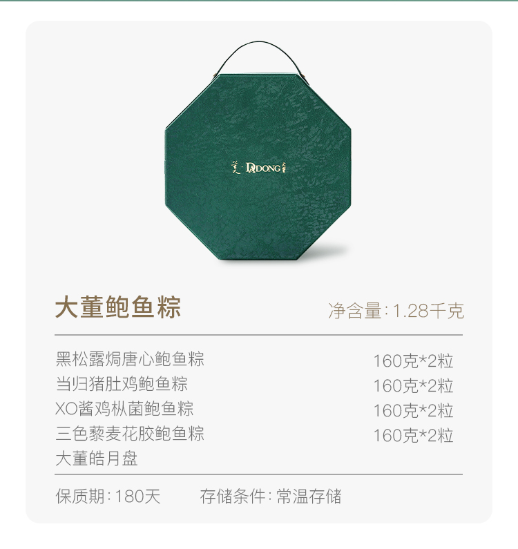 大董鲍鱼粽 1.28kg 4种口味 共八粒 含门店同款皓月盘