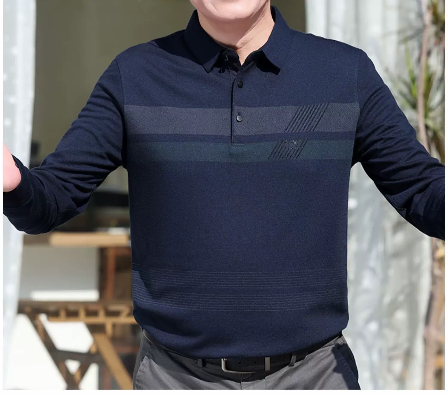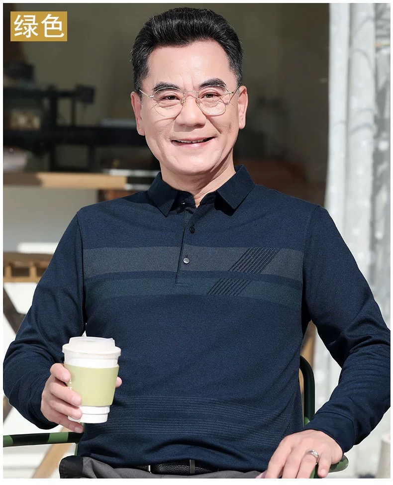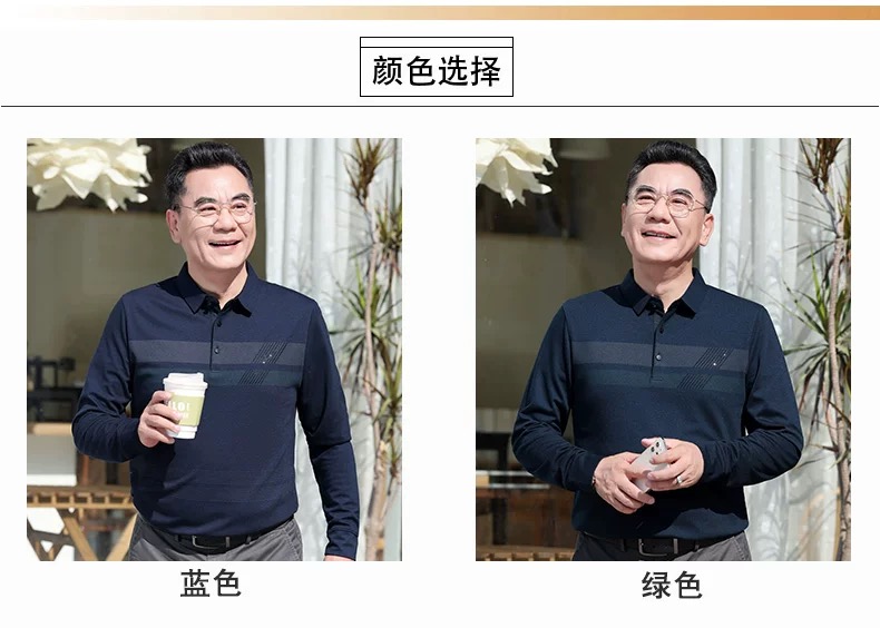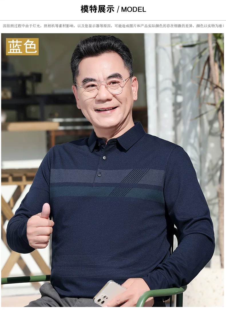 【YW】无忧购“爸气来袭”简约休闲百搭长袖宽松条纹polo衫682(截单后3-5天发货)