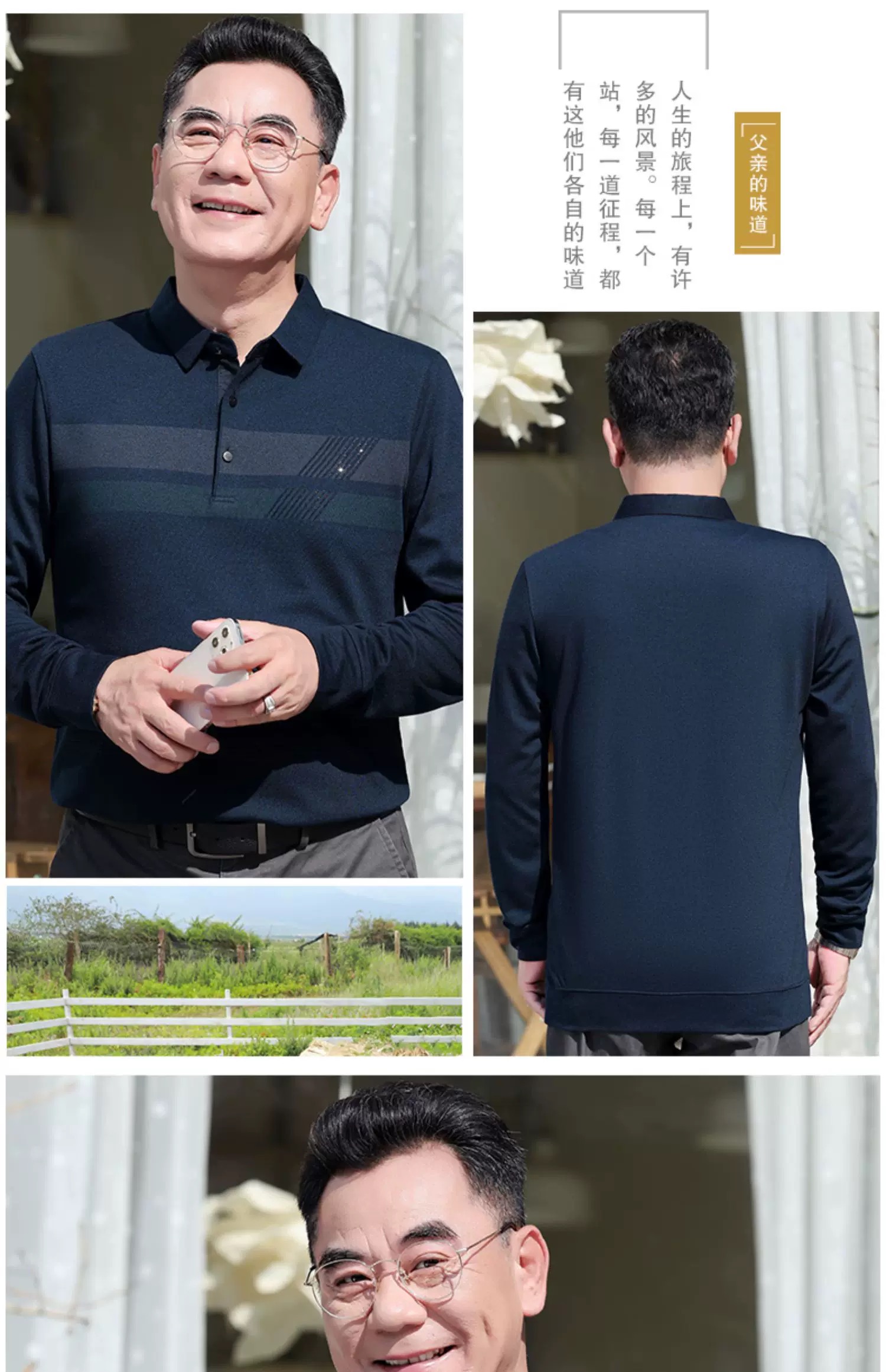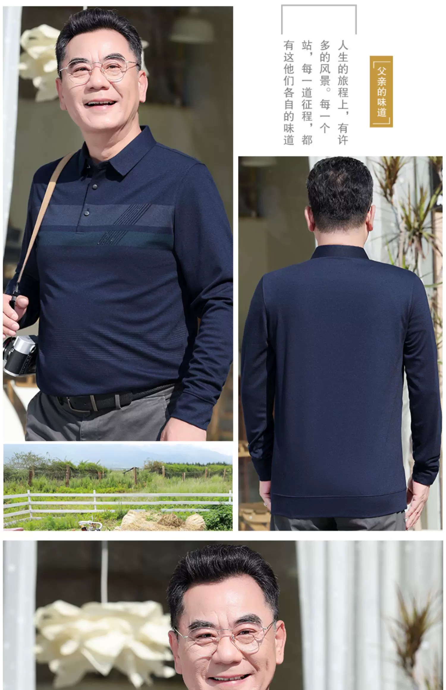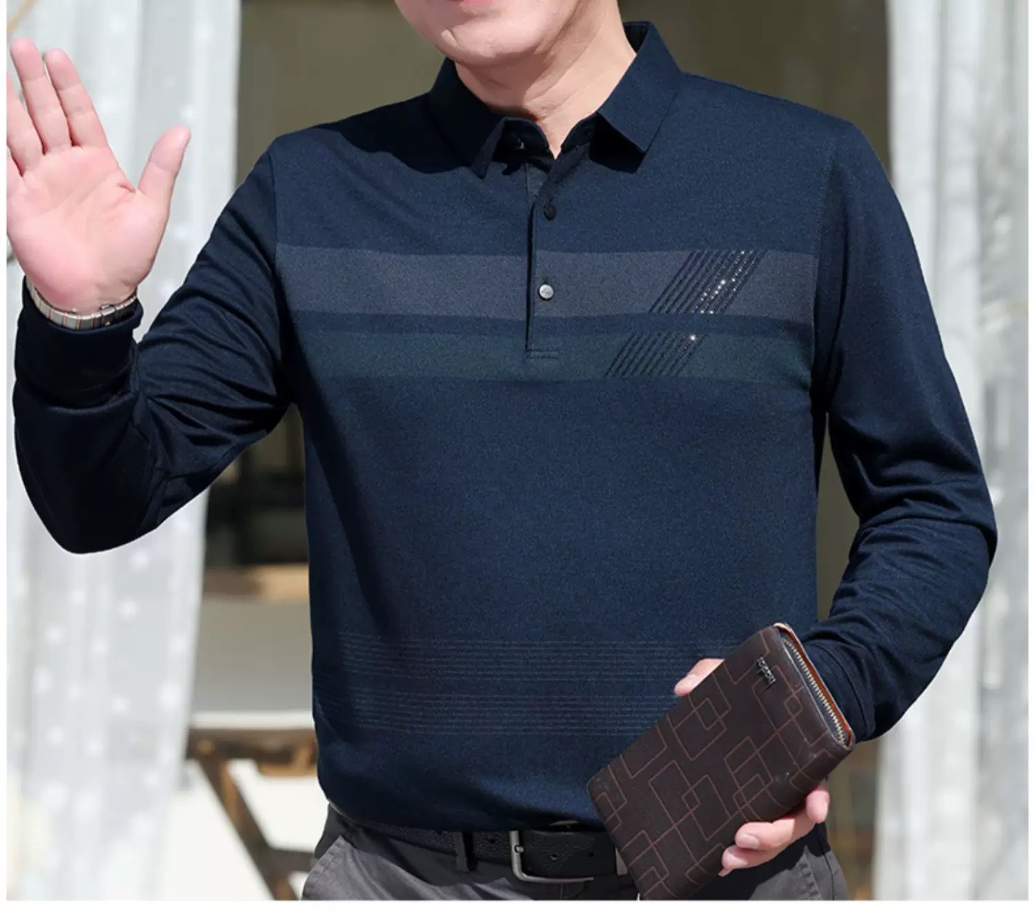 【YW】无忧购“爸气来袭”简约休闲百搭长袖宽松条纹polo衫682(截单后3-5天发货)