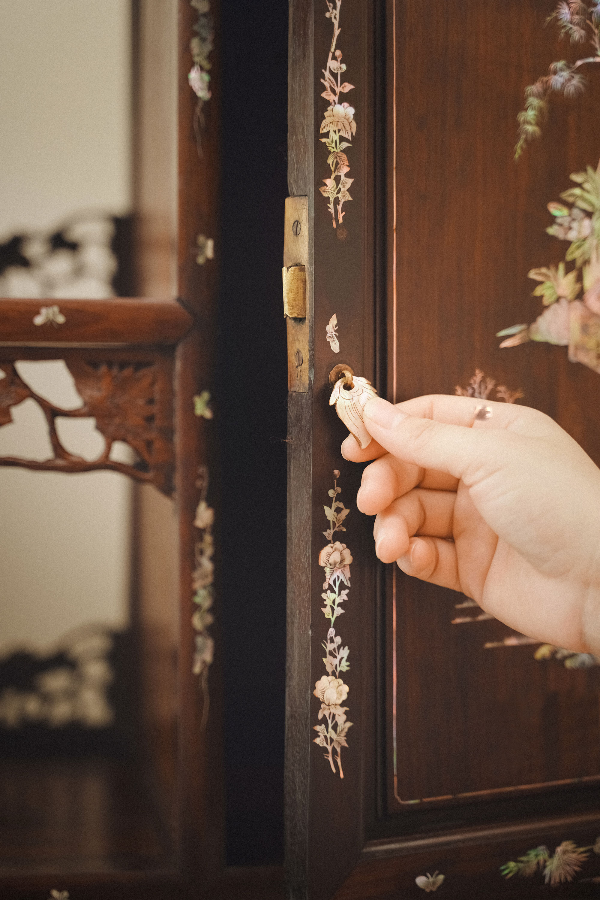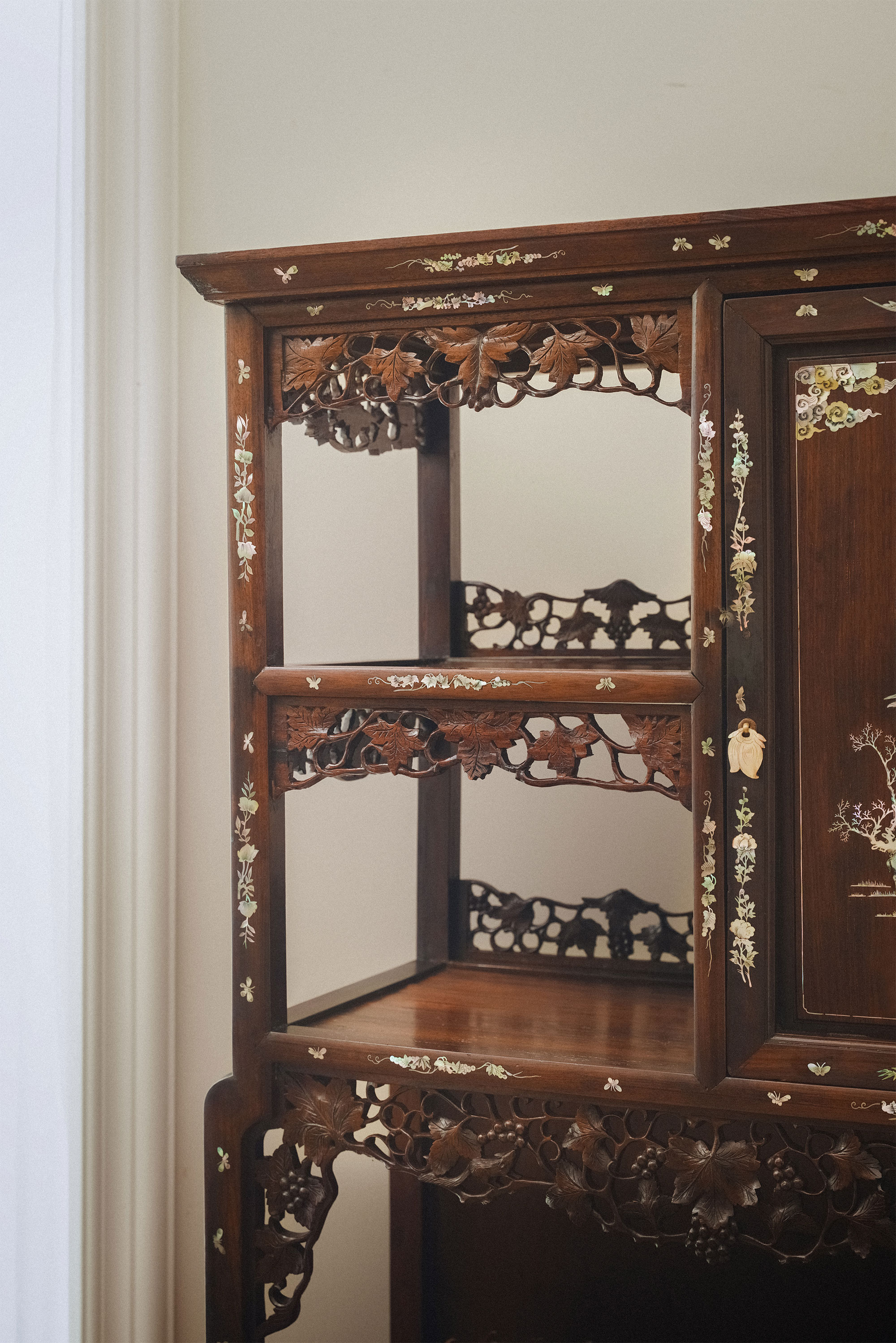 19世纪末亚洲出品传统花鸟人物主题螺钿镶嵌多宝阁