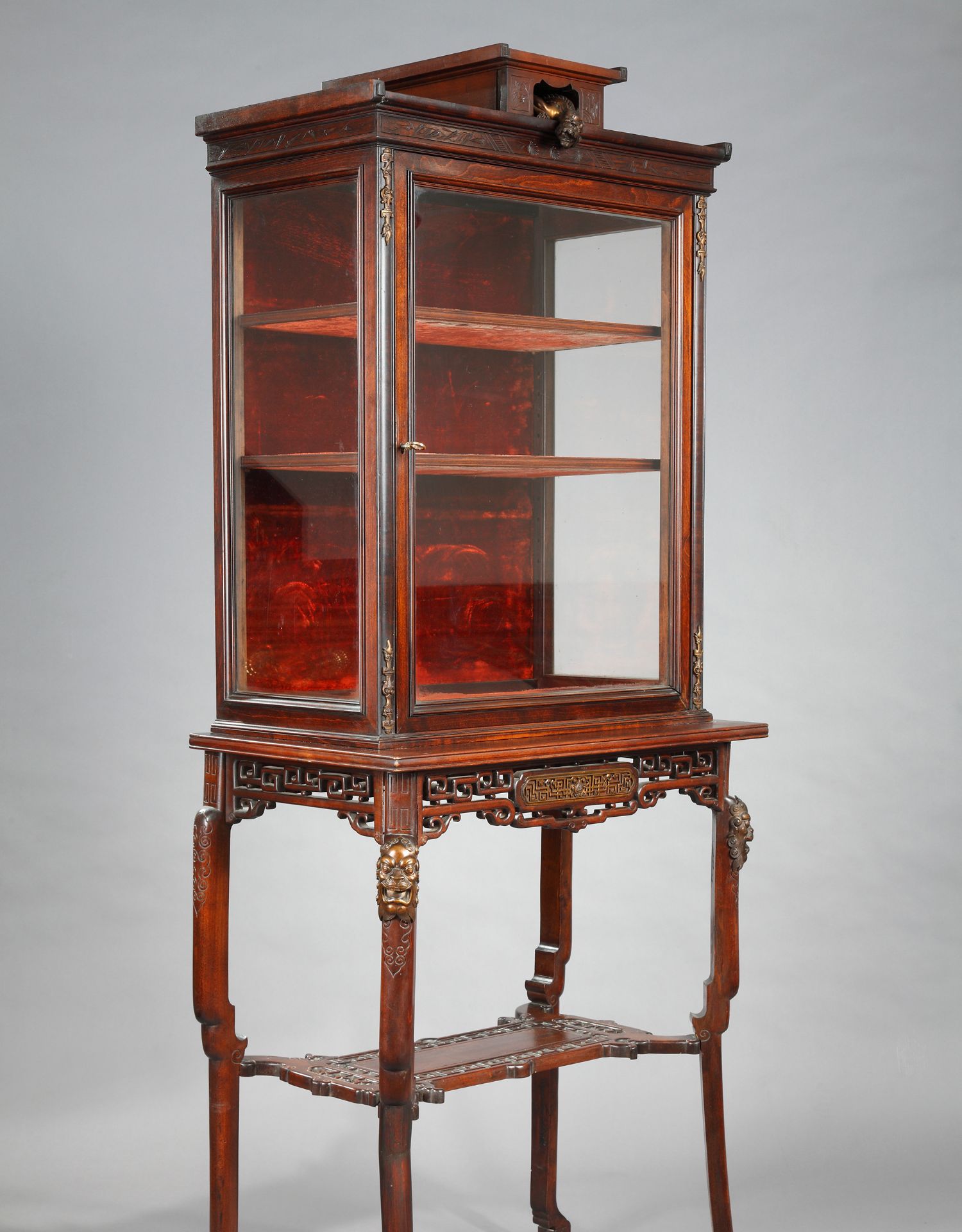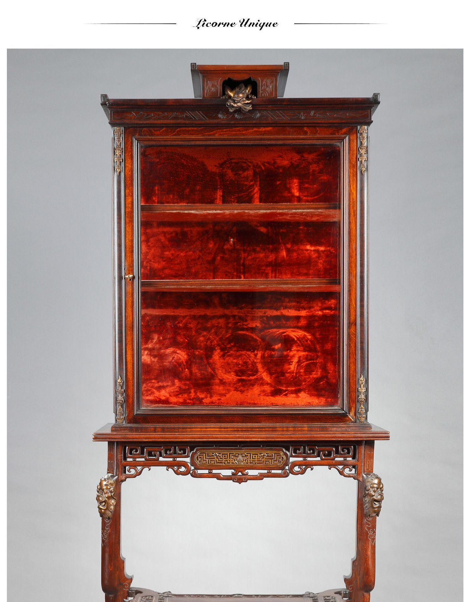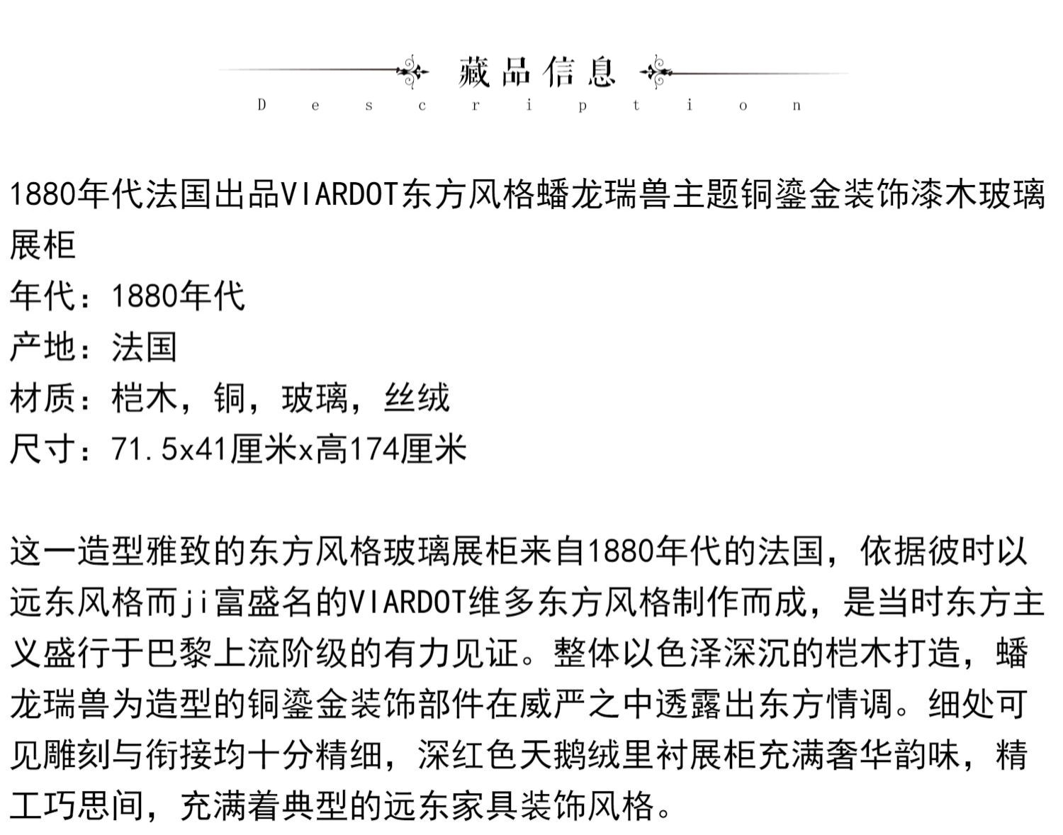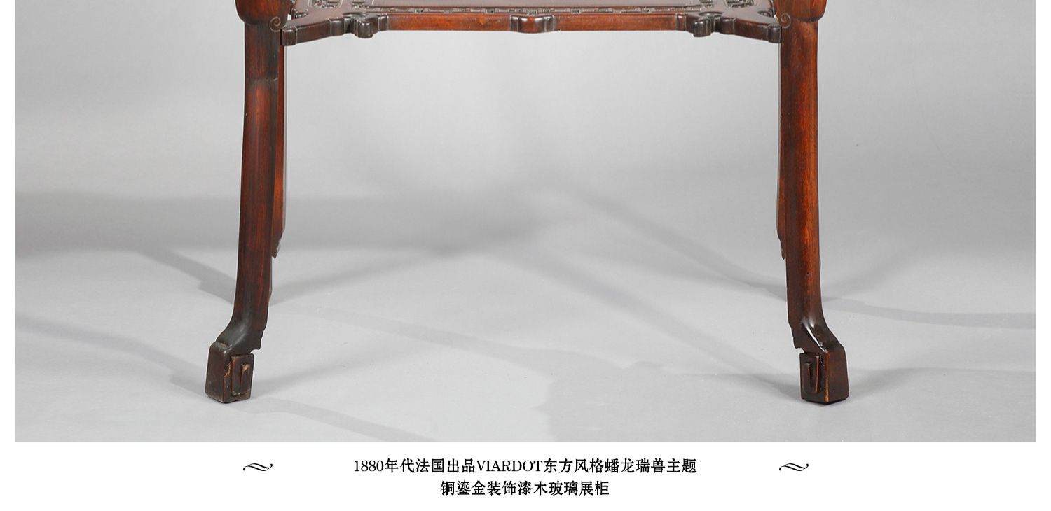 独角鹿西洋古董家具法国VIARDOT东方风蟠龙兽铜鎏金漆木玻璃展柜