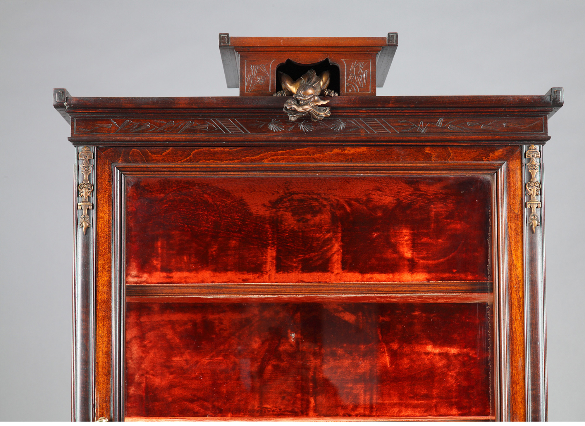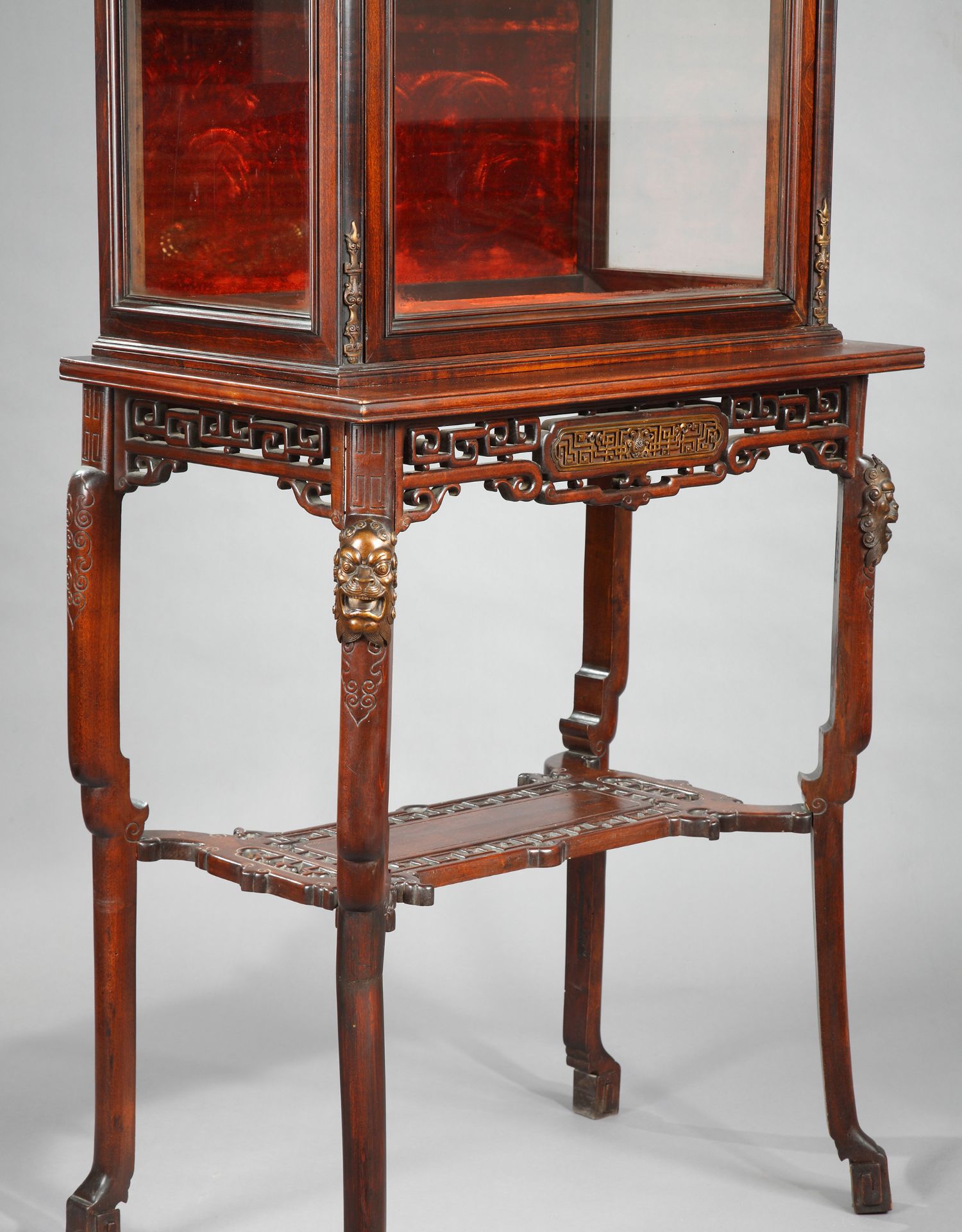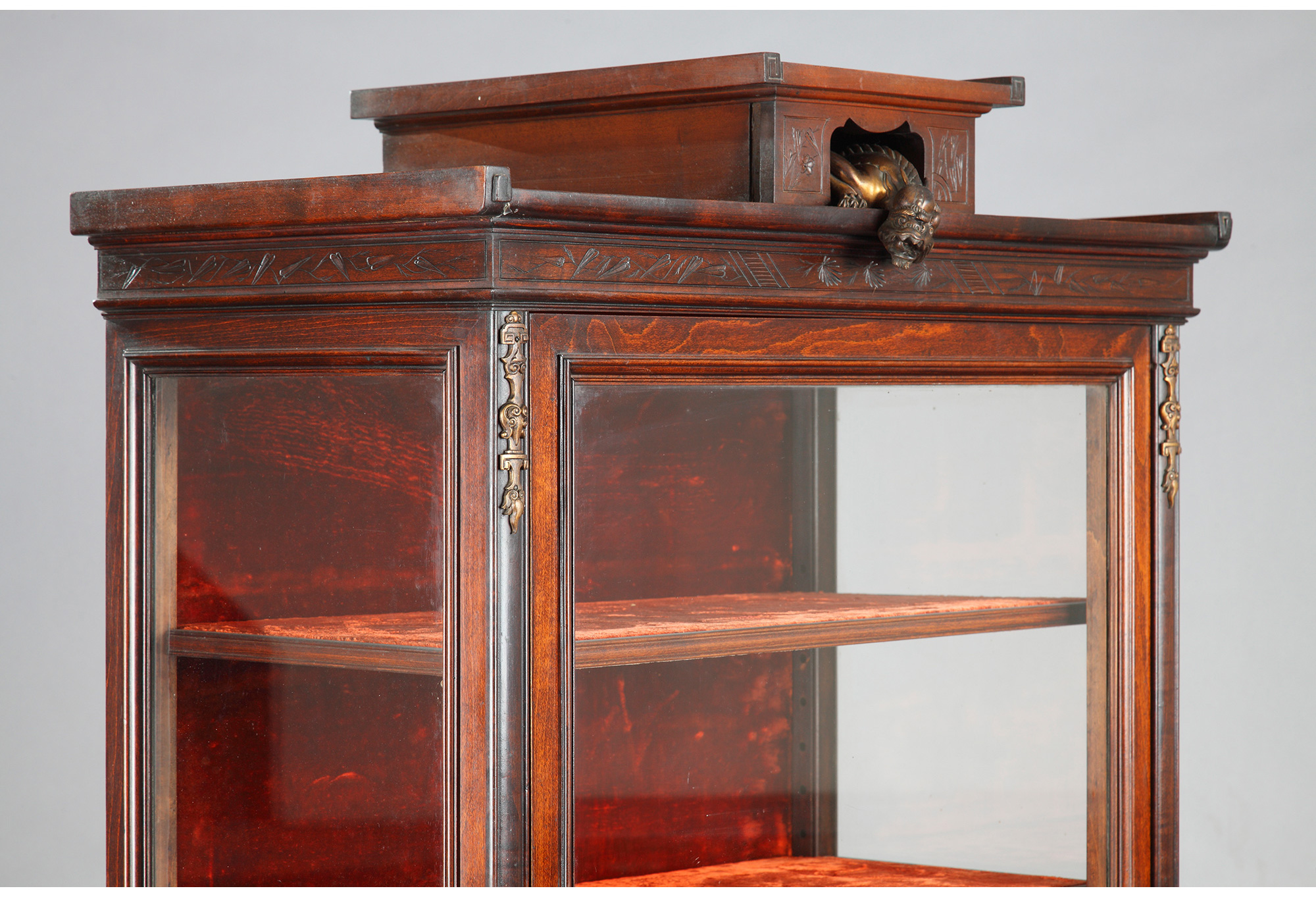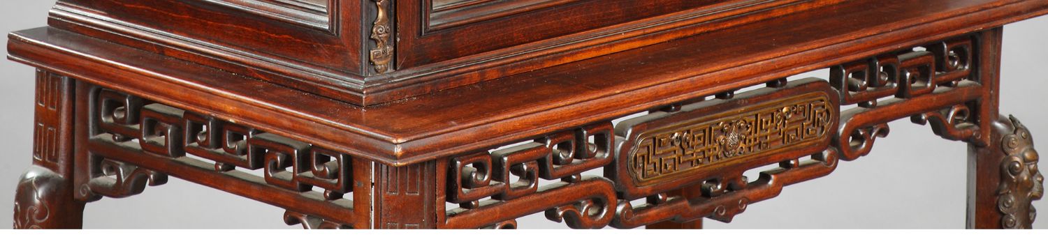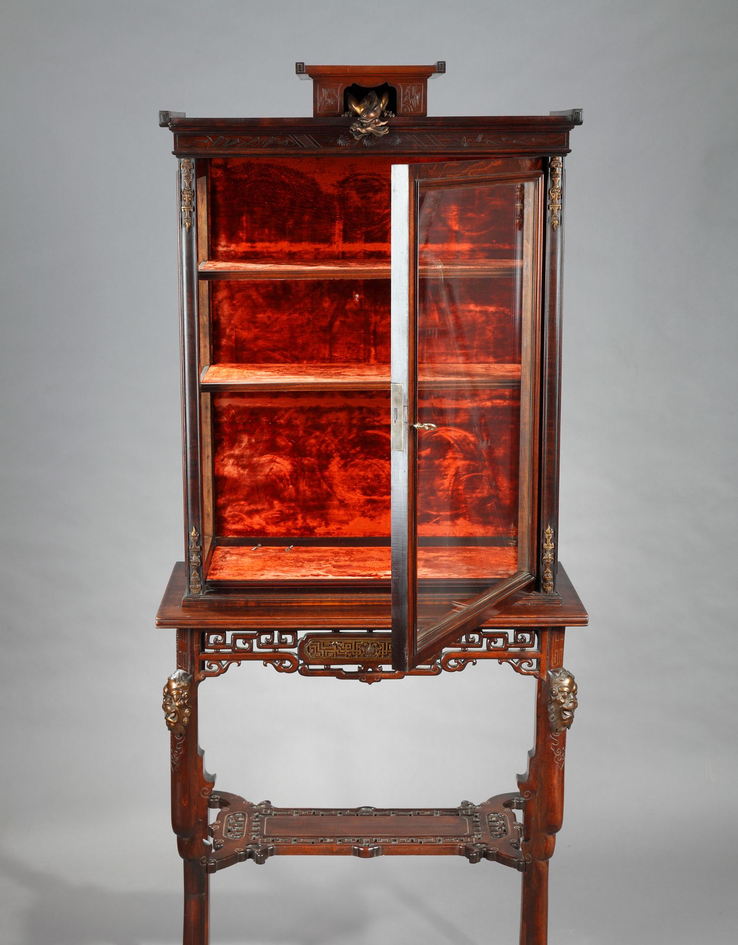 独角鹿西洋古董家具法国VIARDOT东方风蟠龙兽铜鎏金漆木玻璃展柜