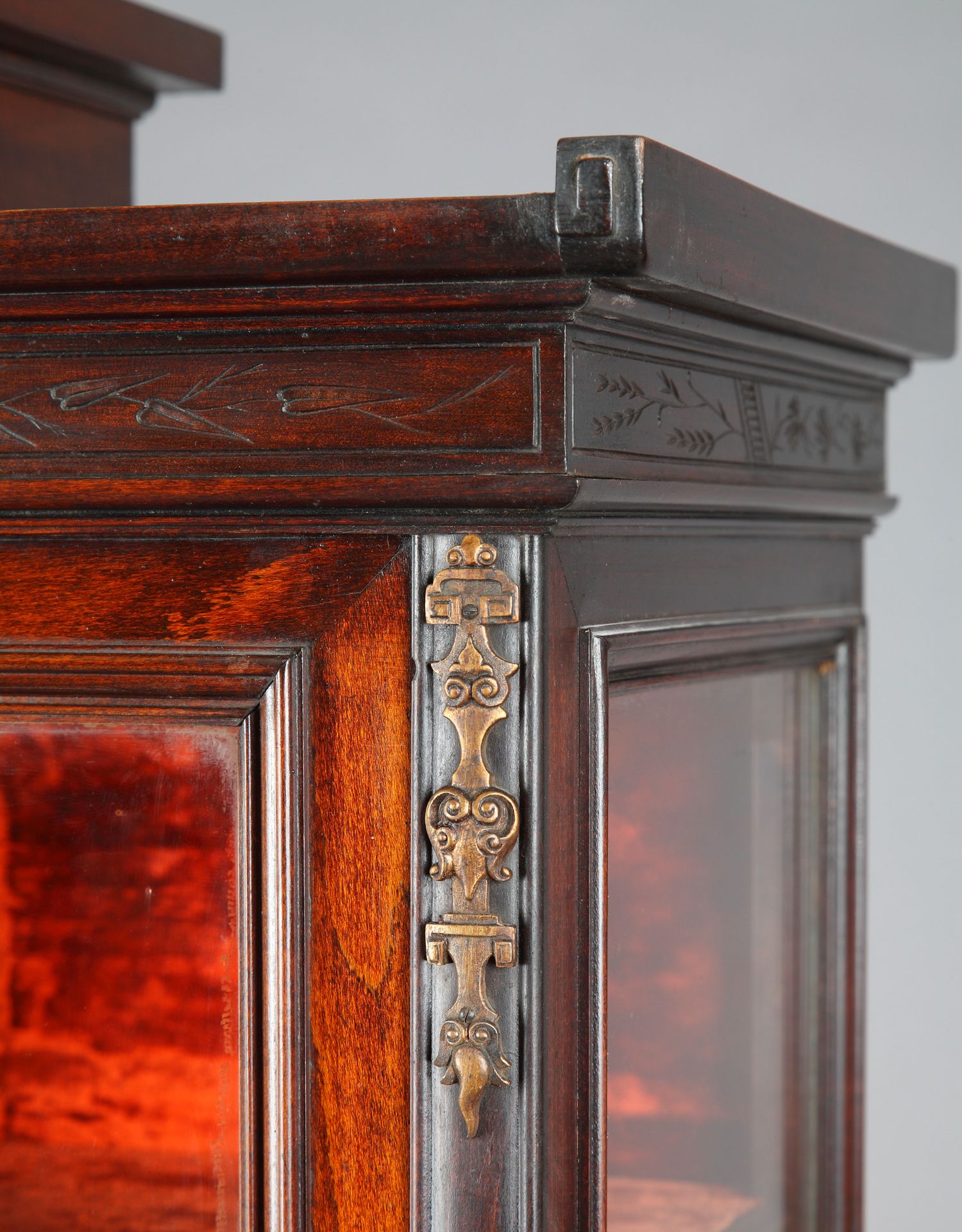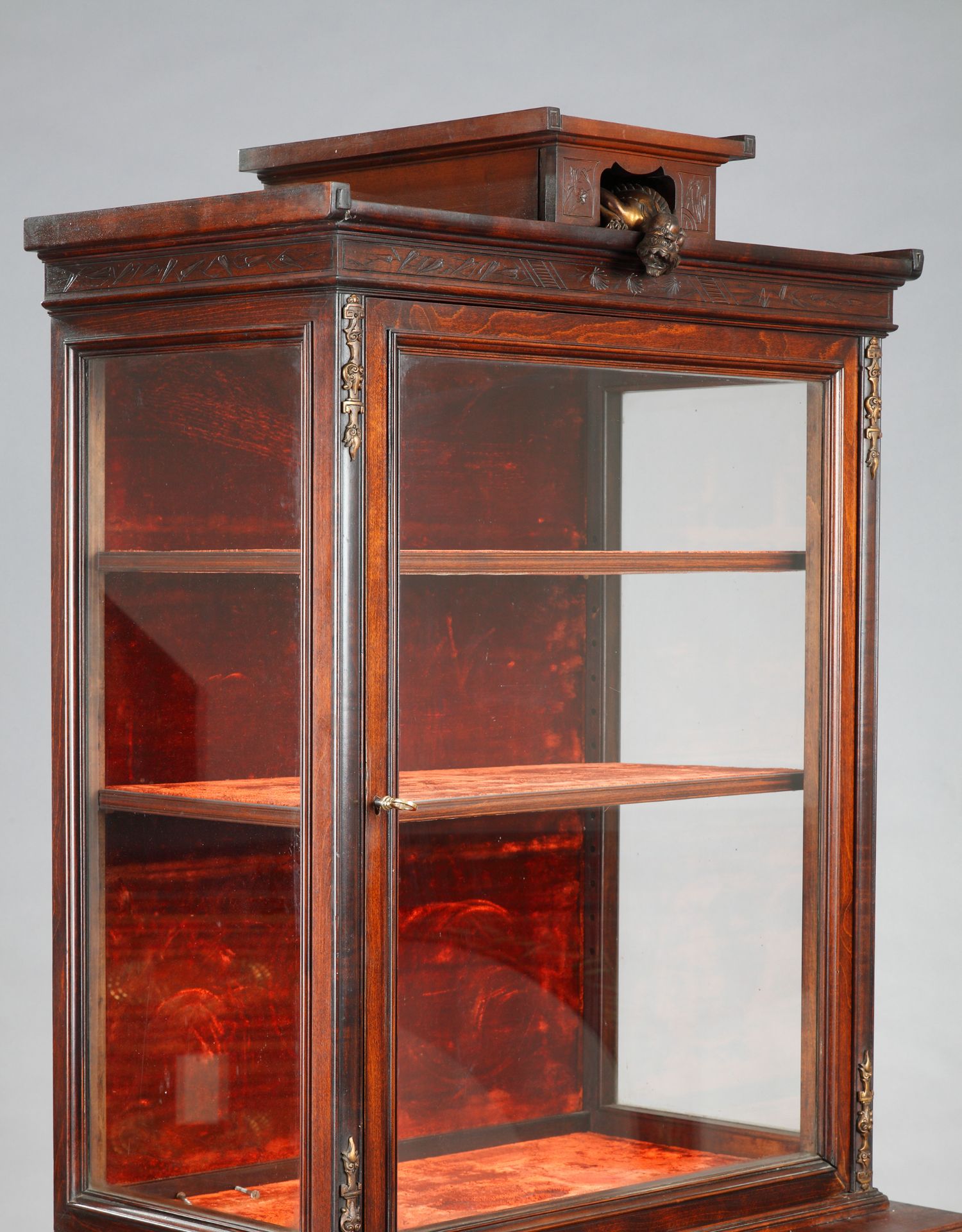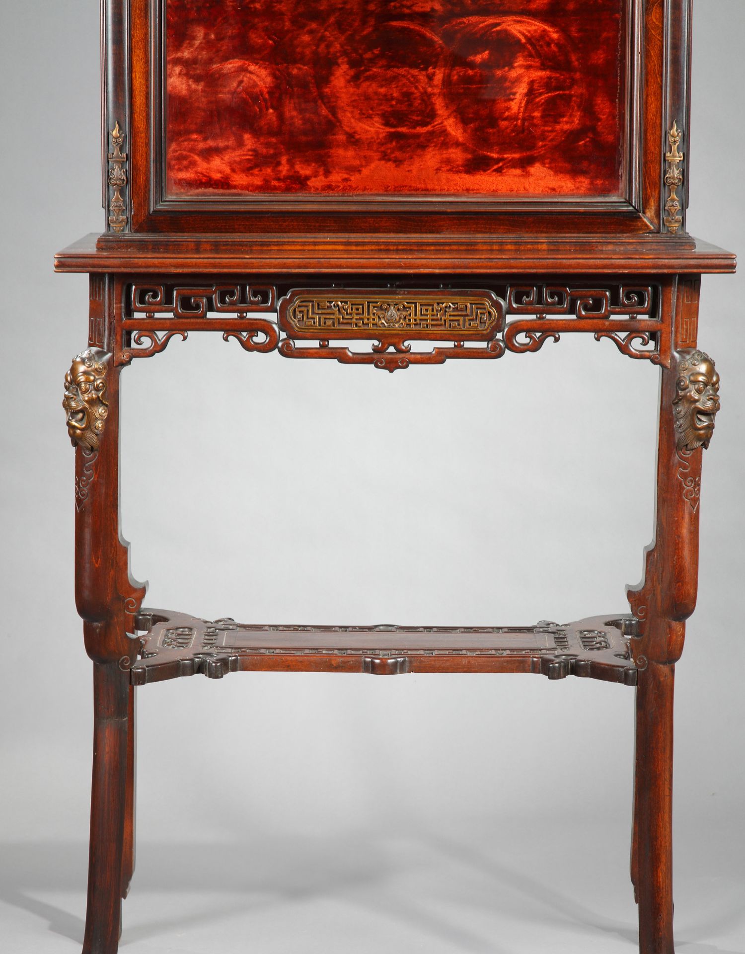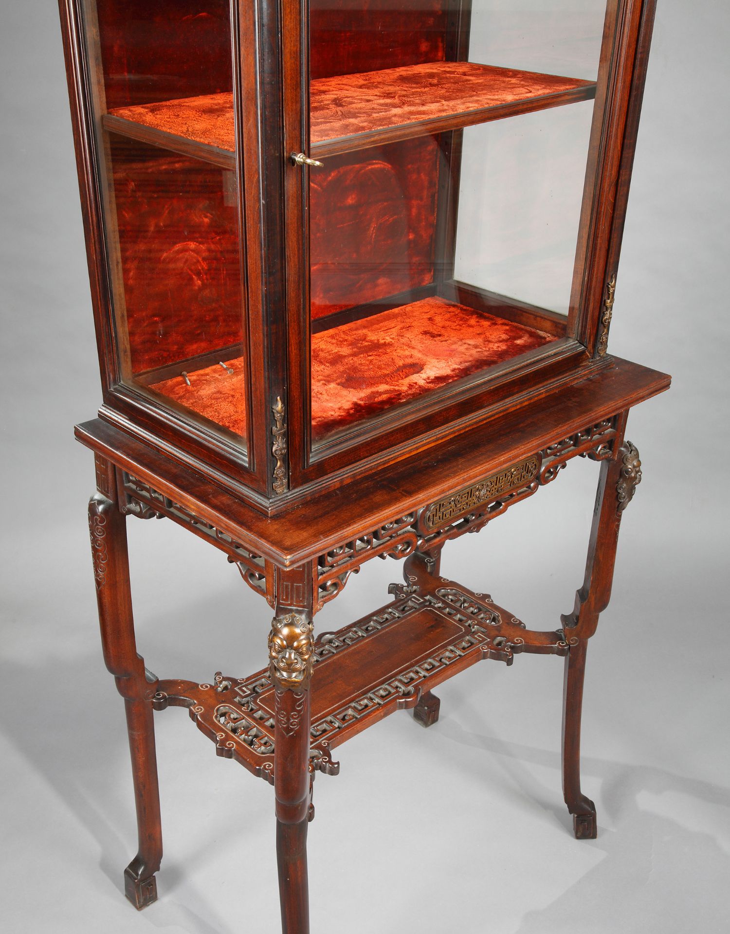 独角鹿西洋古董家具法国VIARDOT东方风蟠龙兽铜鎏金漆木玻璃展柜