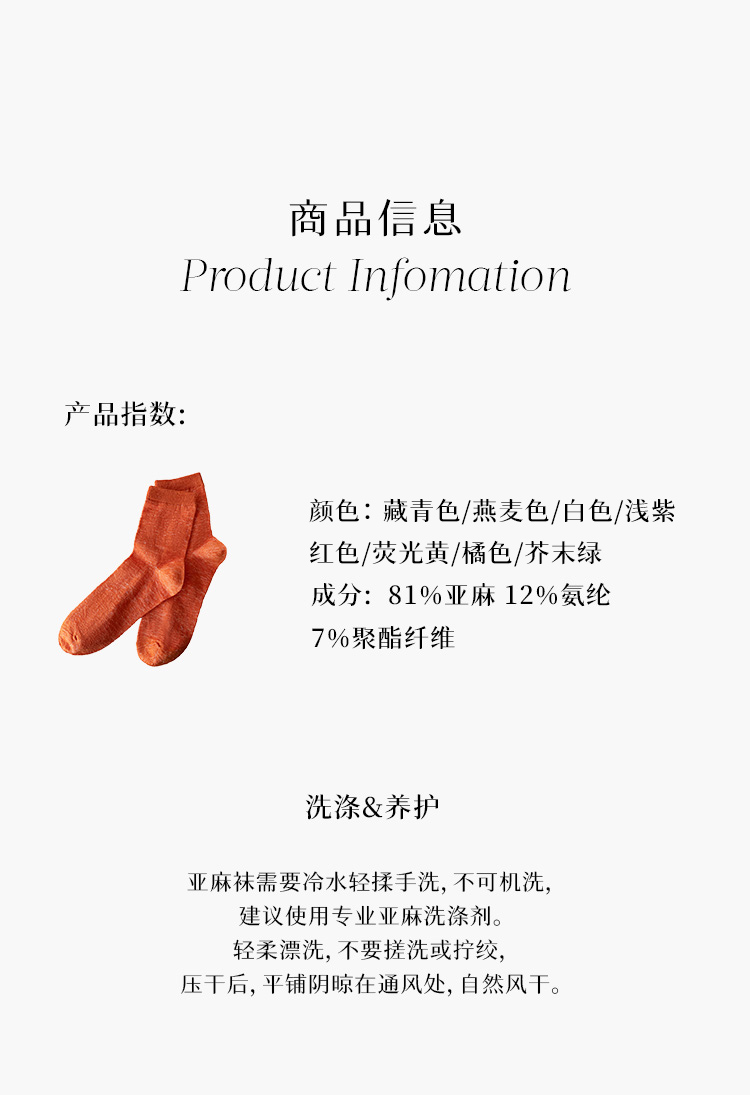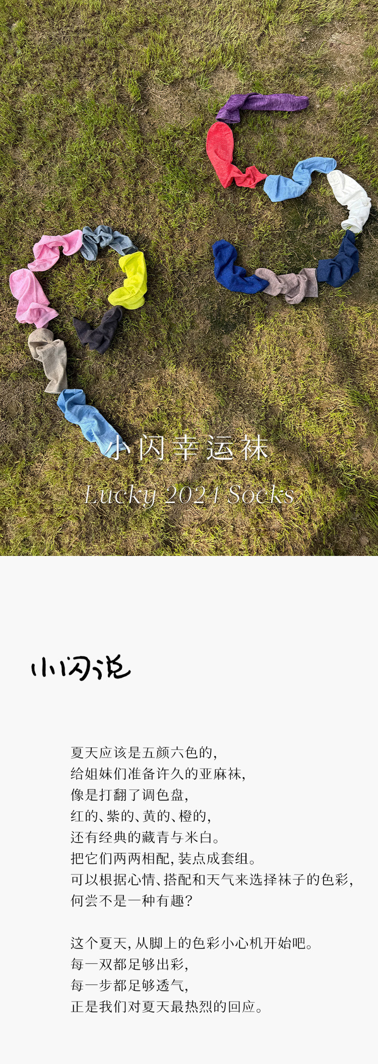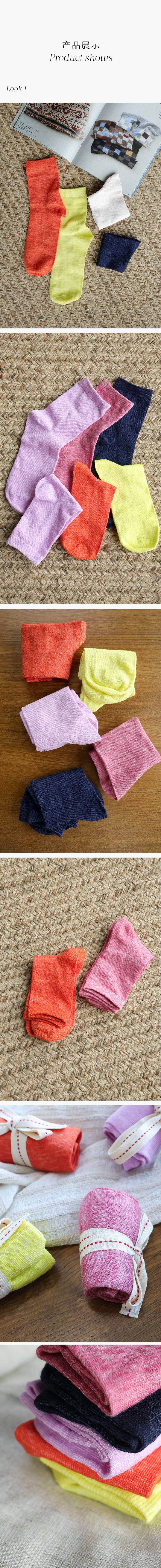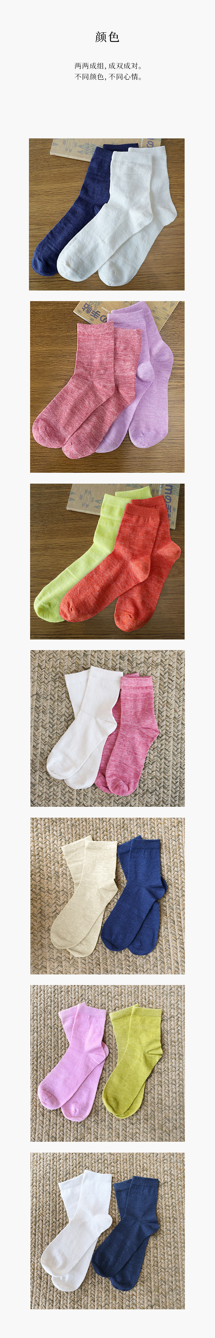 699积分兑换 PETIT SCHAN小闪 Lucky 2024 Socks 小闪幸运袜 亚麻混纺薄款糖果色中筒袜两双装