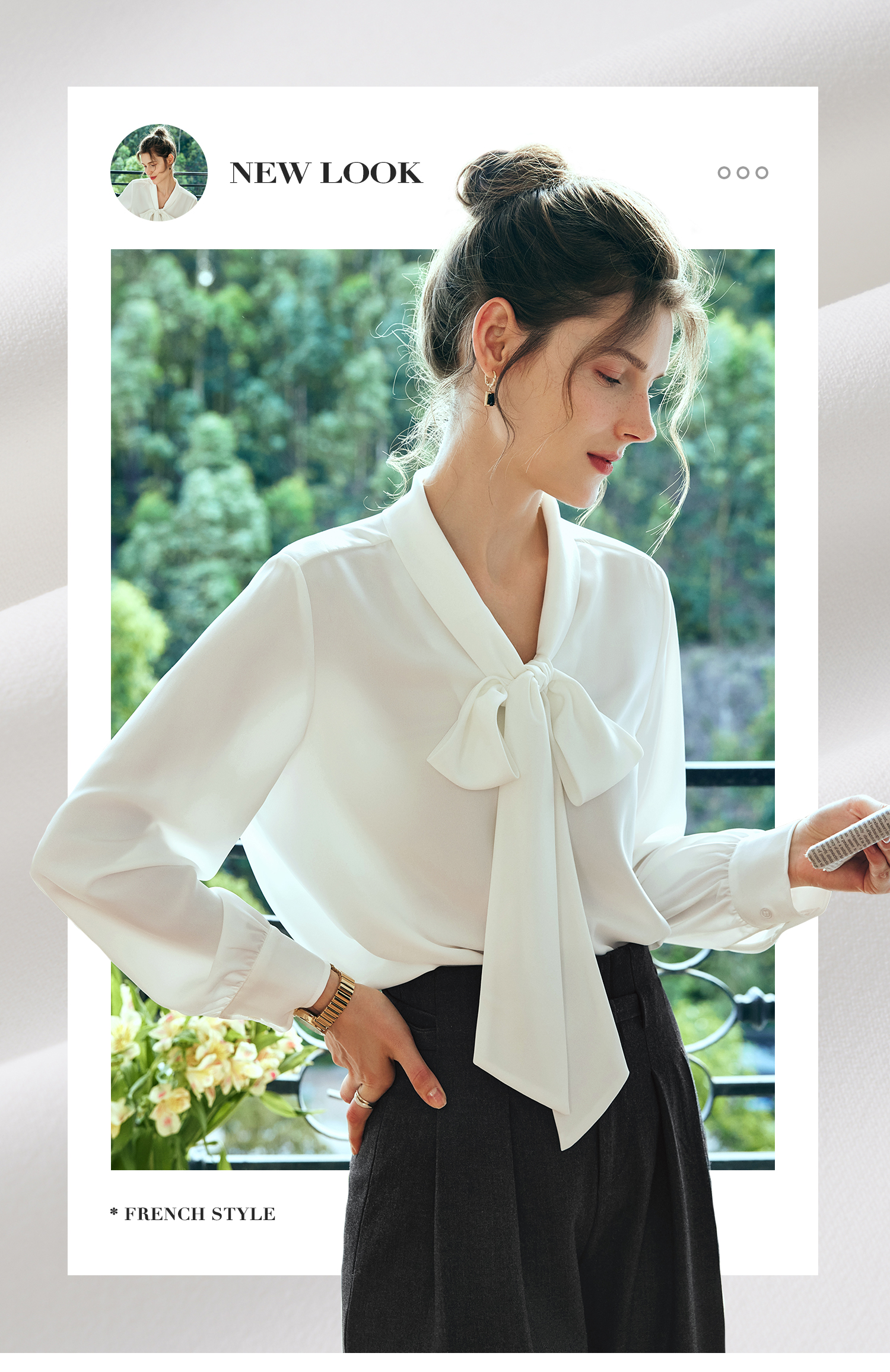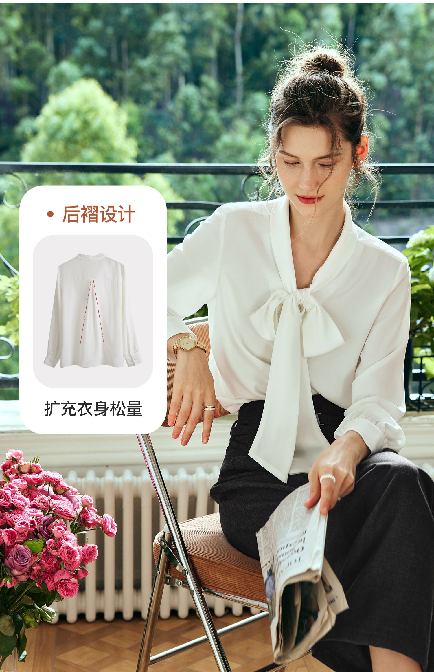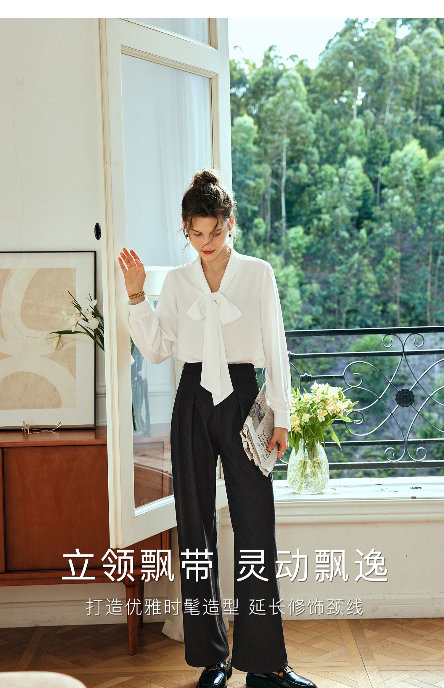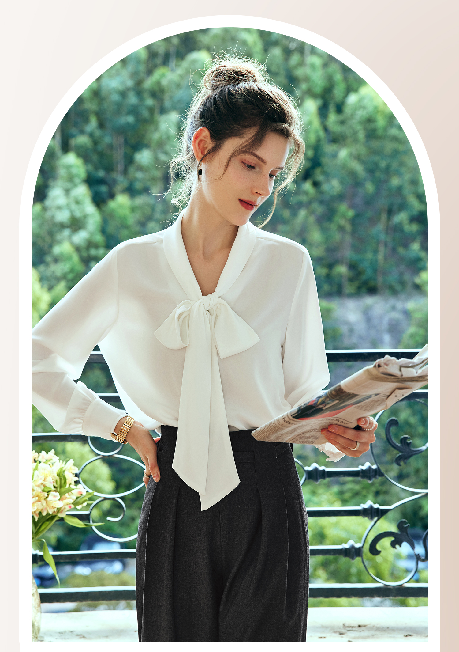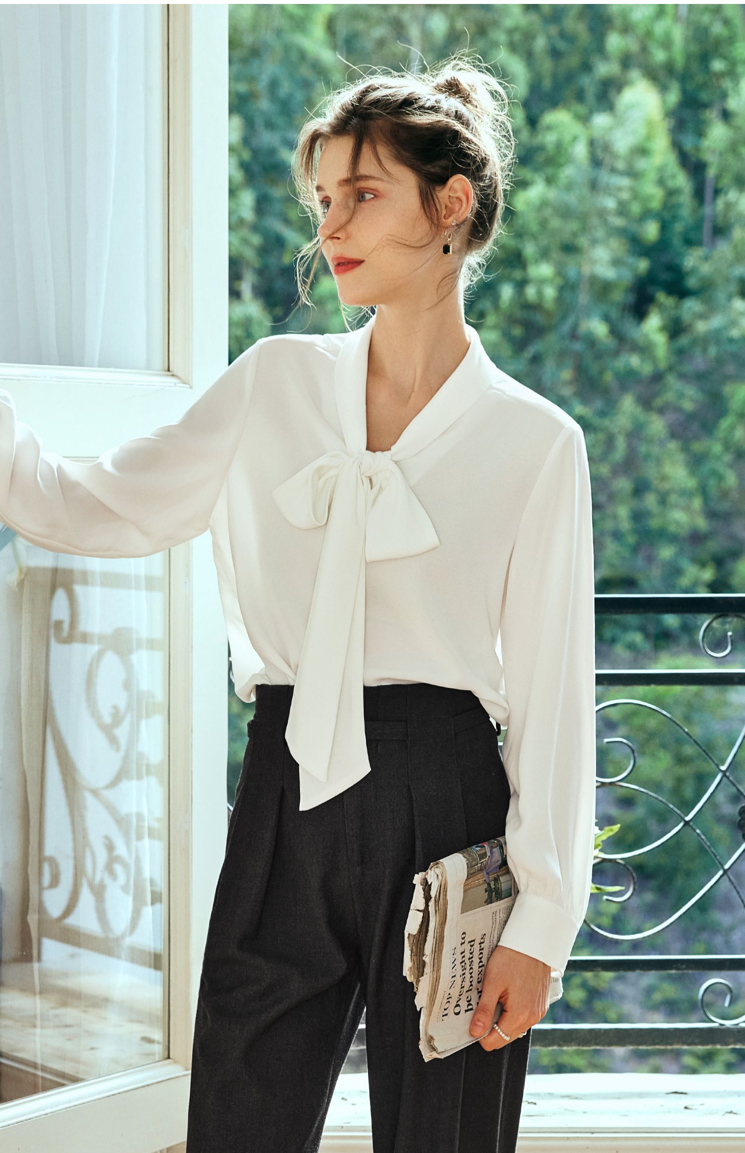 欧芮儿法式飘带雪纺衫女白色秋季2024新款系带蝴蝶结通勤衬衫上衣