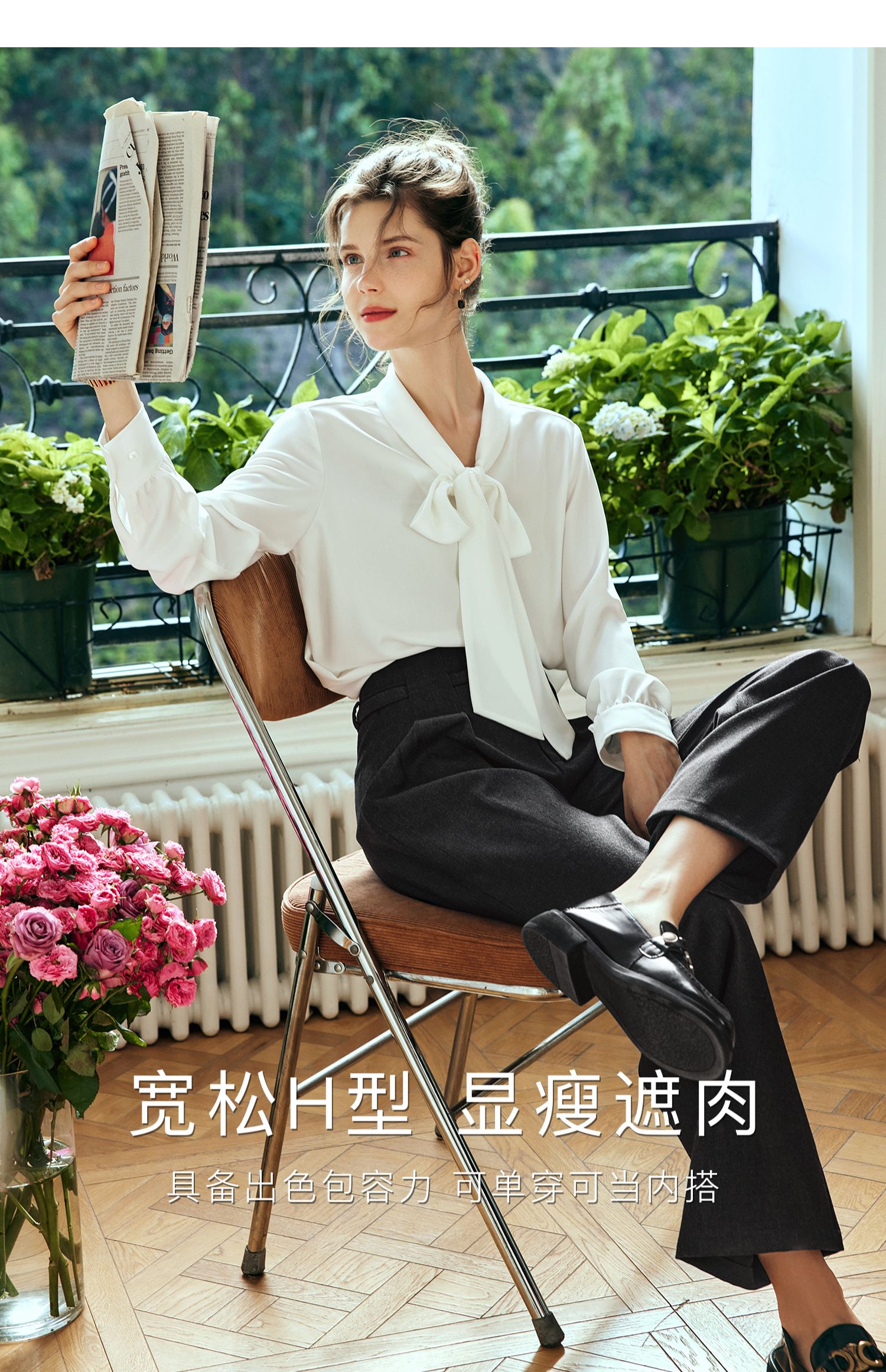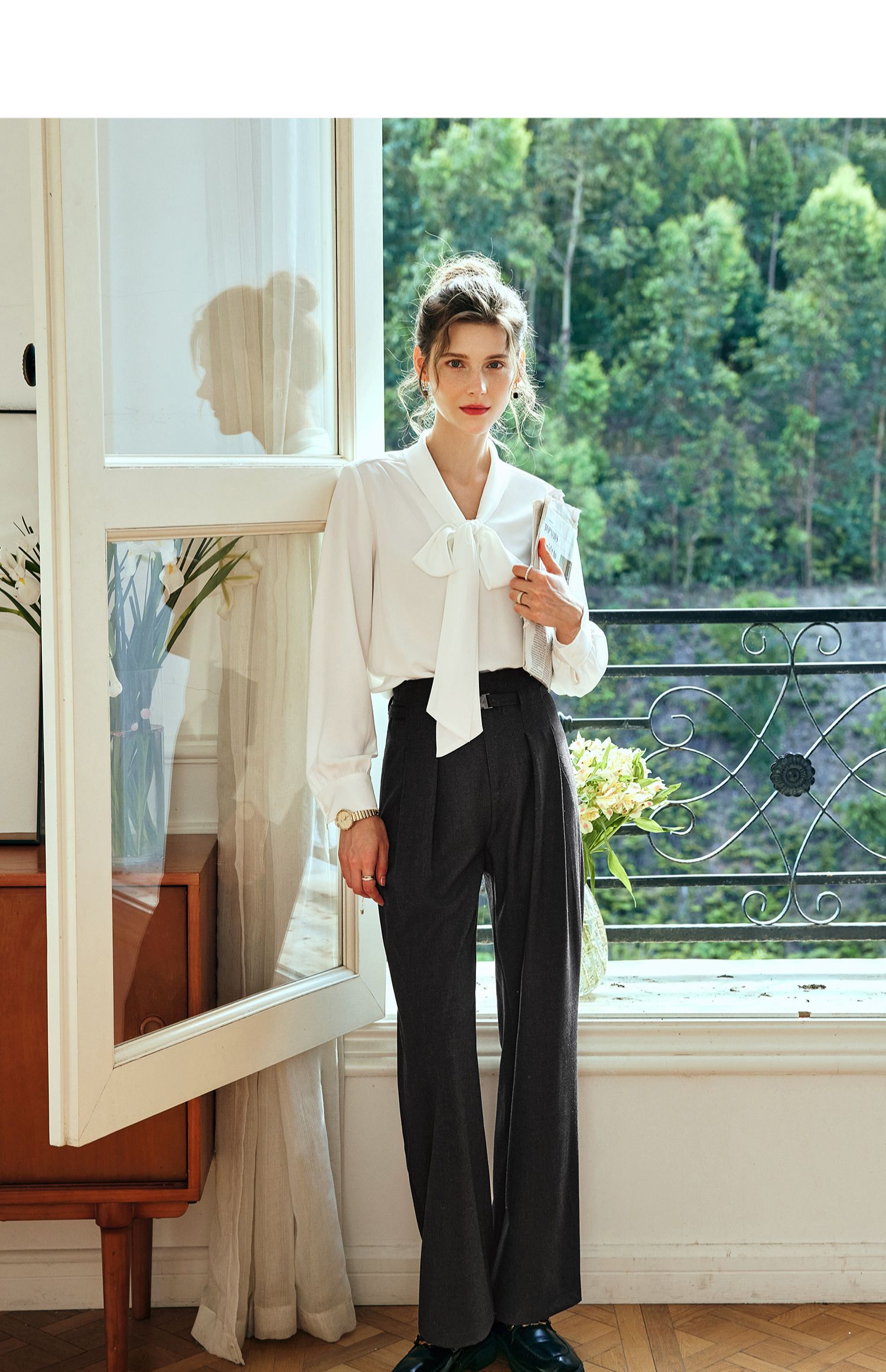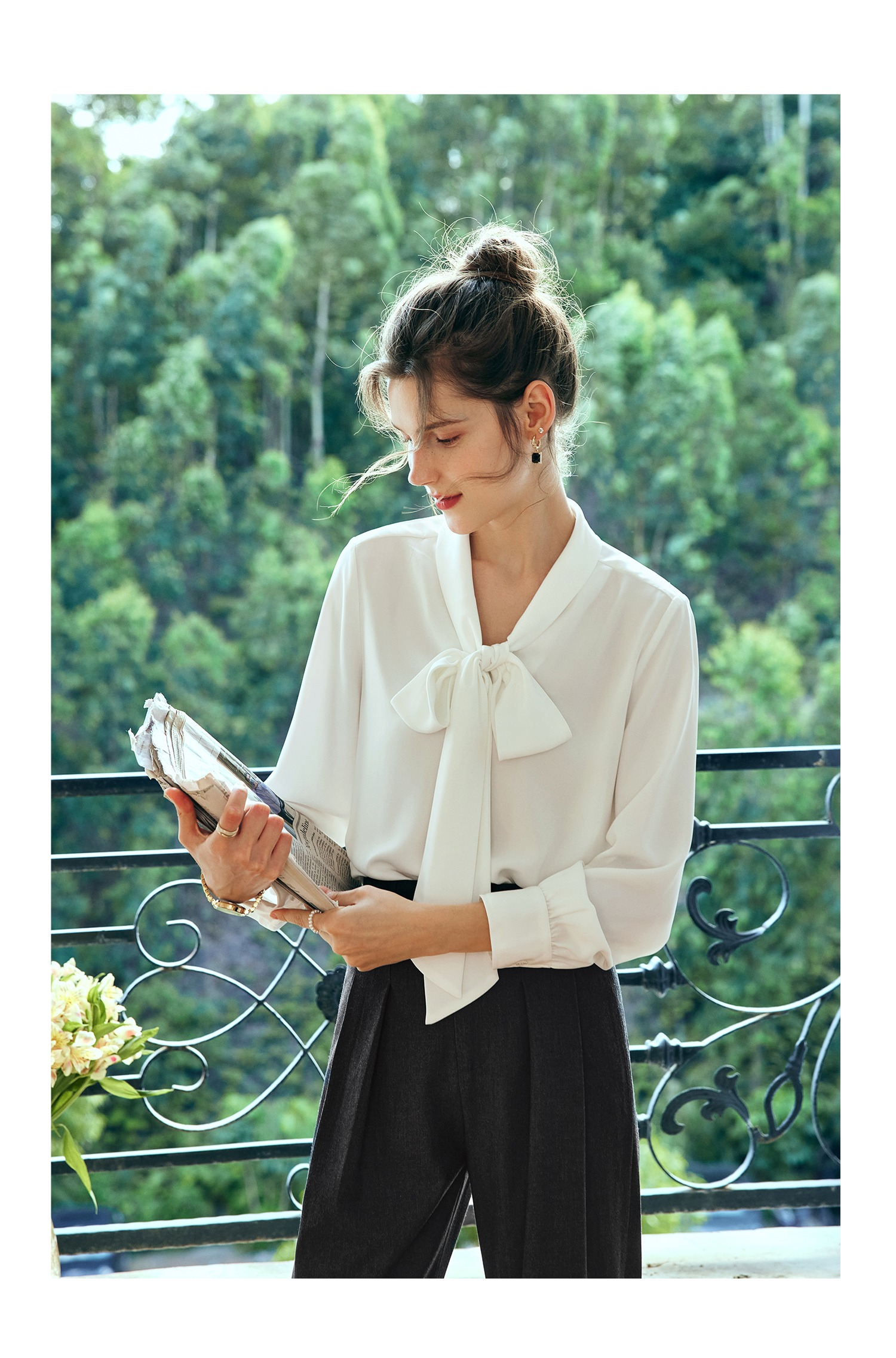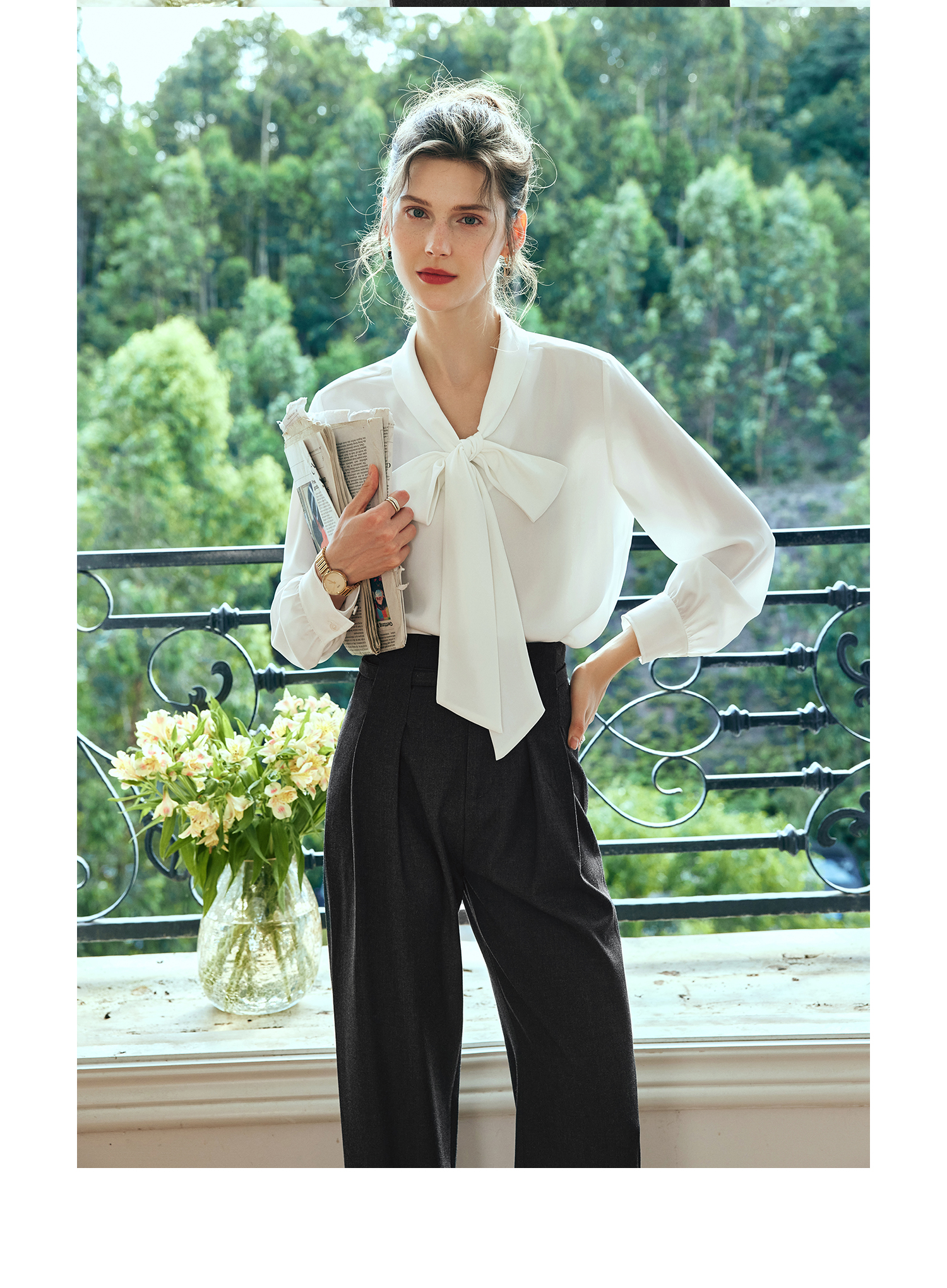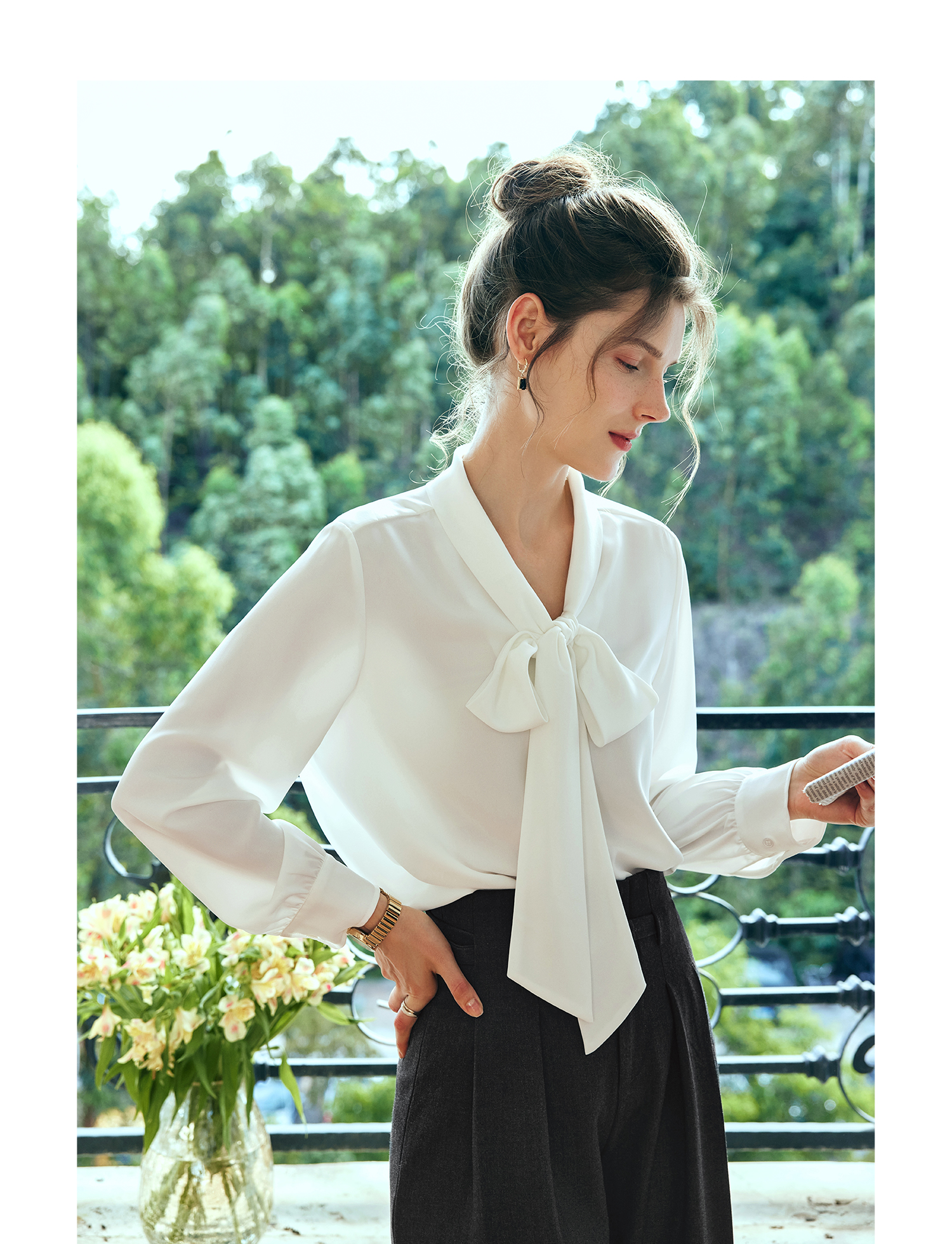 欧芮儿法式飘带雪纺衫女白色秋季2024新款系带蝴蝶结通勤衬衫上衣