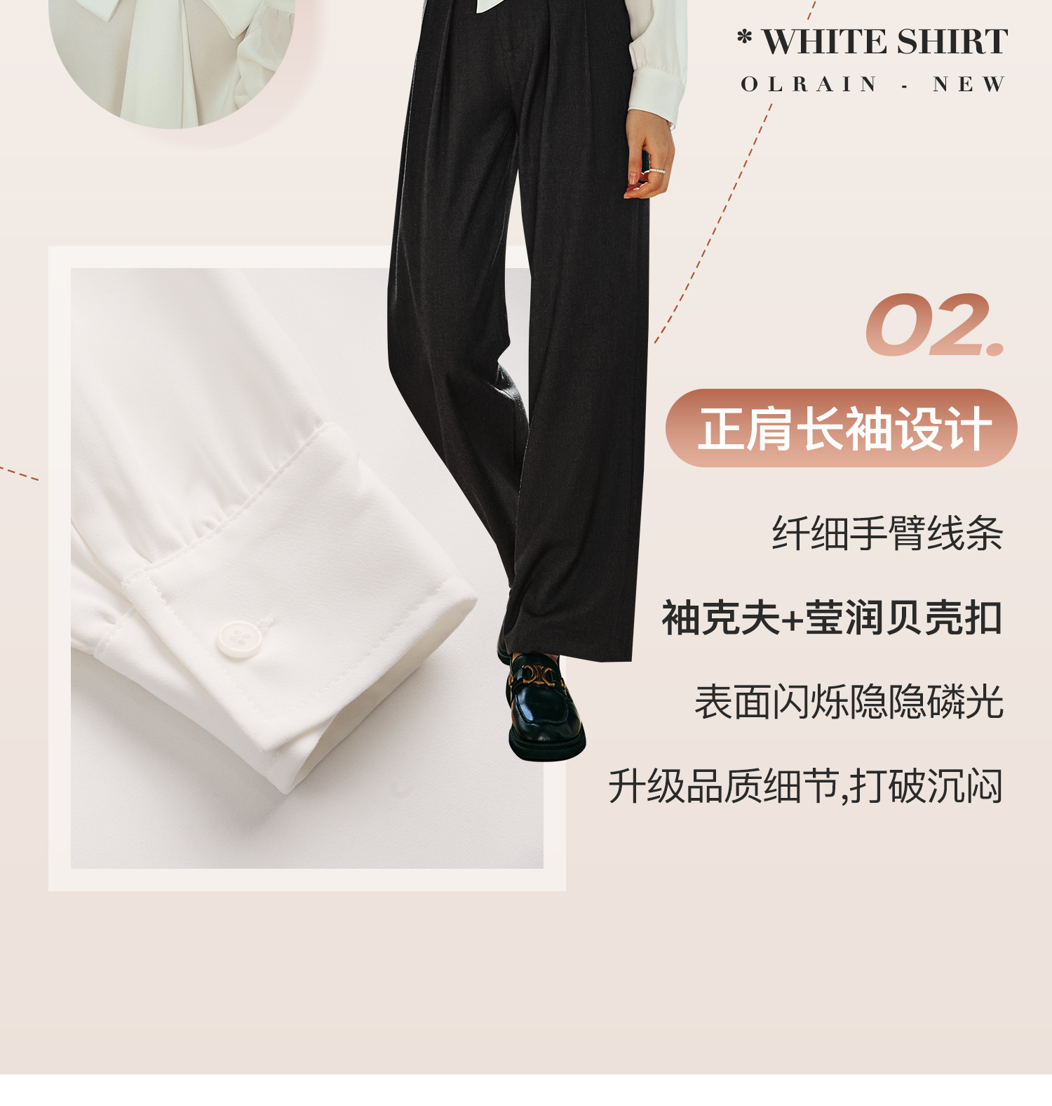 - “精致”是欧芮儿olrain品牌文化的核心,欧芮儿认为,精致的女人,不但要外在动人,更要内在迷人,内外兼修,有魅力、有气质、有内涵,自信而不自傲,优雅而不矫揉,自有万种风情而不轻浮,更不故作矜持。