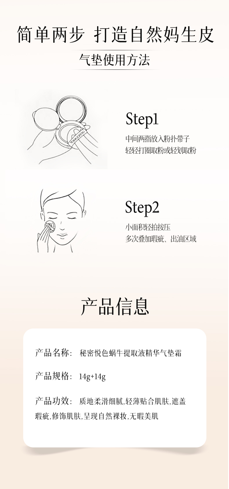 新品上市🎊蜗牛提取液精华气垫霜 14g+14g