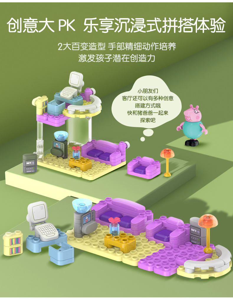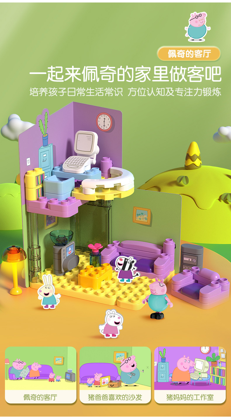 【新款】布鲁可x小猪佩奇的家 儿童益智拼装玩具大颗粒拼插积木 适合3+