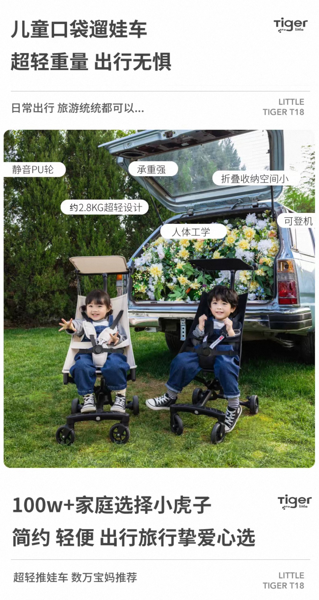 小虎子新款铝合金轻便折叠婴儿手推车简易可登机口袋遛娃推车T18