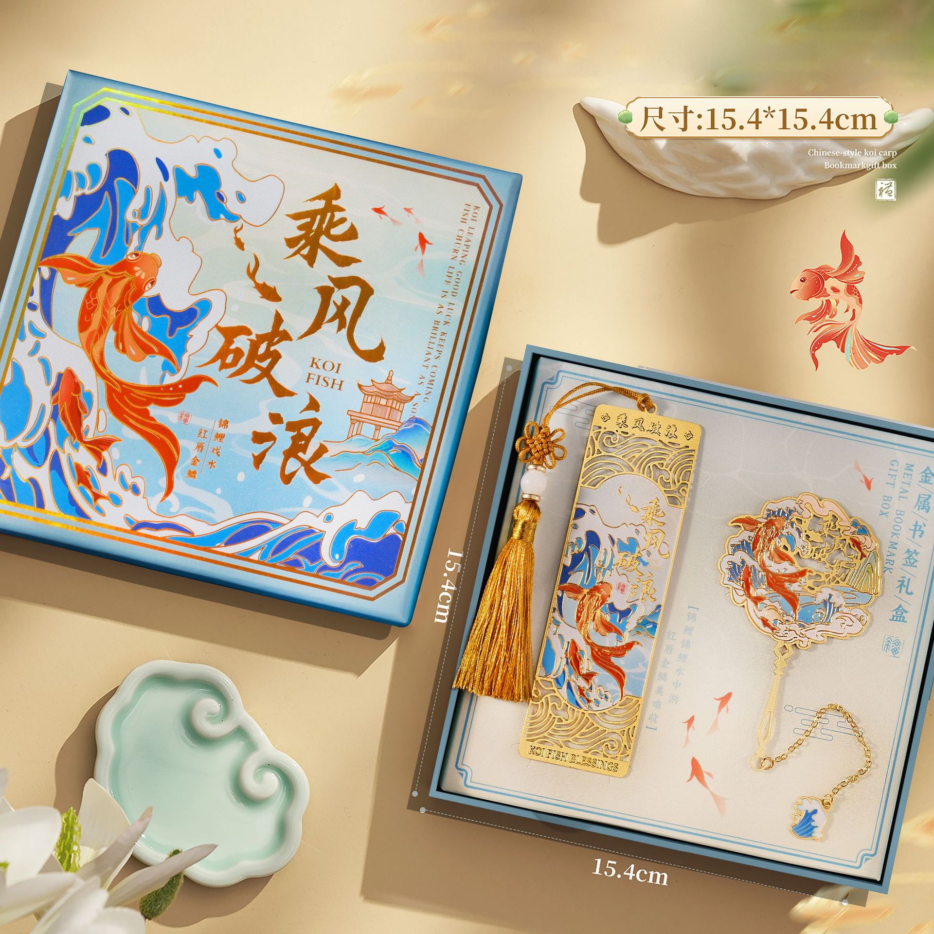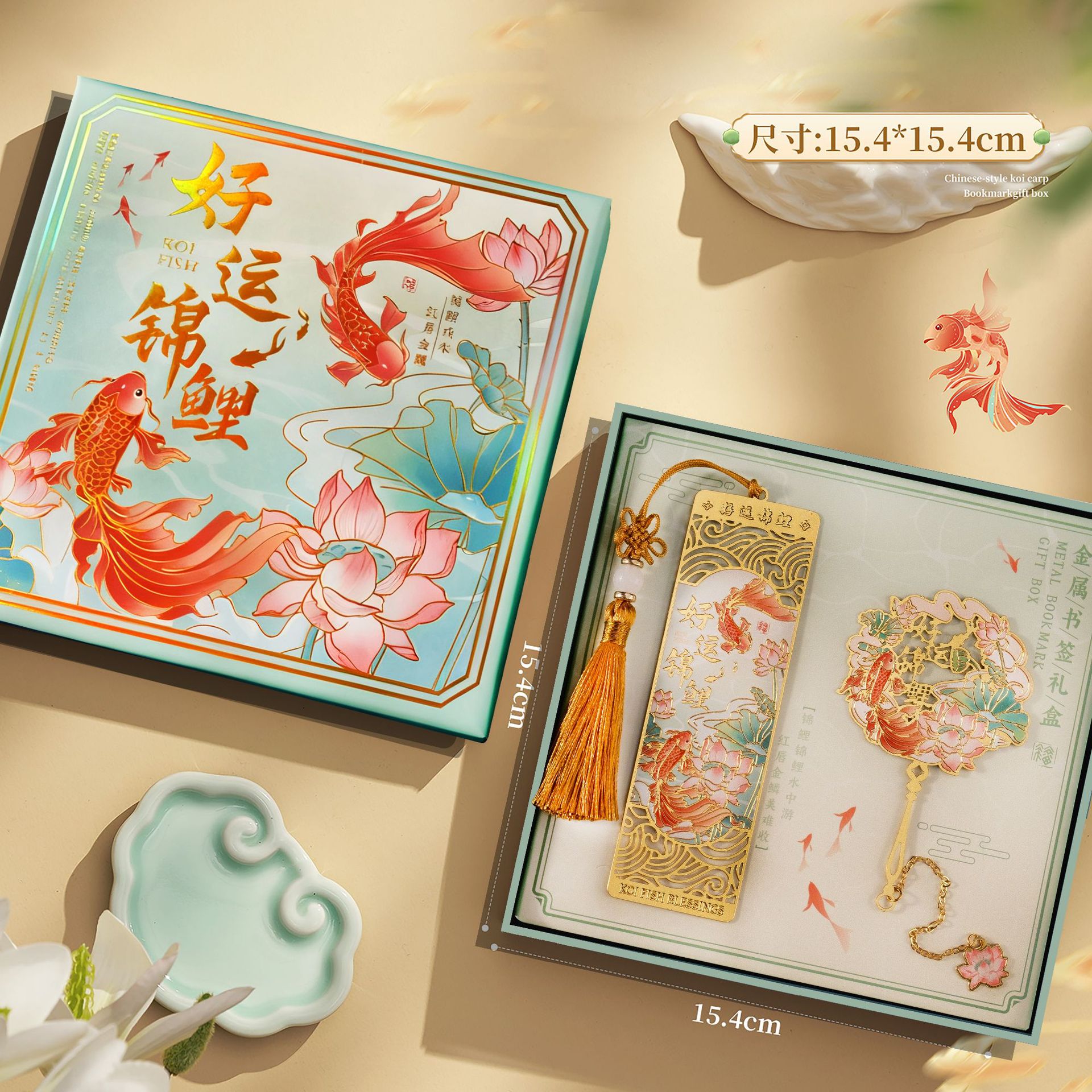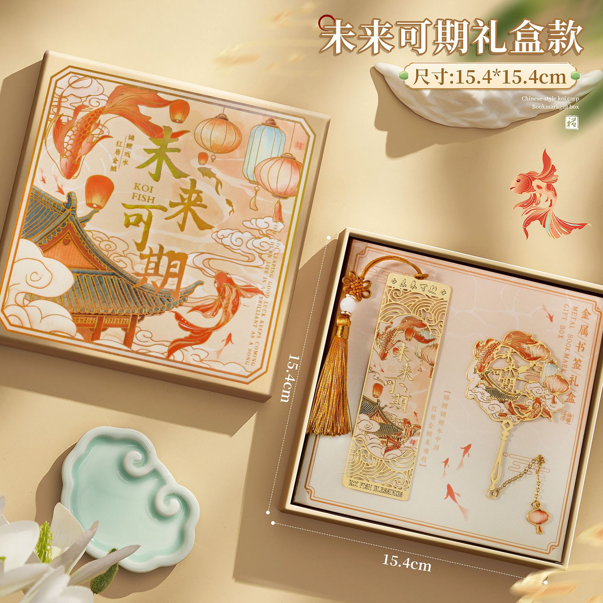 「礼盒装!数款可选」锦鲤书签礼盒高档毕业礼物伴手礼奖励小学生中国风金属书签套装礼