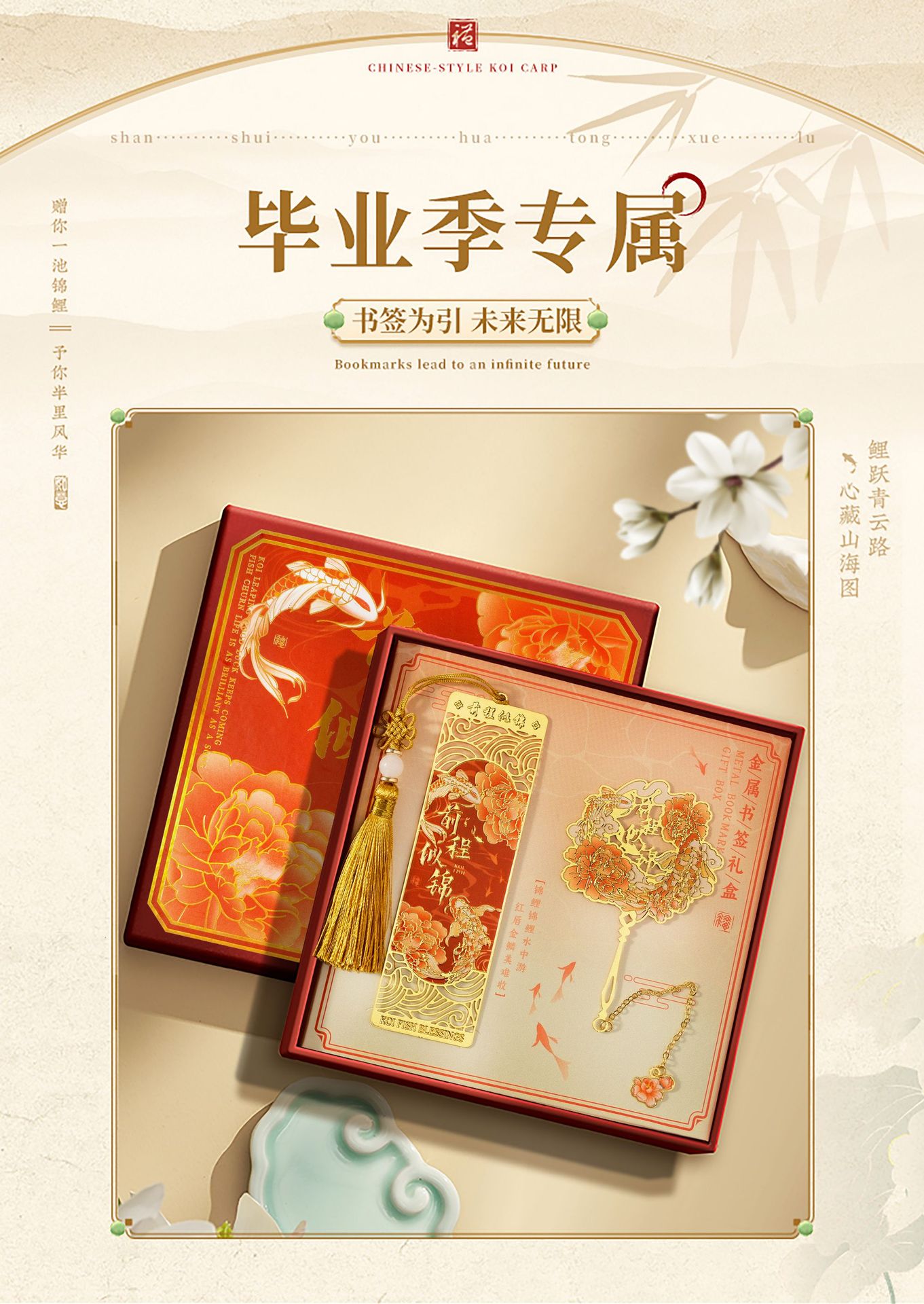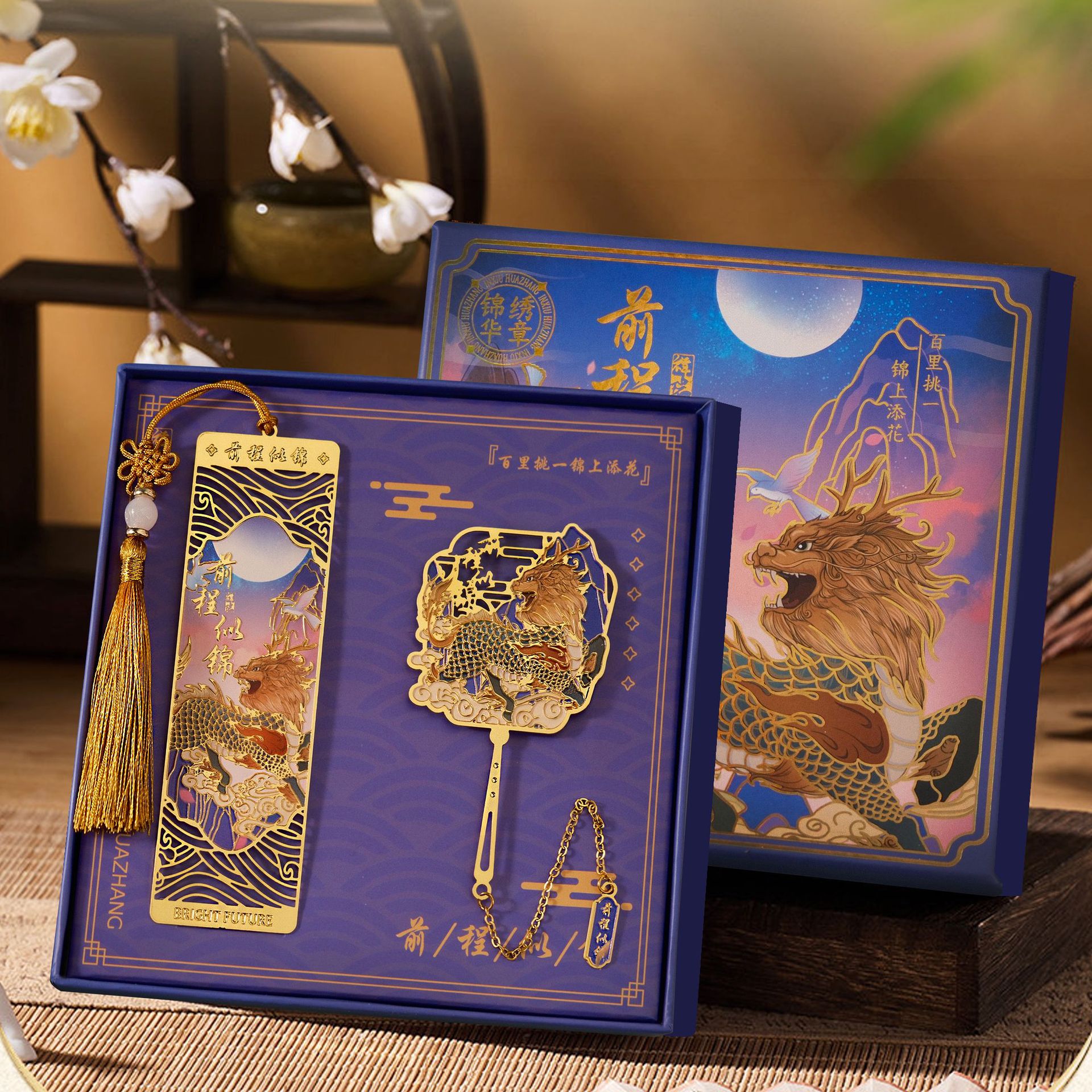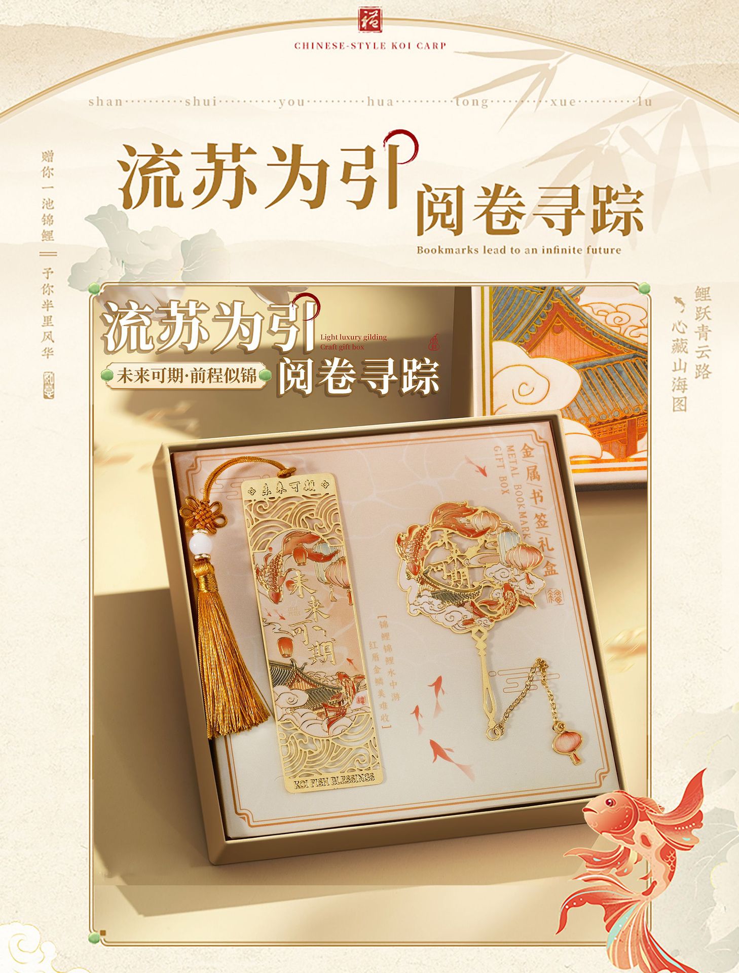 「礼盒装!数款可选」锦鲤书签礼盒高档毕业礼物伴手礼奖励小学生中国风金属书签套装礼