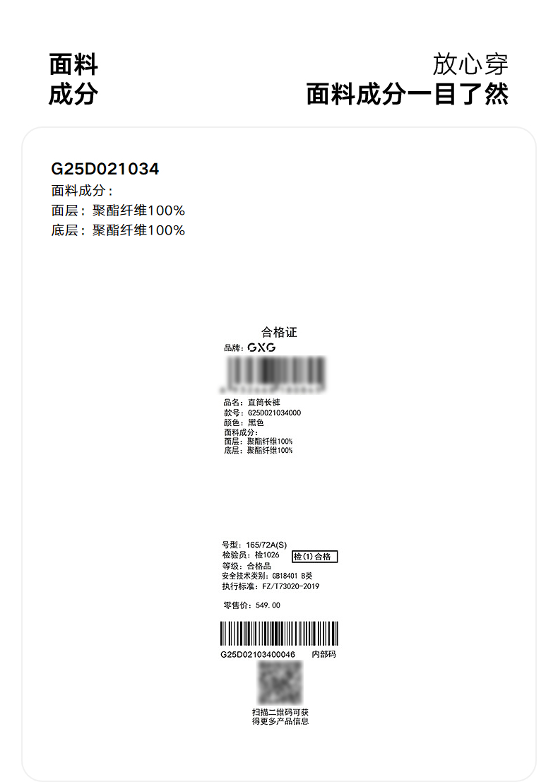 GXG男装 2025年春季热卖春季GXG男装休闲长裤商务直筒通勤长裤#G25D021034