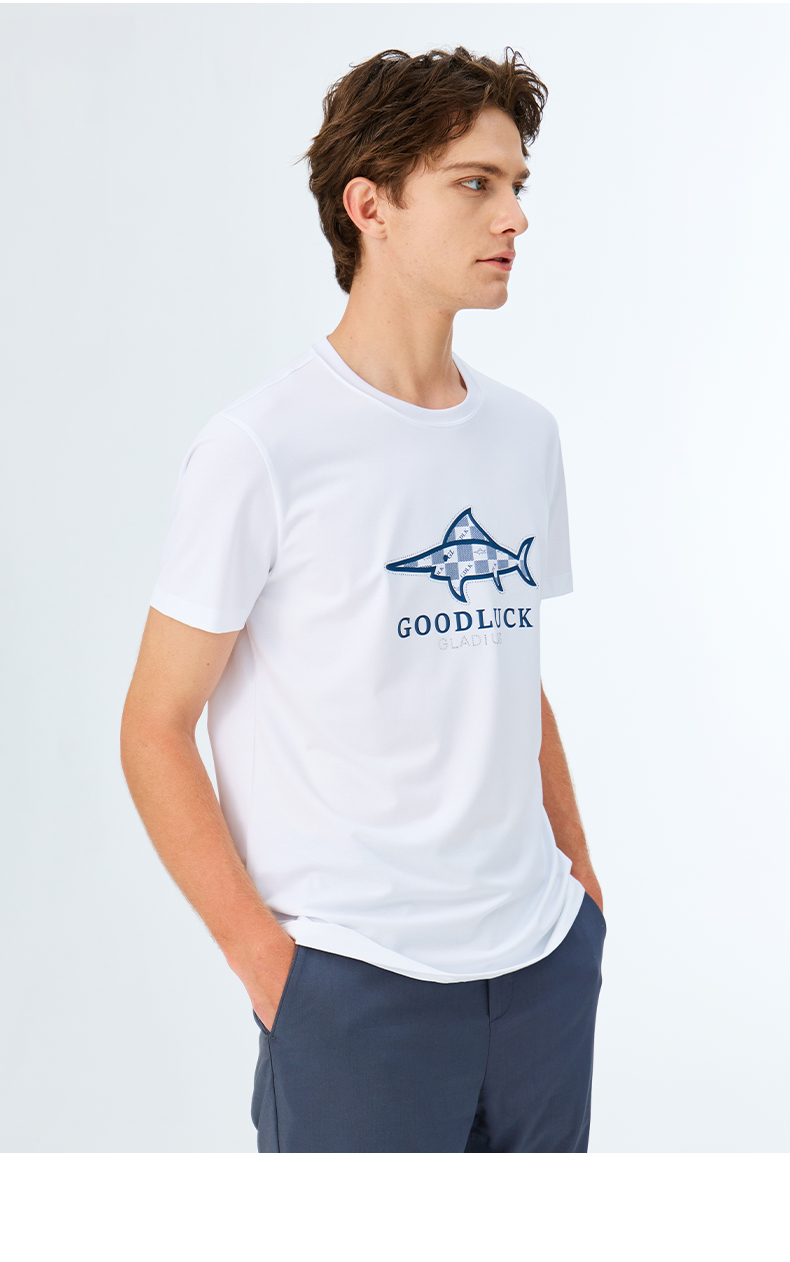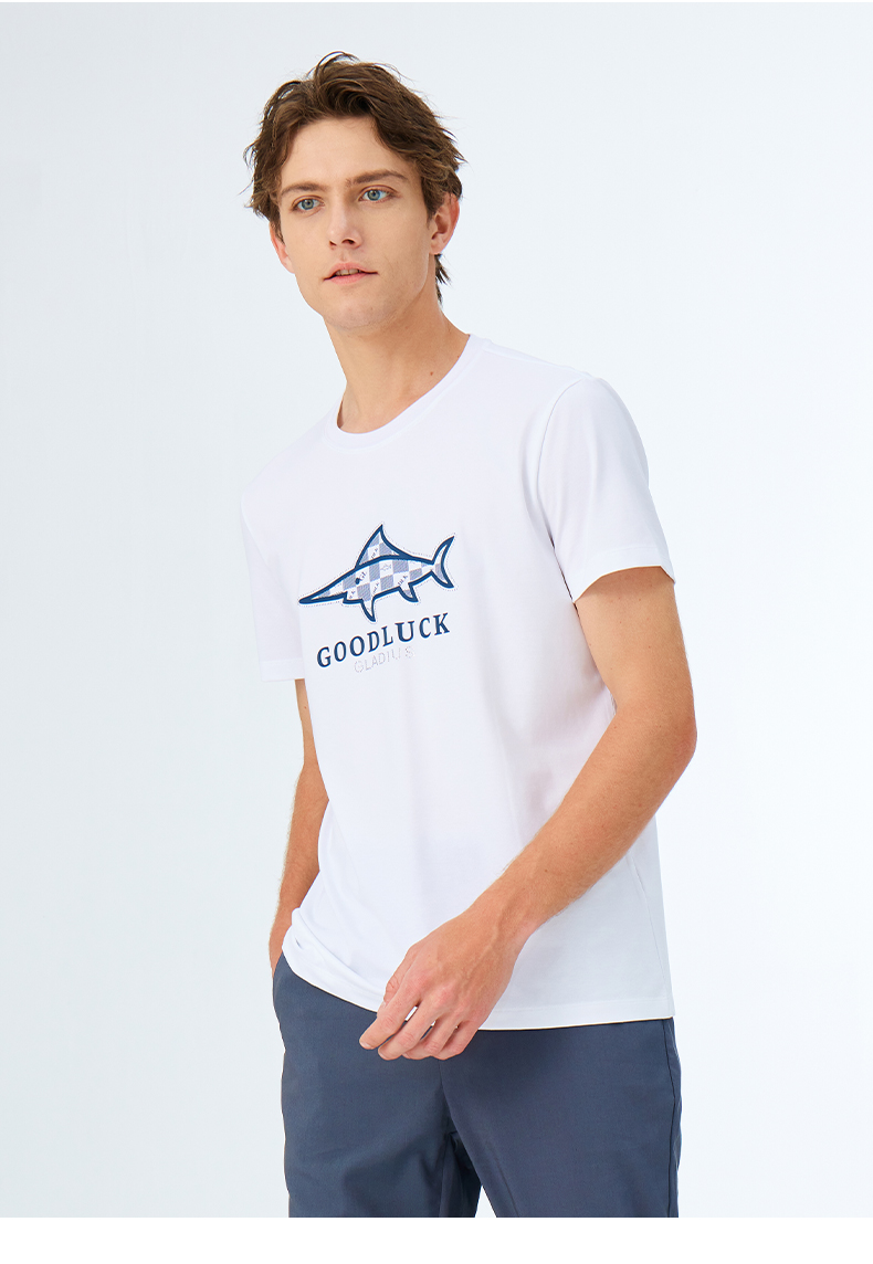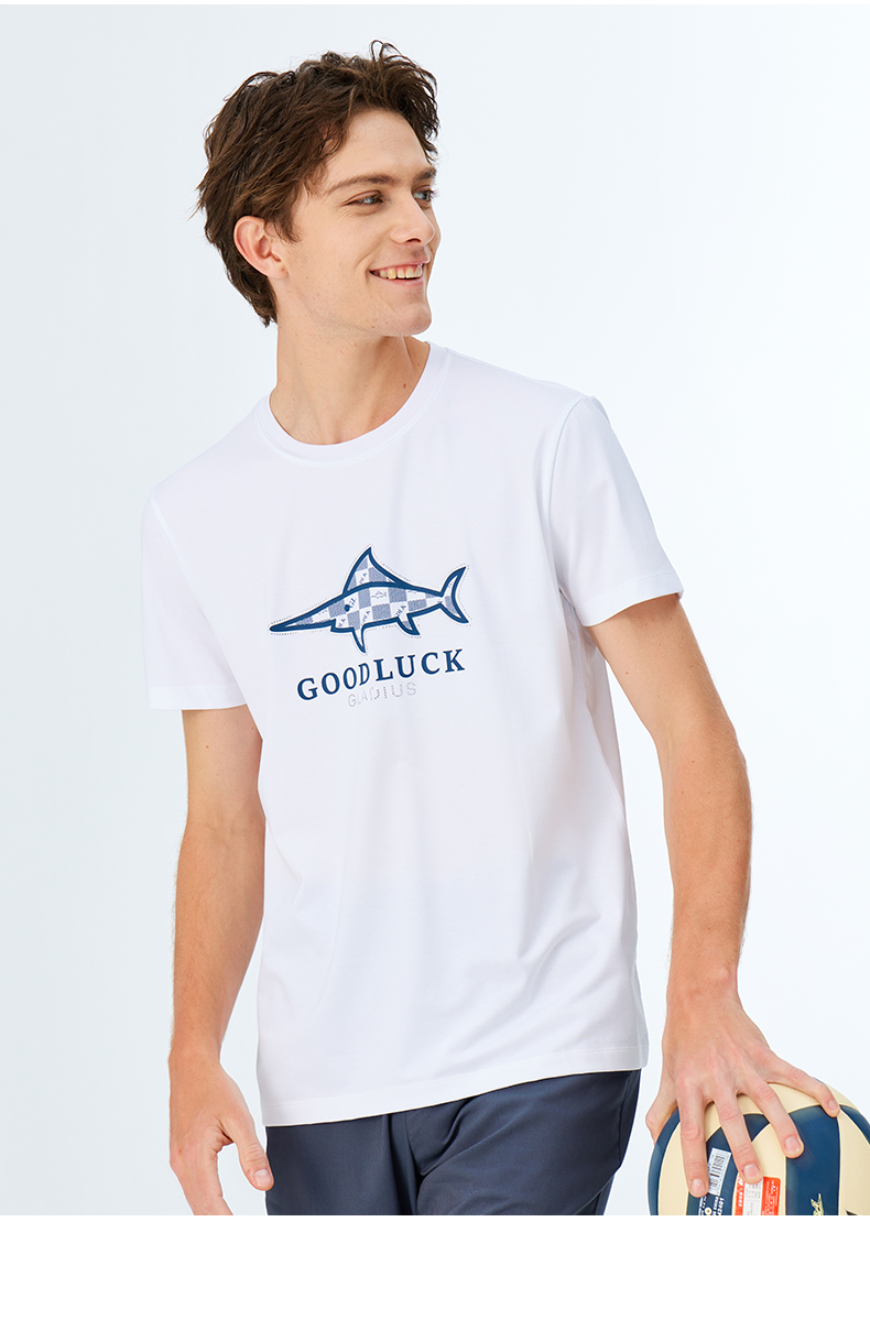 【莫代尔】德鲨2026夏季新品圆领打底衫男烫钻印花短袖T恤